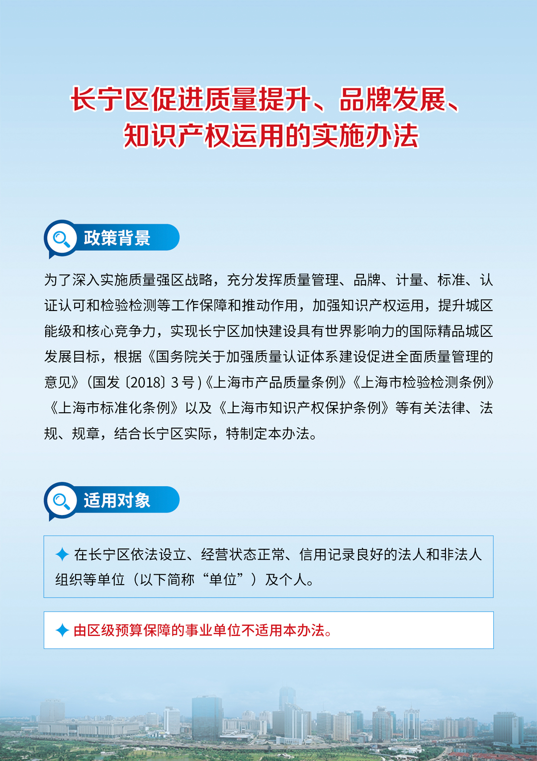 政策圖解:《長寧區(qū)促進質(zhì)量提升、品牌發(fā)展、知識產(chǎn)權(quán)運用的實施辦法》