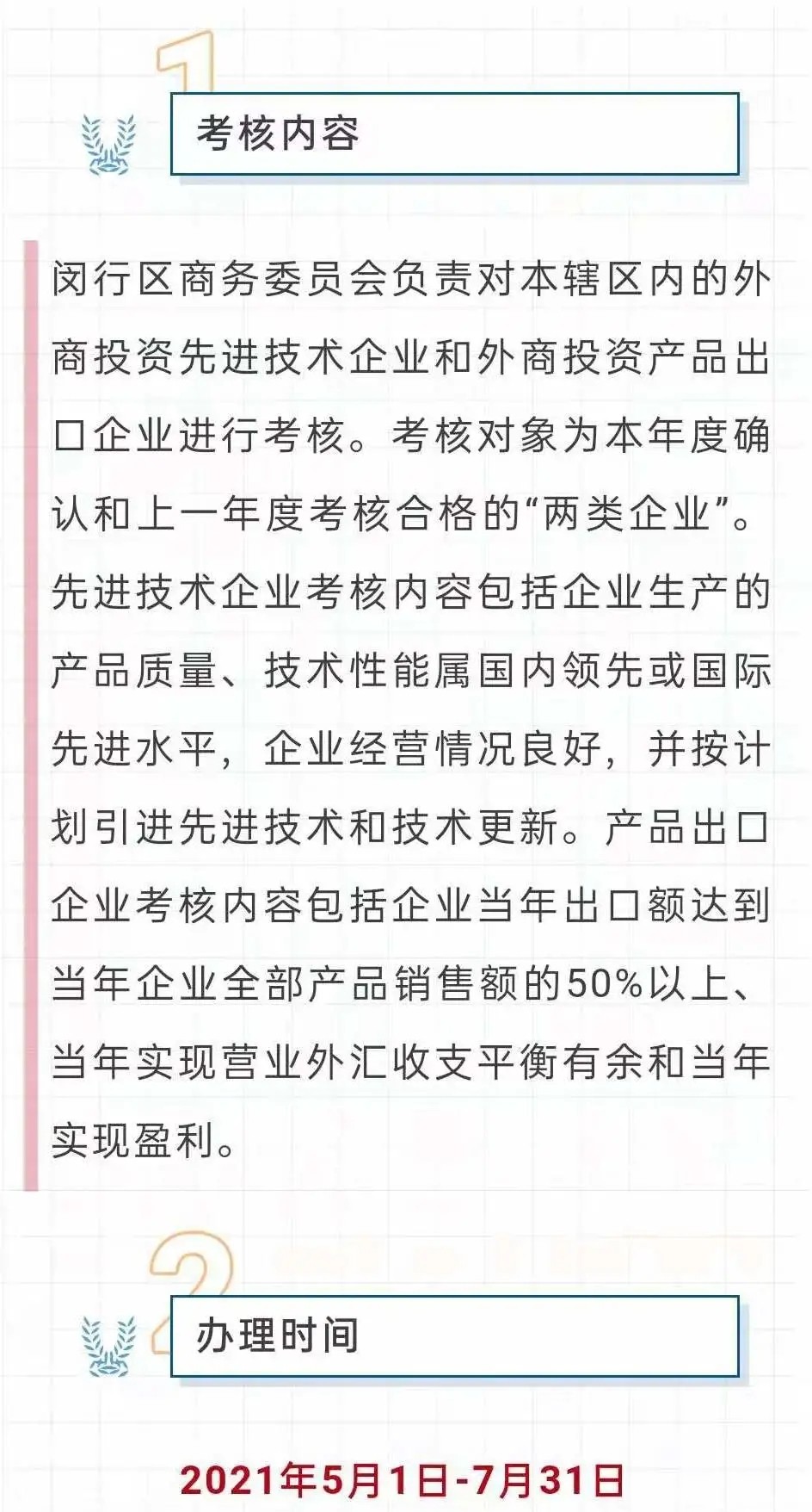 關(guān)于開展2021年閔行區(qū)外商投資先進技術(shù)企業(yè)和產(chǎn)品出口企業(yè)考核的通知