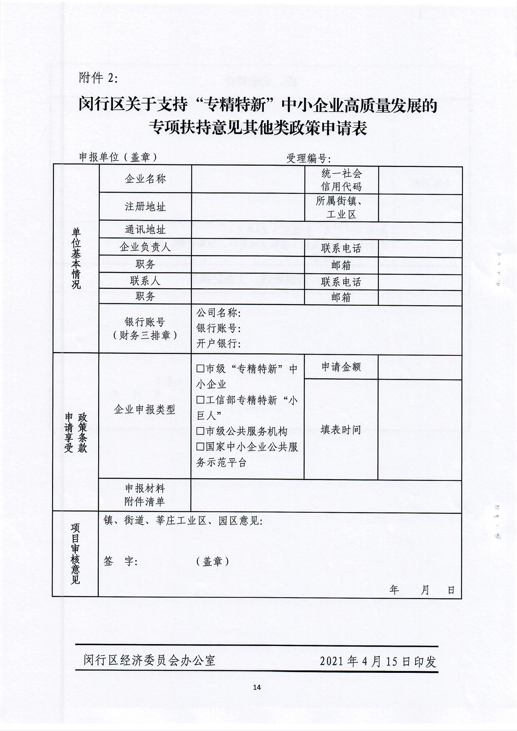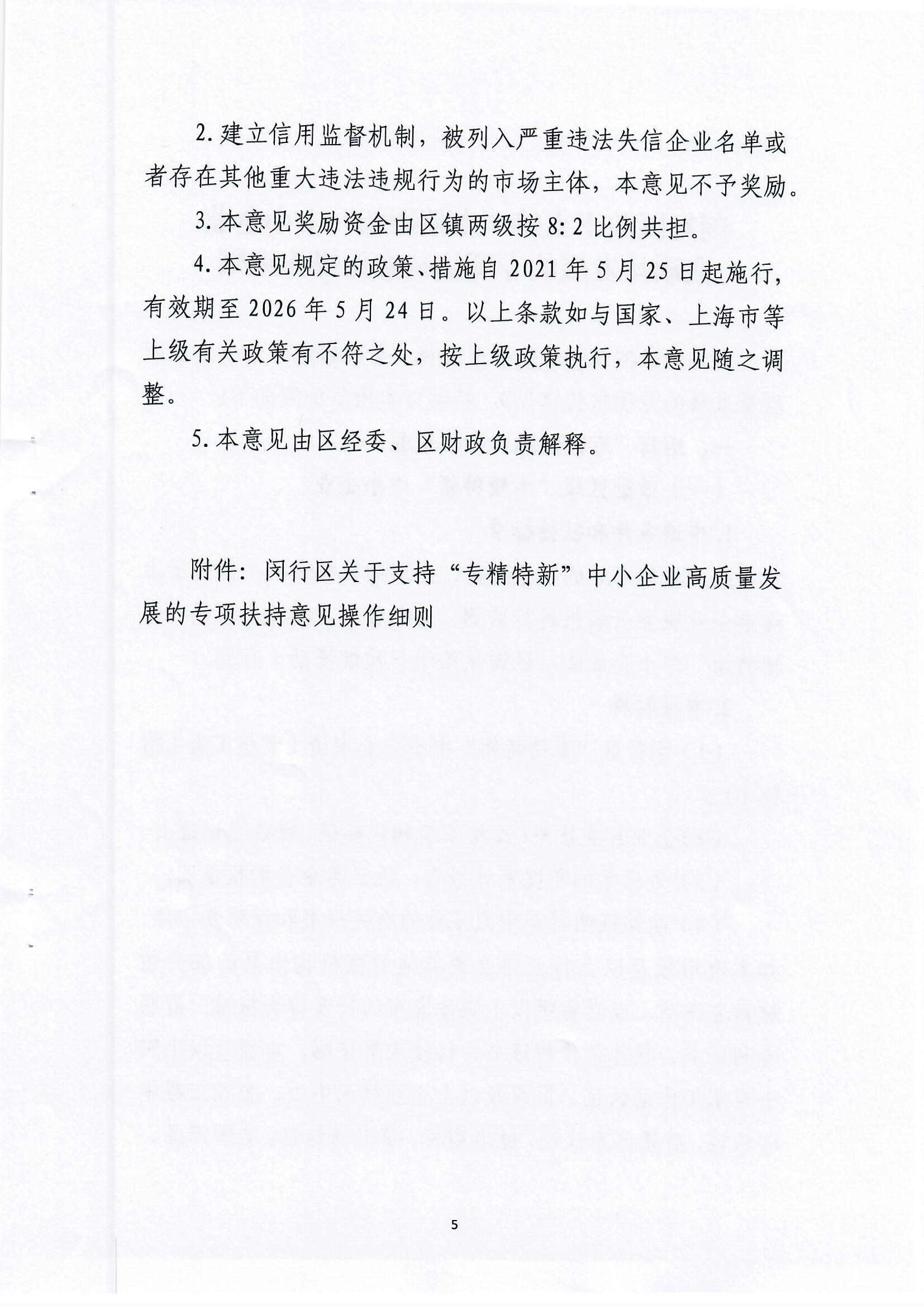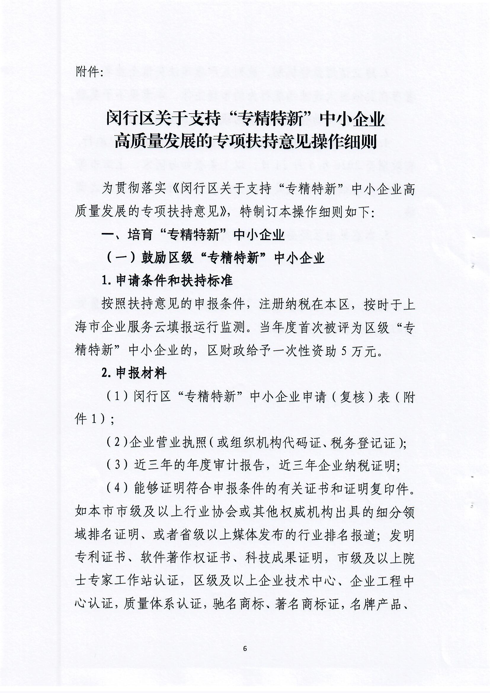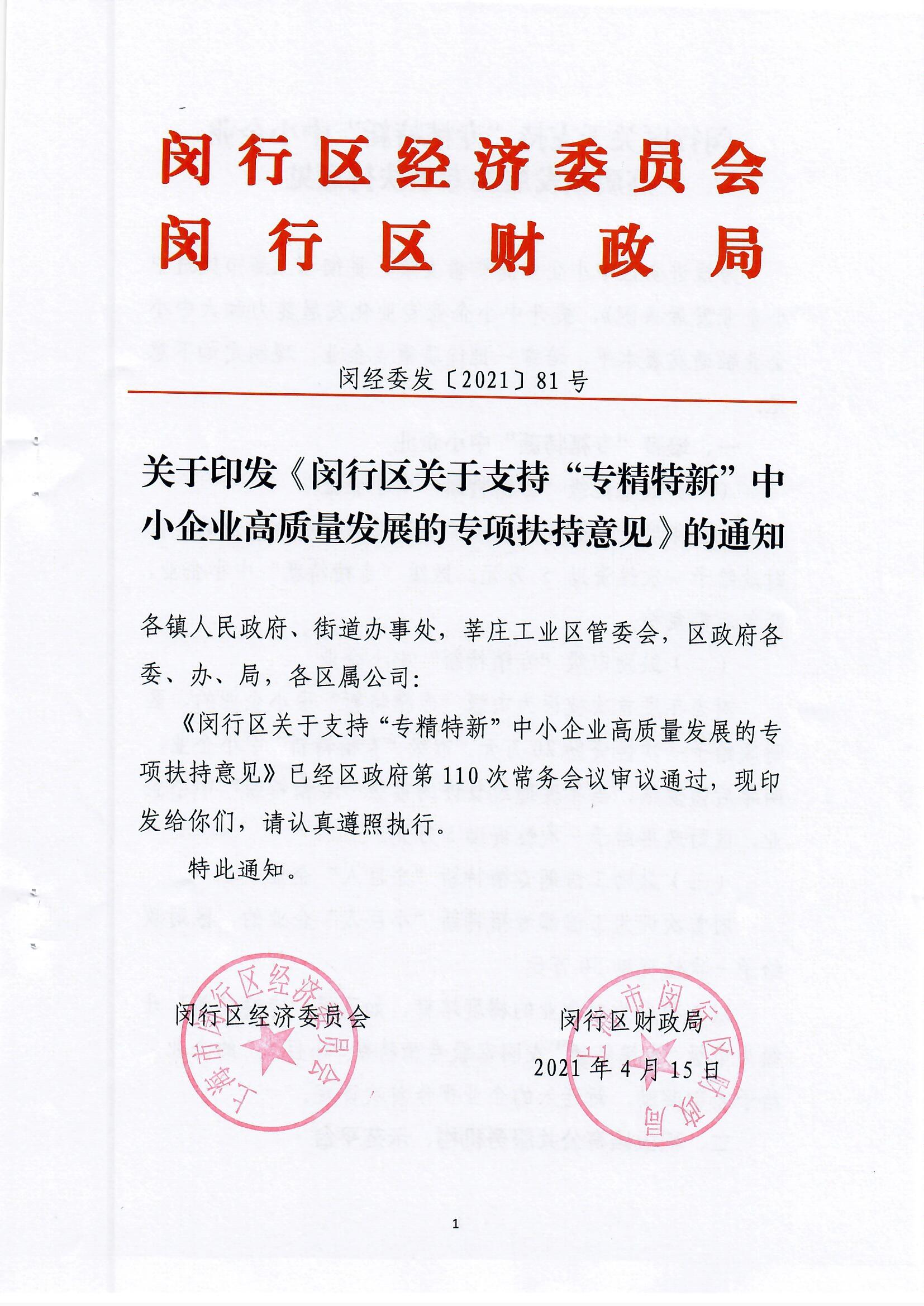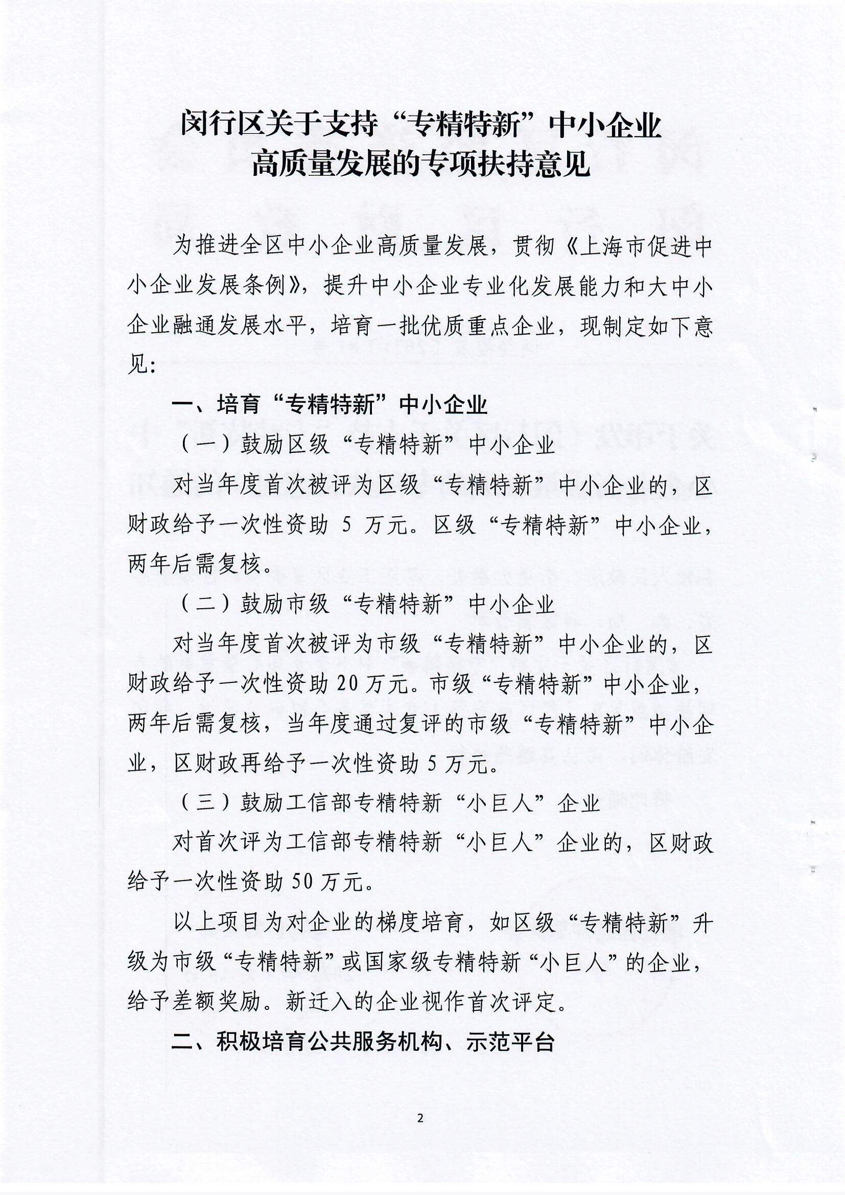 閔行區(qū)關(guān)于支持“專精特新”中小企業(yè)高質(zhì)量發(fā)展的專項扶持意見