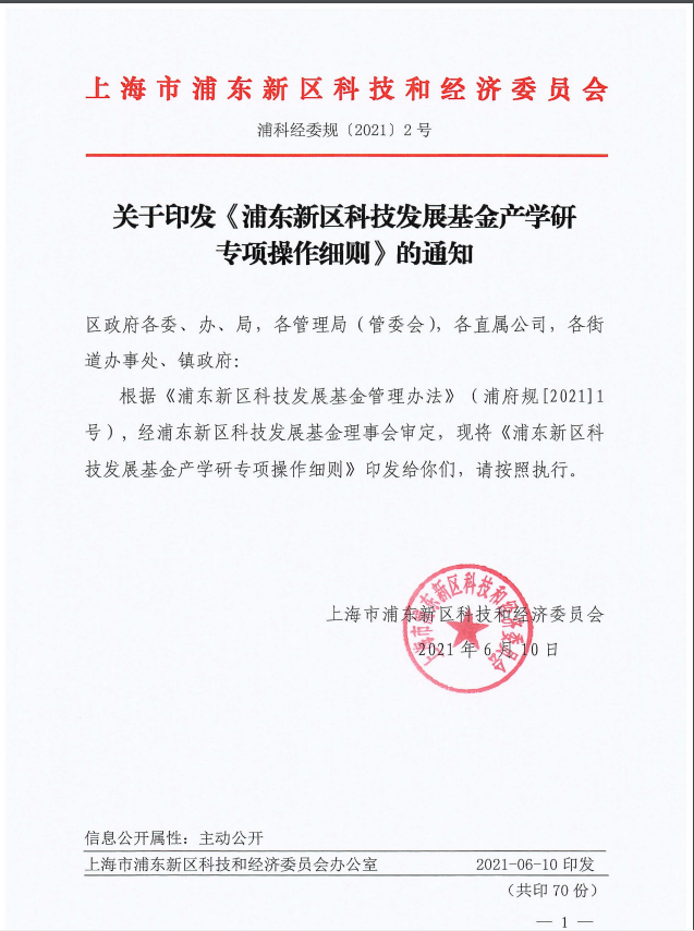 浦東新區(qū)科技發(fā)展基金產(chǎn)學(xué)研專項操作細則(印發(fā))