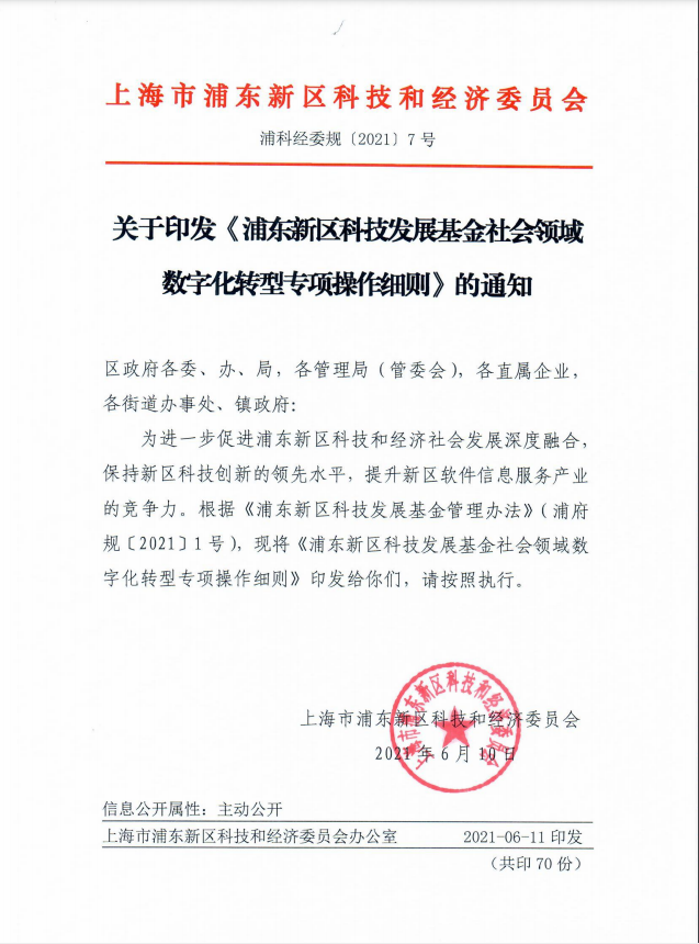 浦東新區(qū)科技發(fā)展基金社會領(lǐng)域數(shù)字化轉(zhuǎn)型專項操作細則