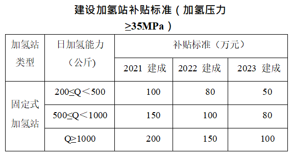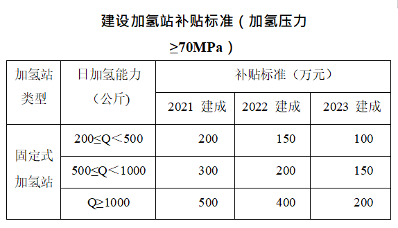 結(jié)合實(shí)際發(fā)展專(zhuān)項(xiàng)規(guī)劃,優(yōu)先在公交、物流、出租等領(lǐng)域建設(shè)與燃料電池汽車(chē)推廣階段性目標(biāo)相適應(yīng)的加氫設(shè)施,優(yōu)先支持區(qū)域內(nèi)加油站以油氫合建方式進(jìn)行改造。對(duì)在我區(qū)注冊(cè)、運(yùn)營(yíng)、稅收落戶(hù)我區(qū)的獨(dú)立法人企業(yè)建設(shè)加氫站按以下標(biāo)準(zhǔn)給予補(bǔ)貼,同時(shí)可享受?chē)?guó)家、市相關(guān)政策支持。建成時(shí)間以加氫站建設(shè)工程竣工驗(yàn)收時(shí)間為準(zhǔn)。