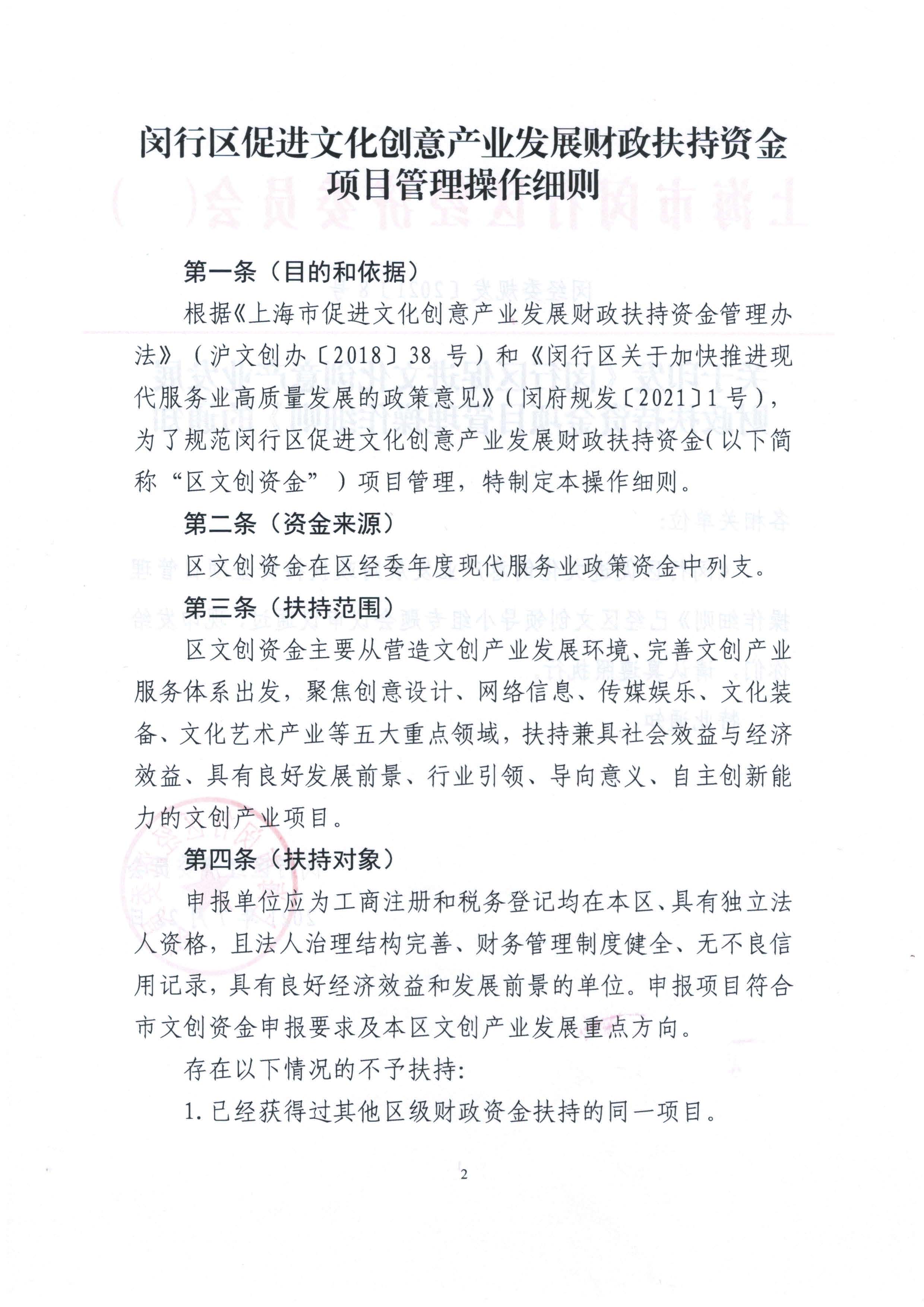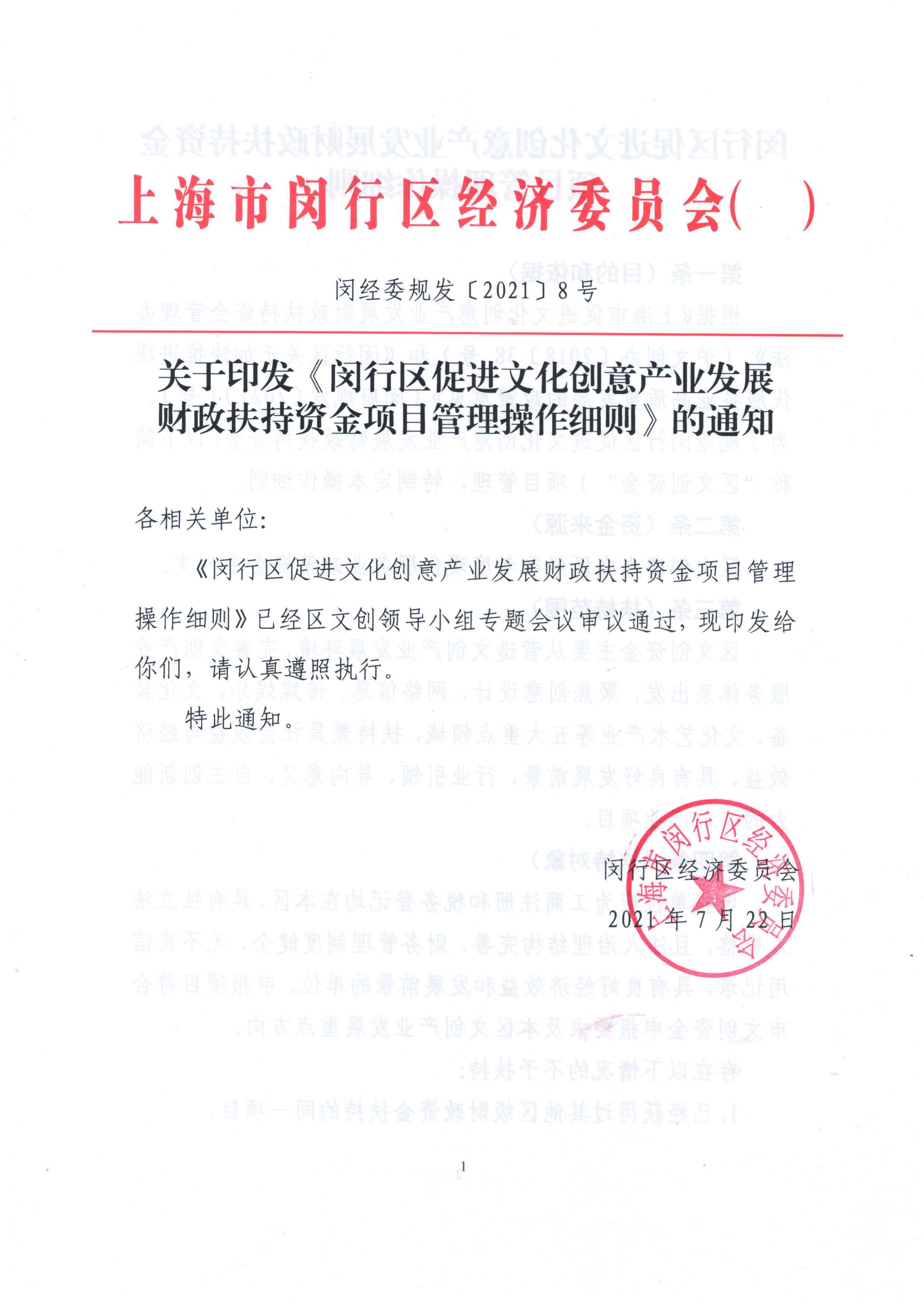 《閔行區(qū)促進文化創(chuàng)意產(chǎn)業(yè)發(fā)展財政扶持資金項目管理操作細則》的通知