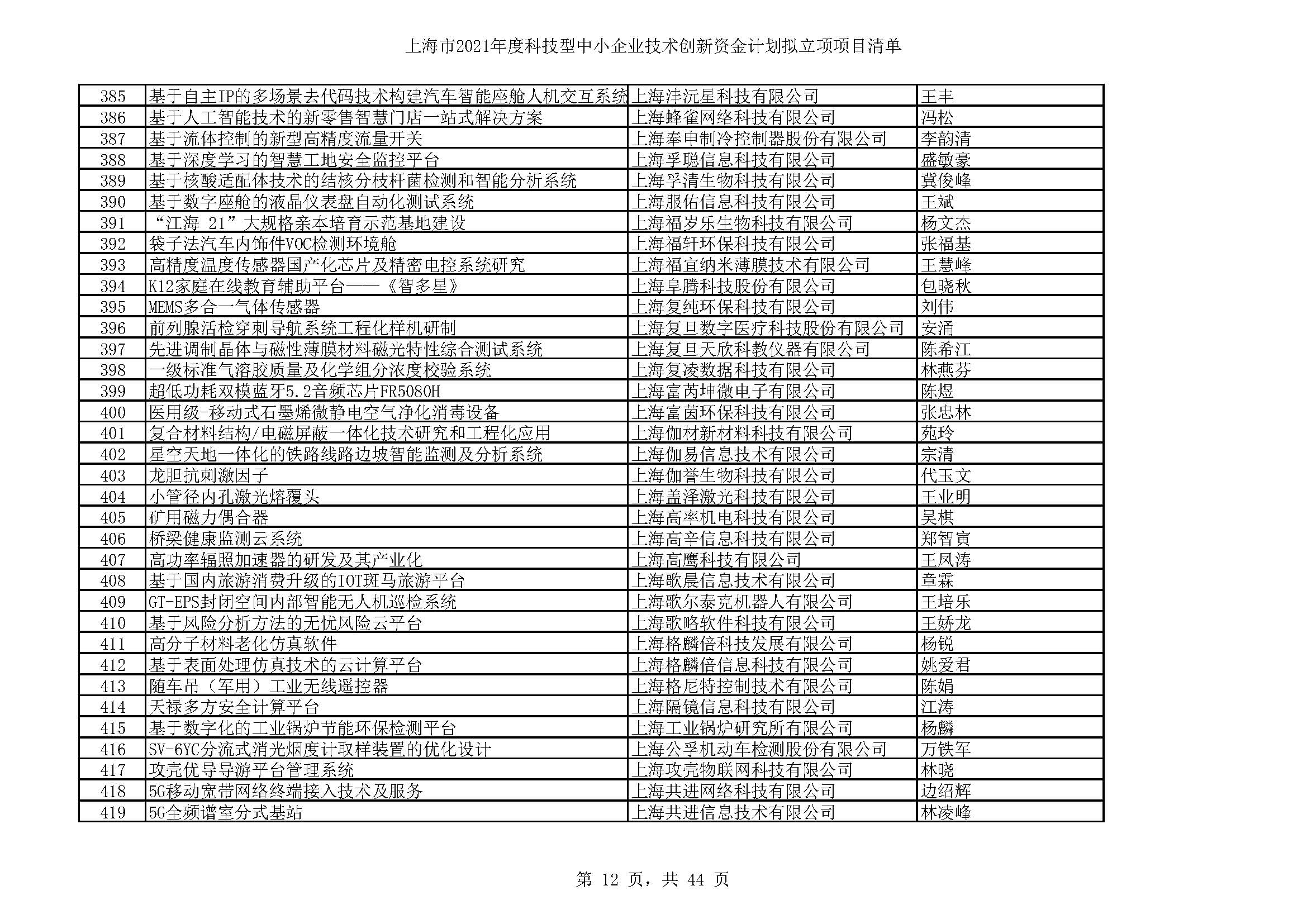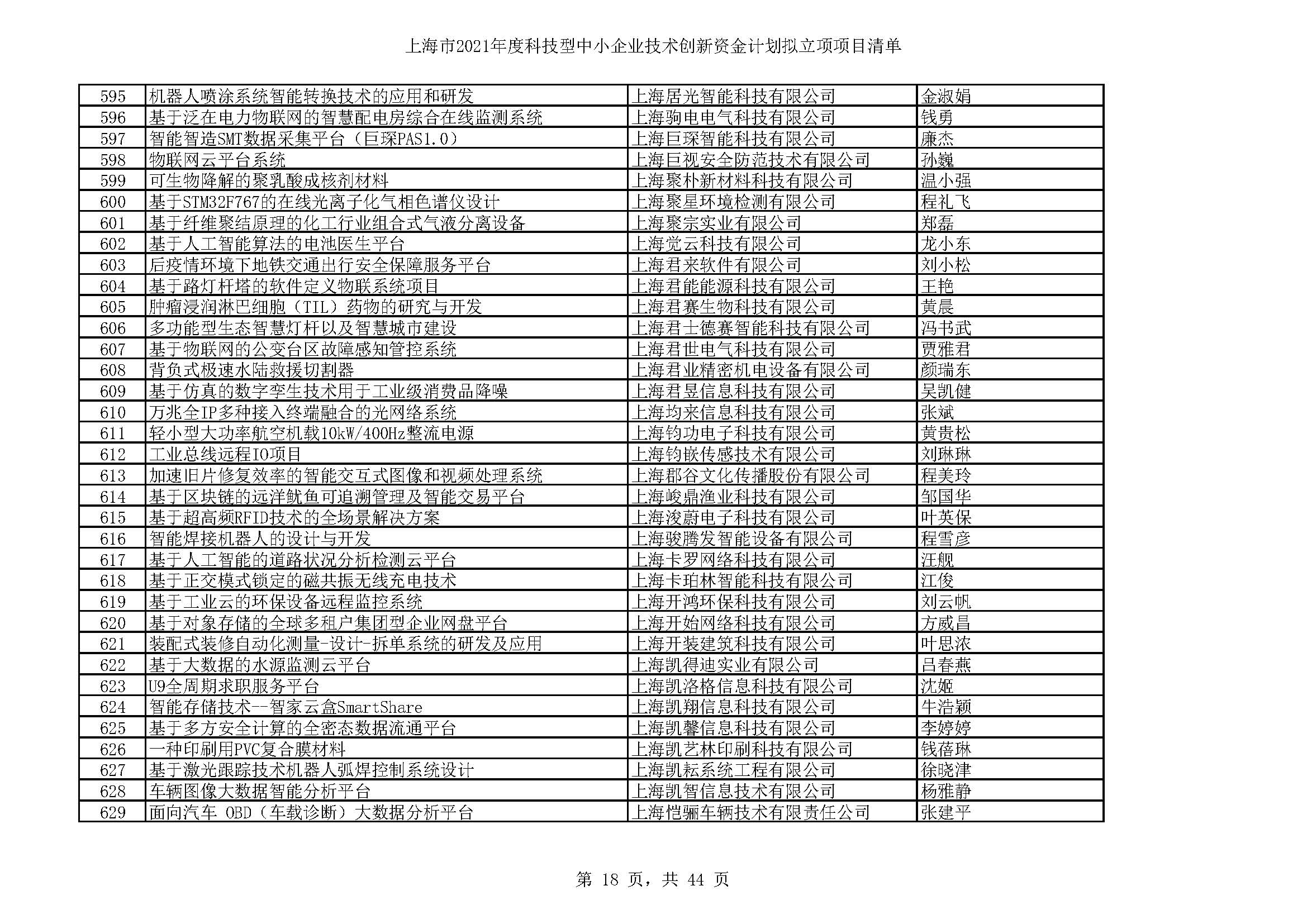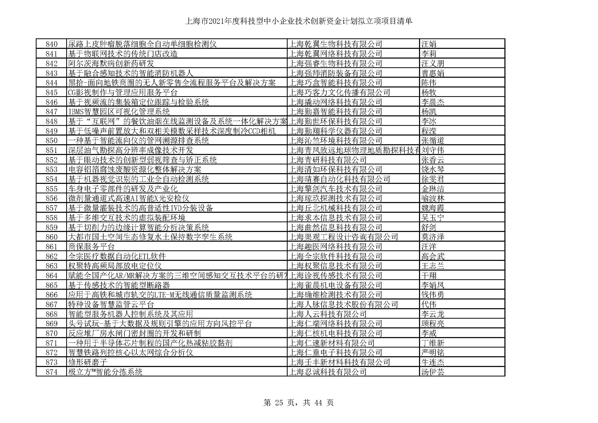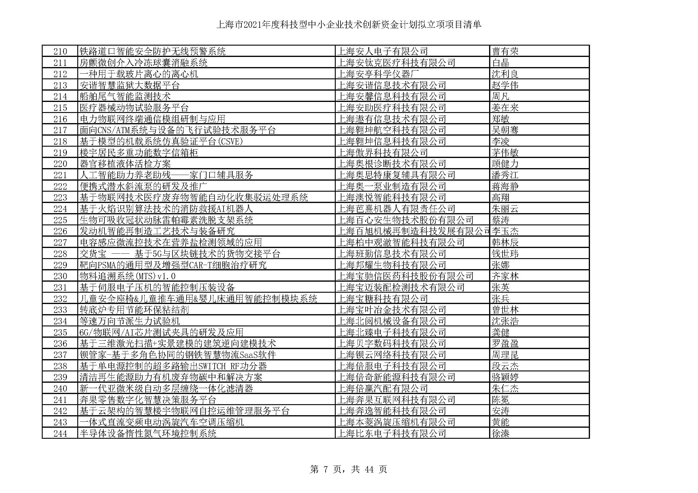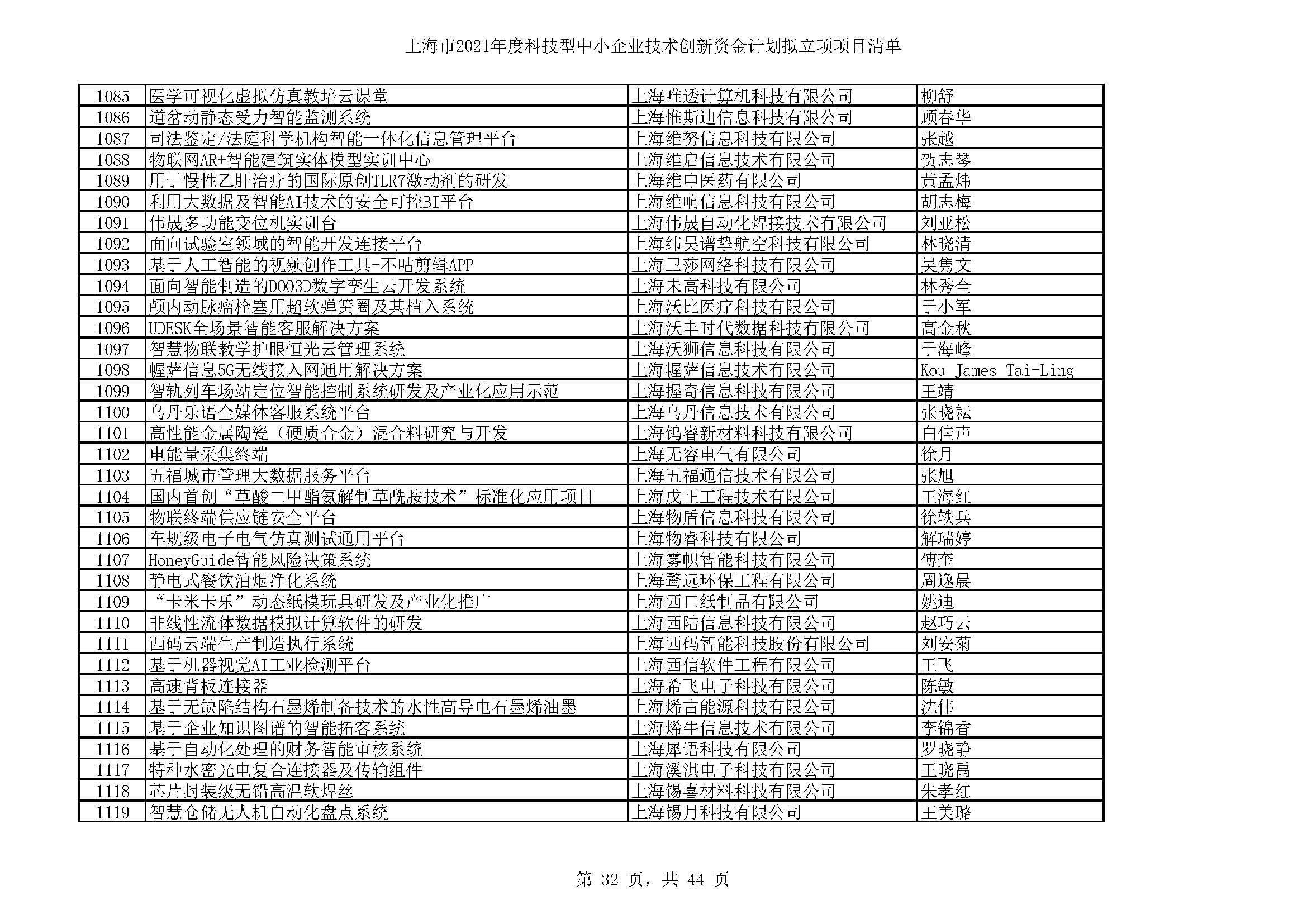 上海市2021年度科技型中小企業(yè)技術(shù)創(chuàng)新資金計(jì)劃擬立項(xiàng)項(xiàng)目公示的通知