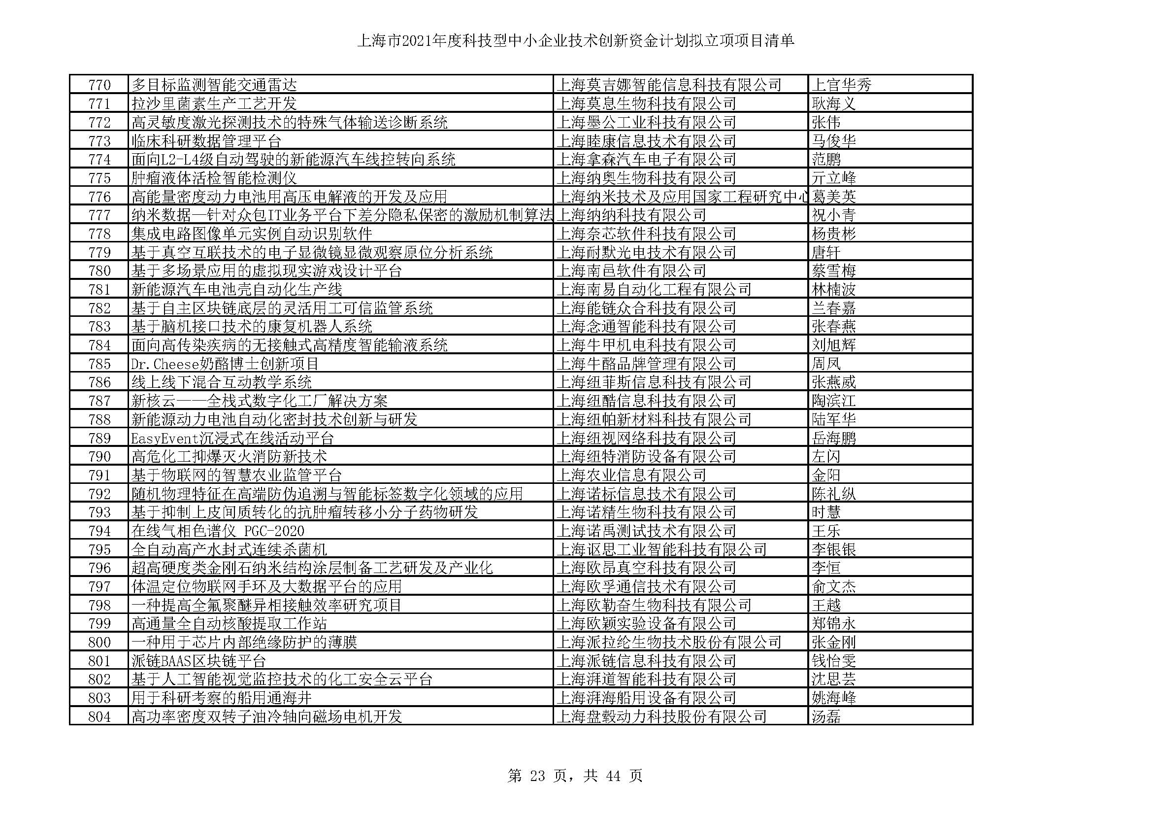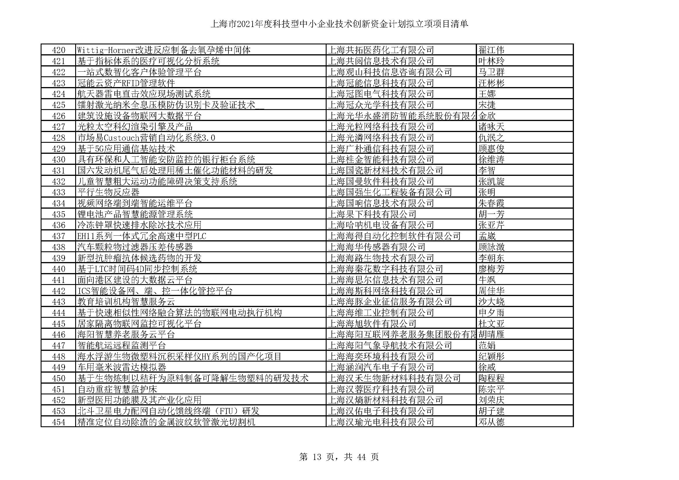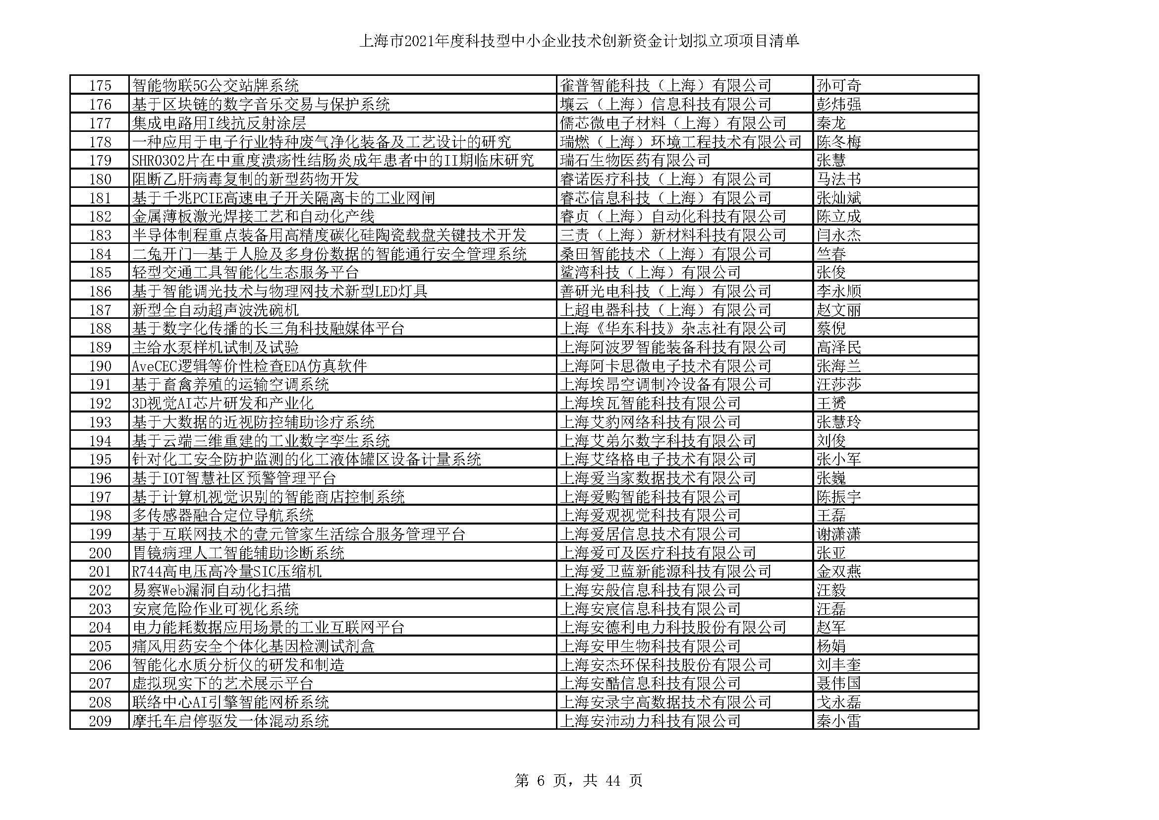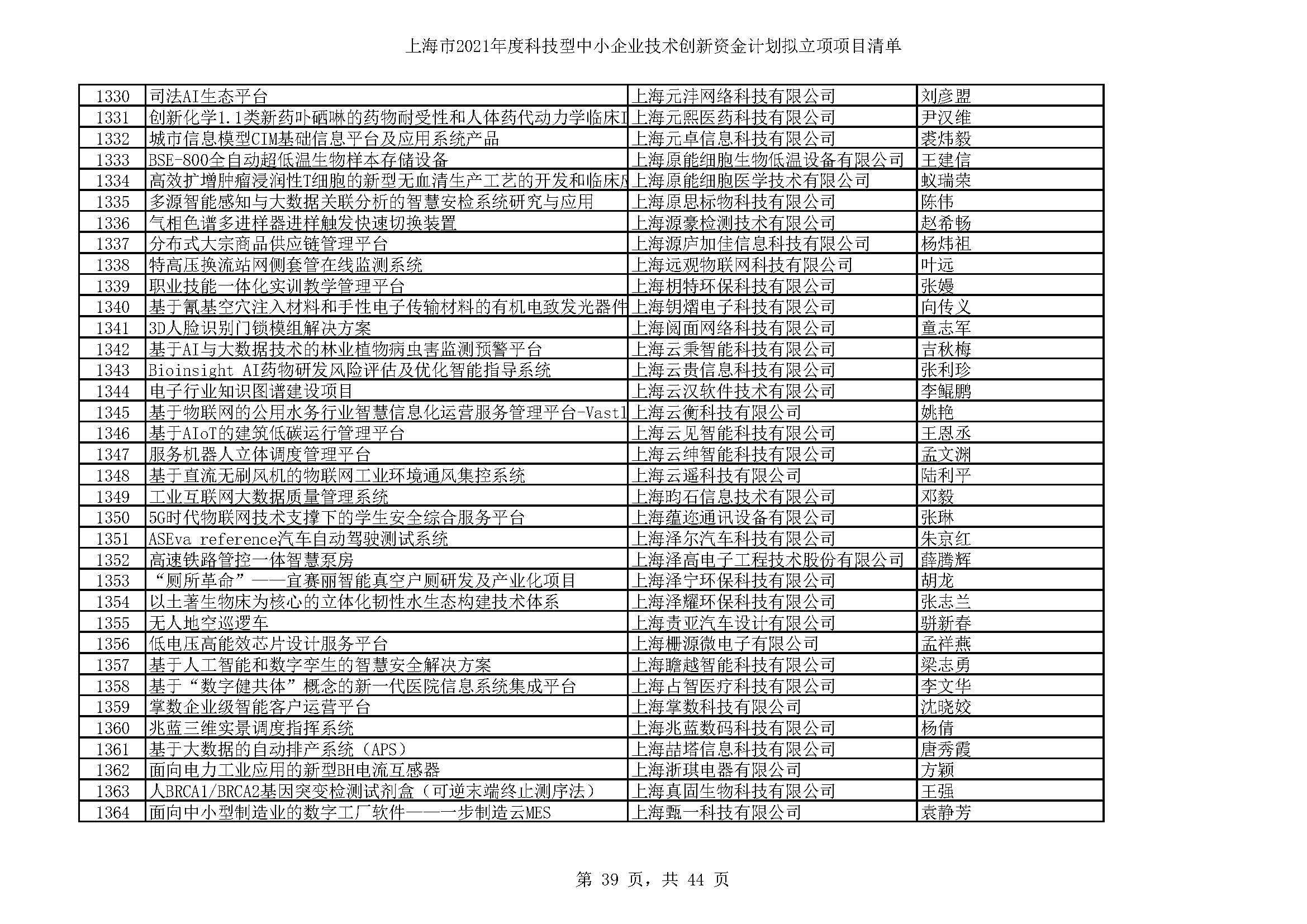 上海市2021年度科技型中小企業(yè)技術(shù)創(chuàng)新資金計(jì)劃擬立項(xiàng)項(xiàng)目公示的通知