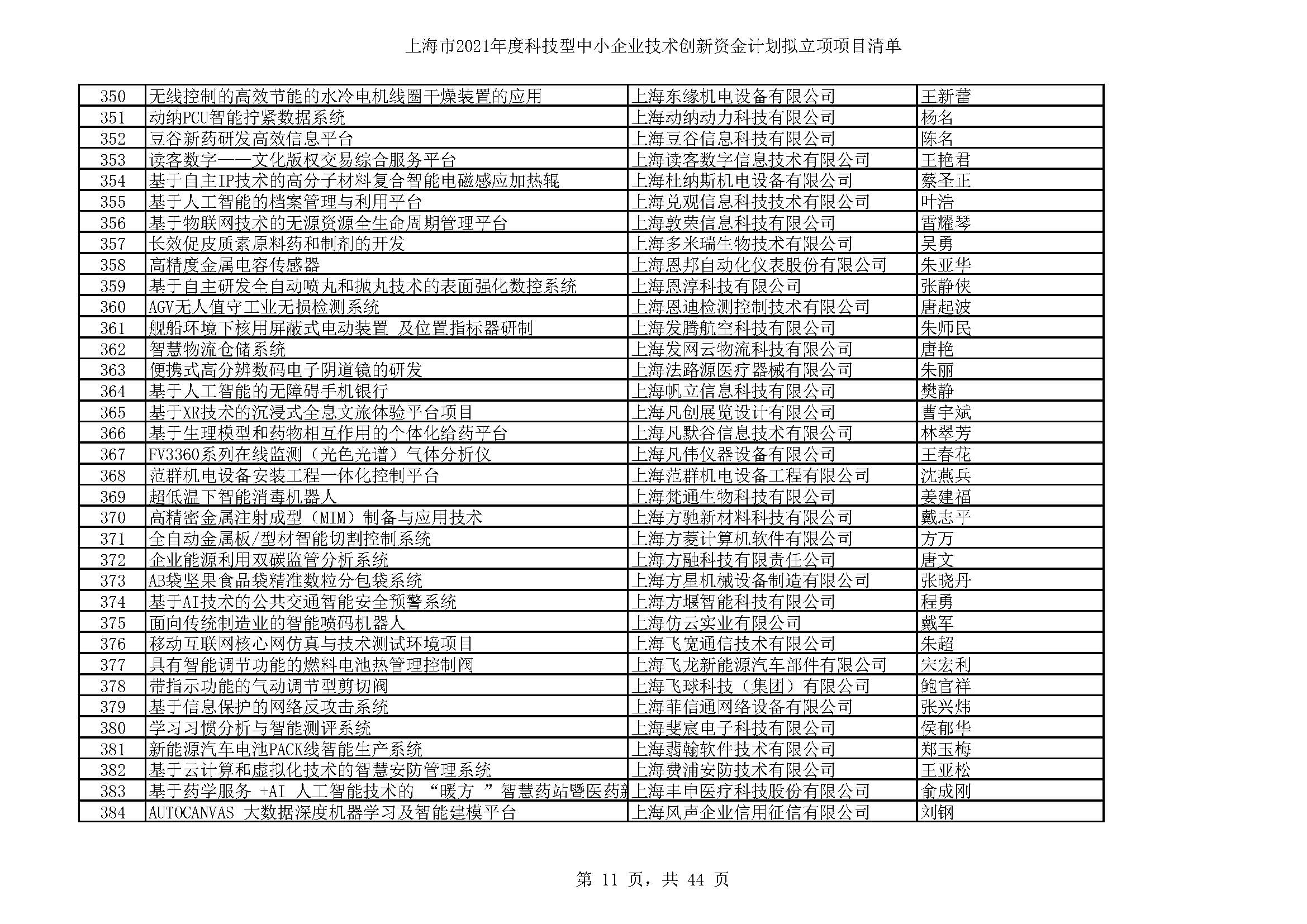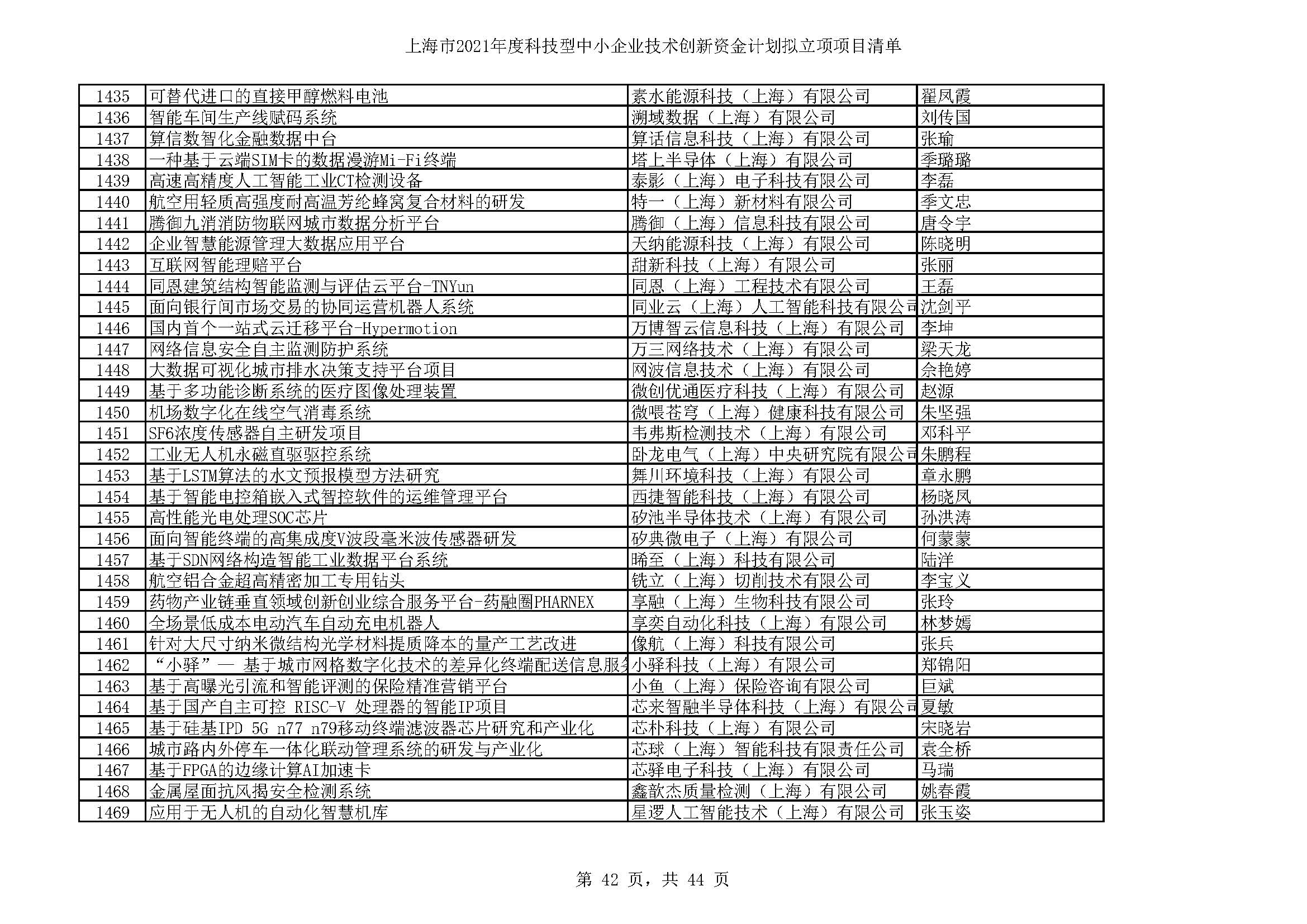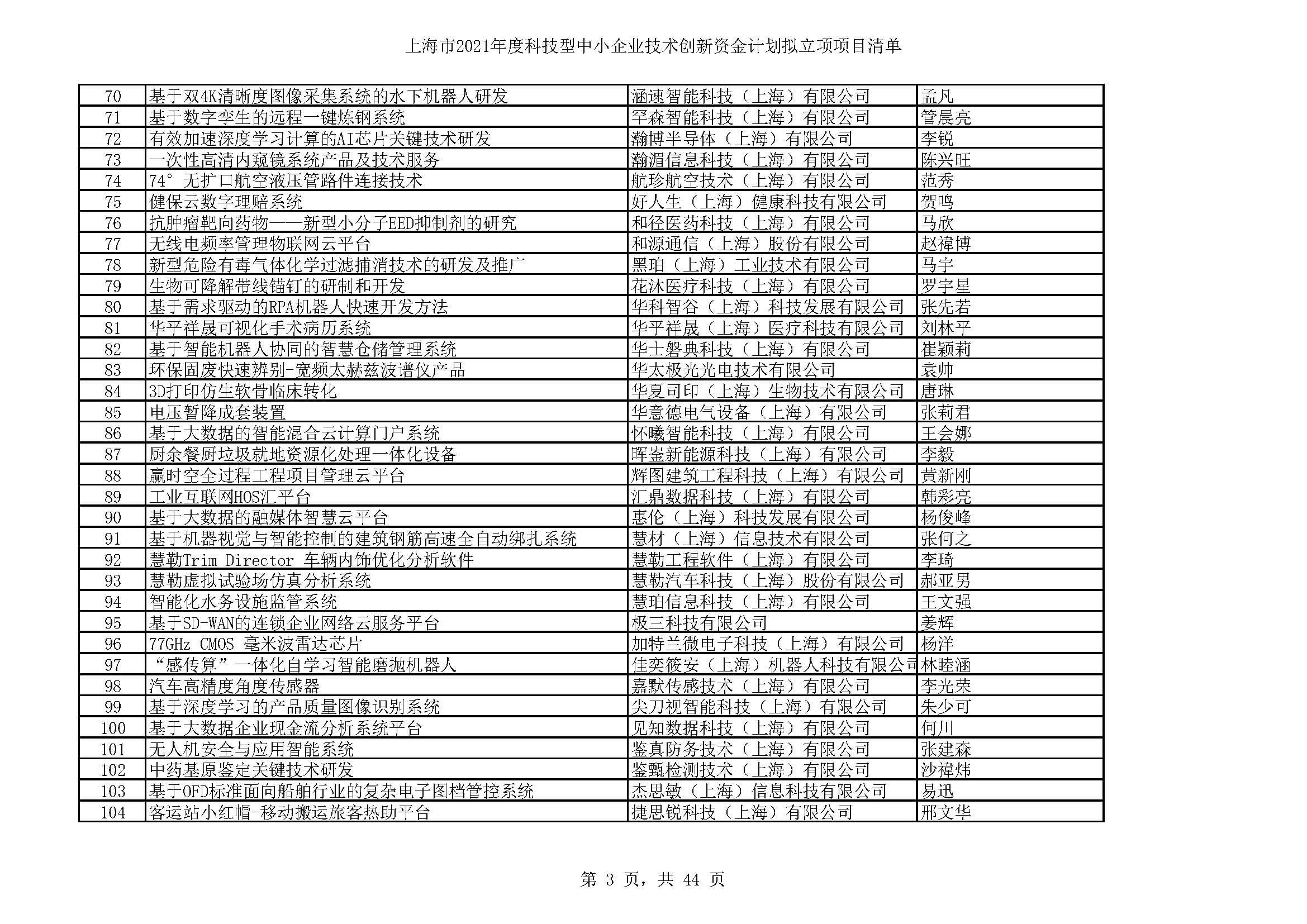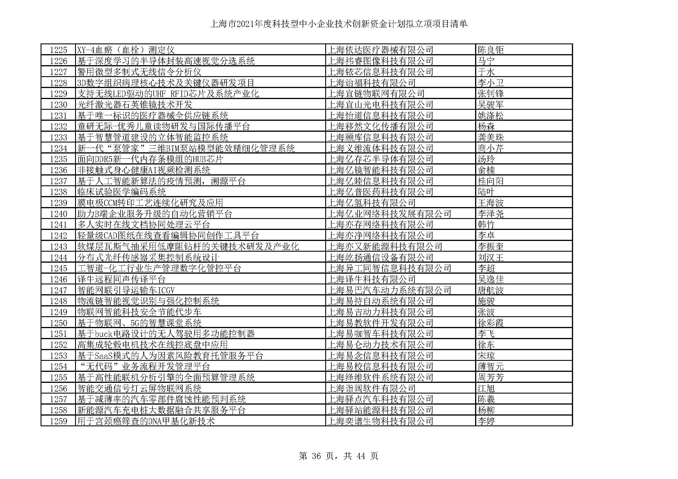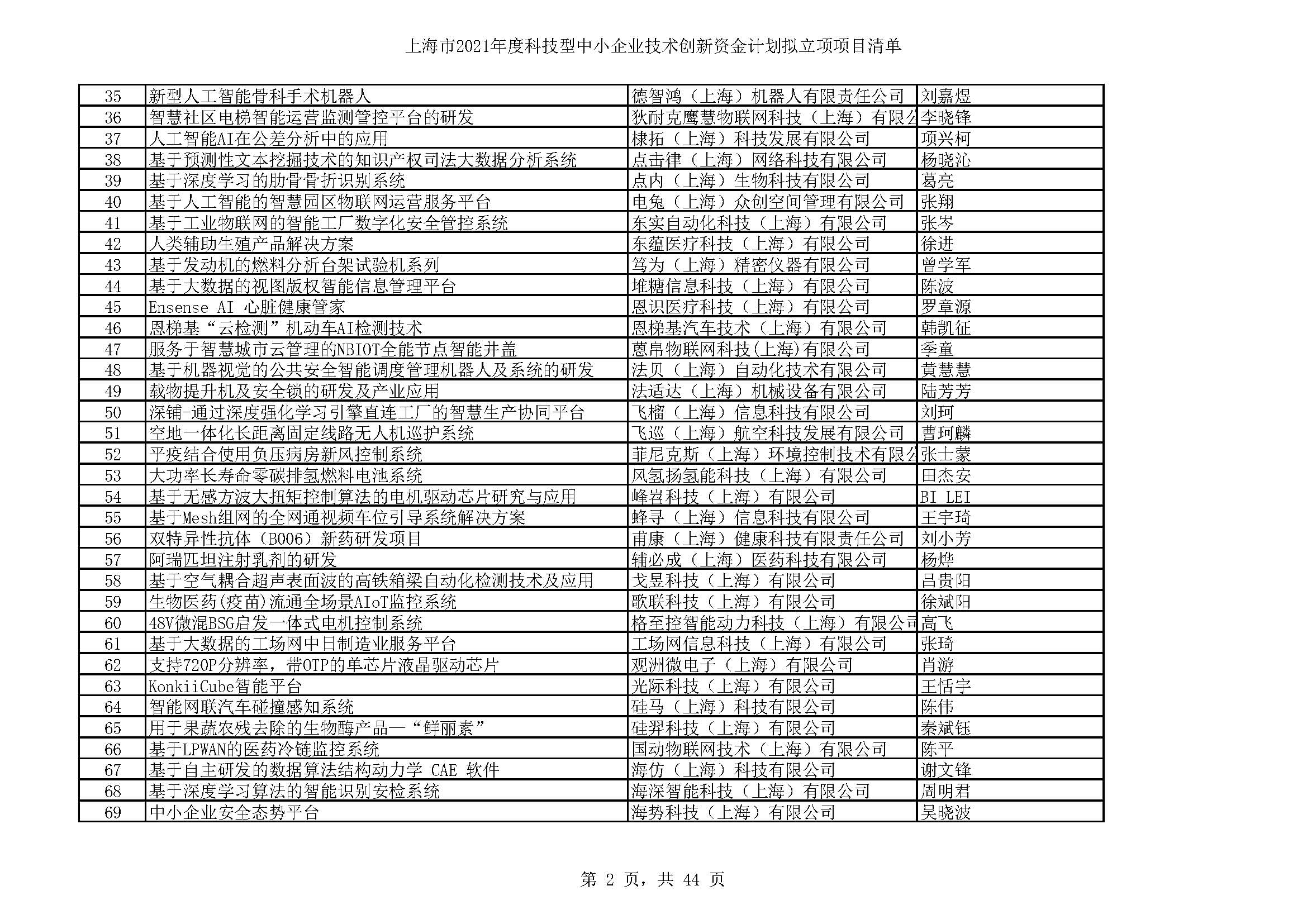 上海市2021年度科技型中小企業(yè)技術(shù)創(chuàng)新資金計(jì)劃擬立項(xiàng)項(xiàng)目公示的通知