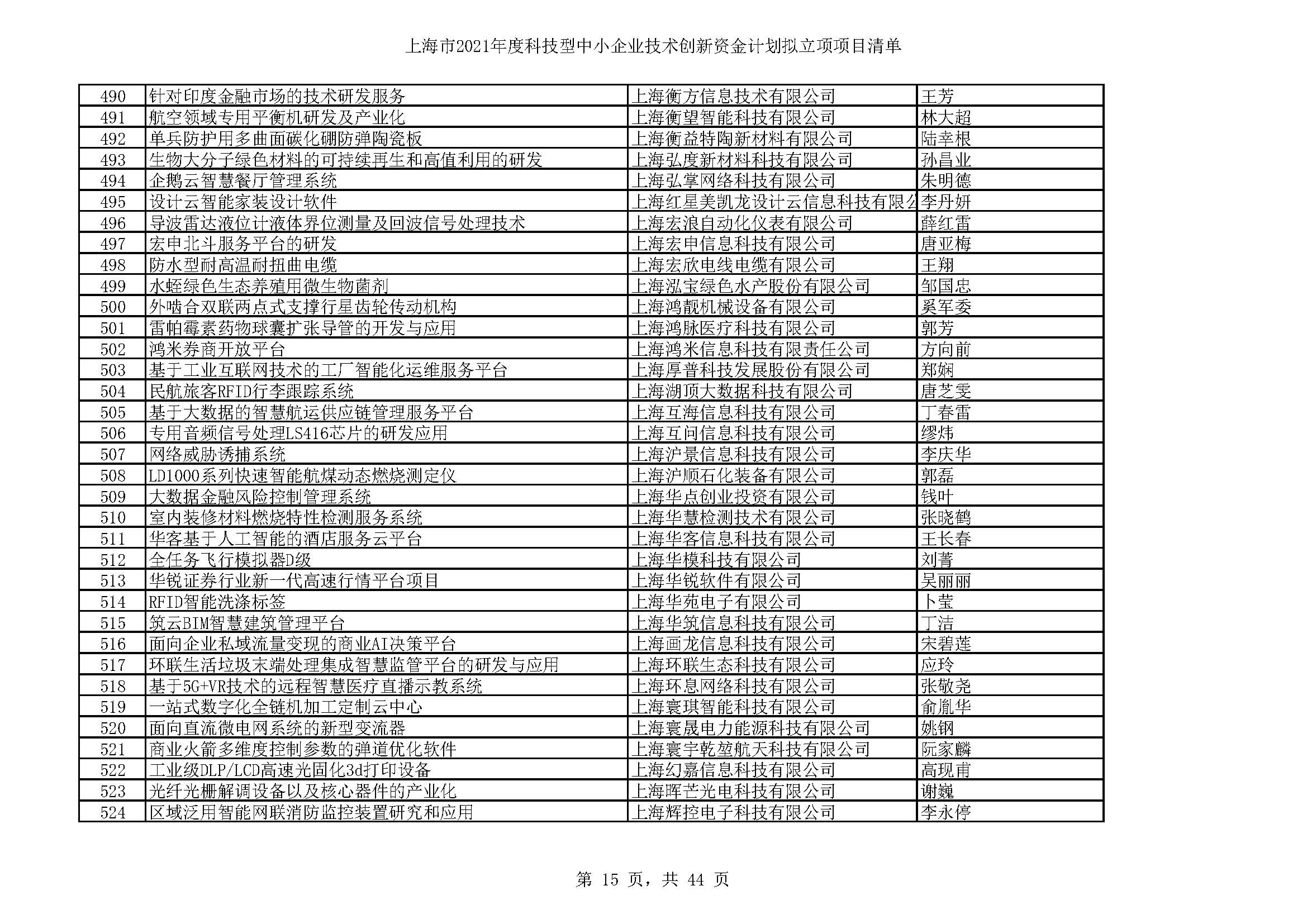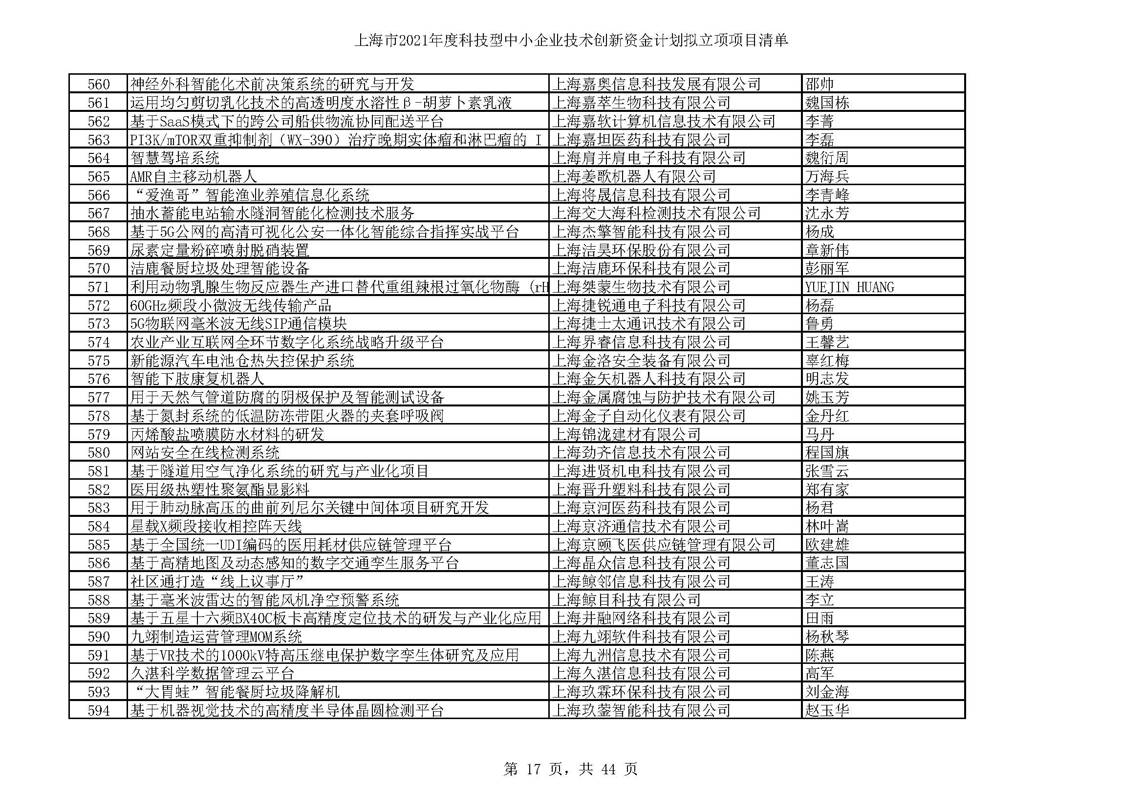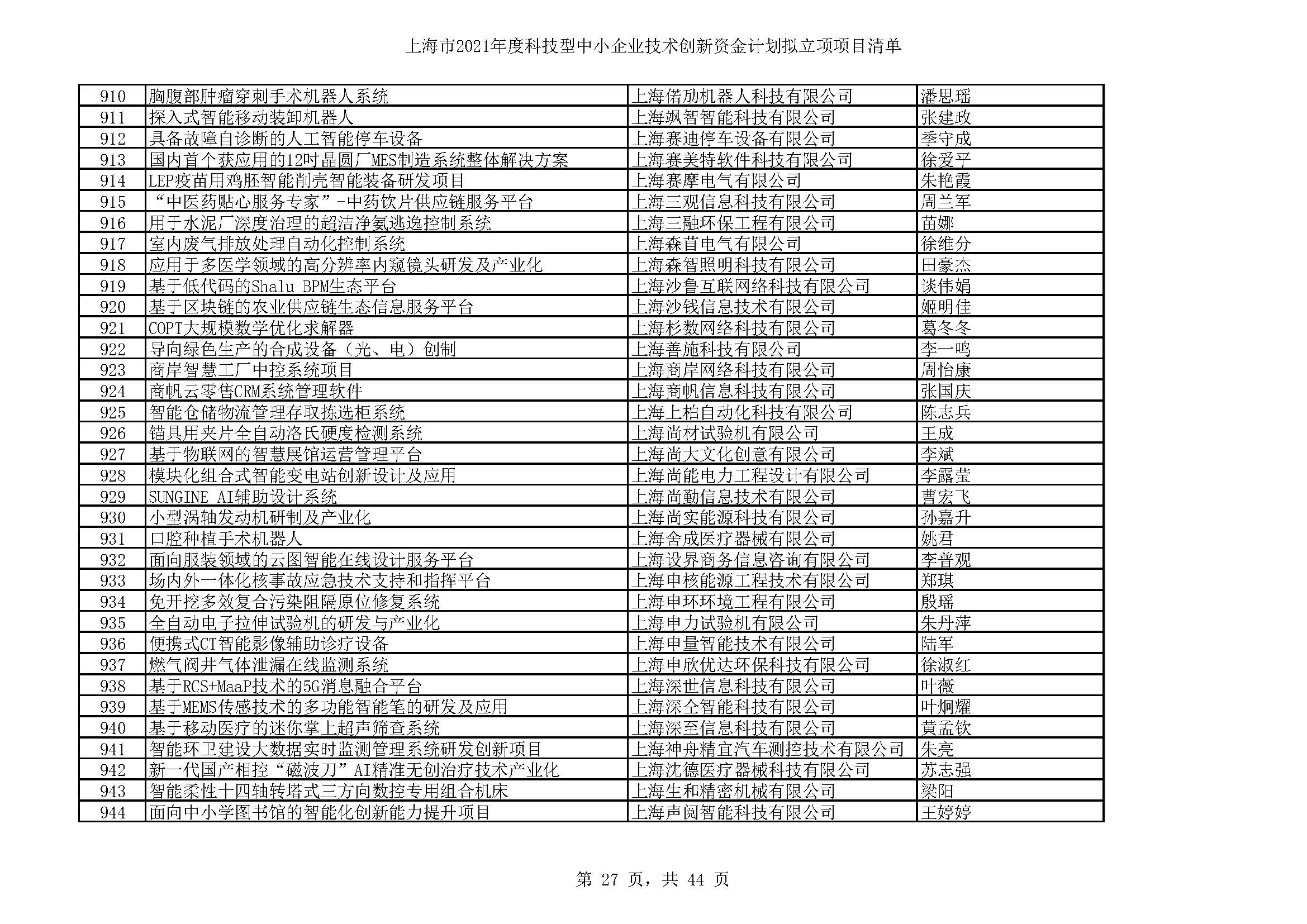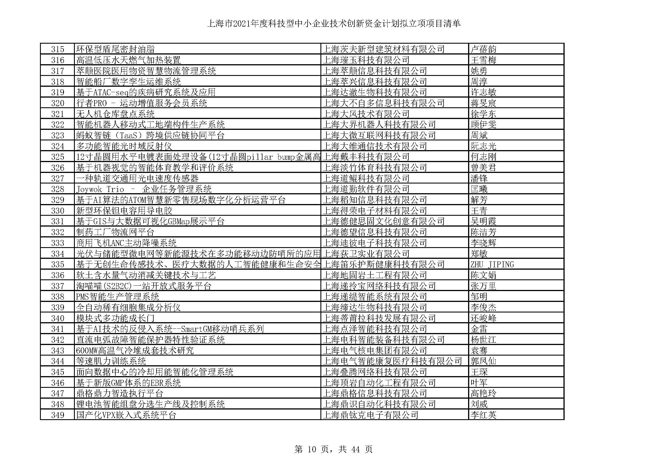 上海市2021年度科技型中小企業(yè)技術(shù)創(chuàng)新資金計(jì)劃擬立項(xiàng)項(xiàng)目公示的通知