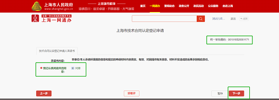 申請(qǐng)人必須確認(rèn)選擇同意承諾書(shū)內(nèi)容后,點(diǎn)擊“下一步”,進(jìn)入申報(bào)頁(yè)面。