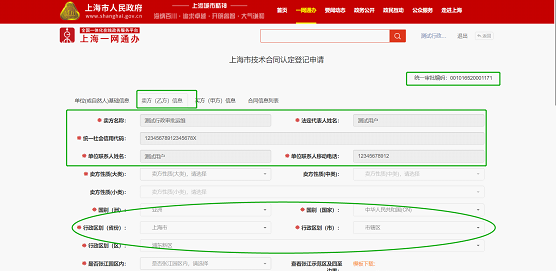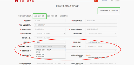 由于申報(bào)情形的要求,系統(tǒng)自動(dòng)將甲方單位地區(qū)默認(rèn)設(shè)置為中國(guó)上海。