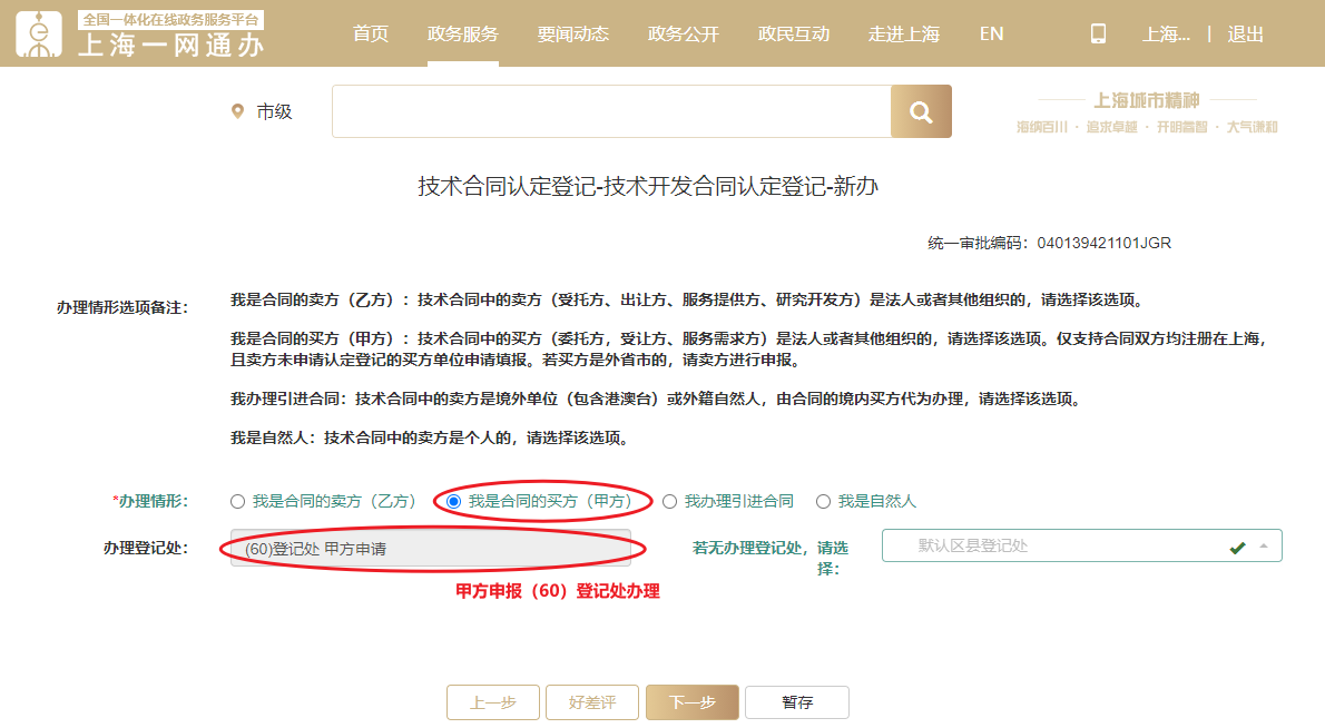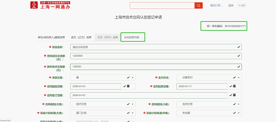 該情形辦理要求:合同雙方均為注冊(cè)在上海的單位,且該合同賣(mài)方未申請(qǐng)技術(shù)合同認(rèn)定登記,由合同買(mǎi)方單位申請(qǐng)?zhí)顖?bào)。