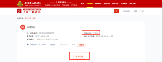 申請(qǐng)人可以利用“再次申請(qǐng)”功能,生成一個(gè)新的申報(bào)事項(xiàng),該新申報(bào)事項(xiàng)中的信息與原事項(xiàng)已填報(bào)的信息一樣(生成一個(gè)新的“統(tǒng)一審批編碼”)。