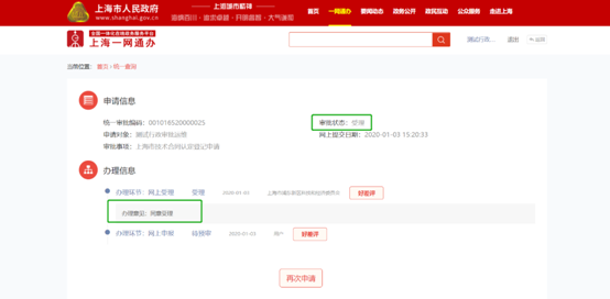 狀態(tài)說(shuō)明:申報(bào)中,待預(yù)審,受理,不予受理,辦結(jié)。