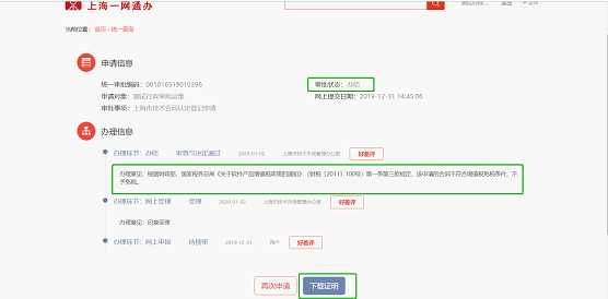 辦結(jié):該事項(xiàng)的申報(bào)已辦理完結(jié)。相關(guān)結(jié)果及辦理意見(jiàn)頁(yè)面會(huì)有提示,并可點(diǎn)擊“下載通知”按鈕,下載《技術(shù)合同認(rèn)定登記審核證明》。