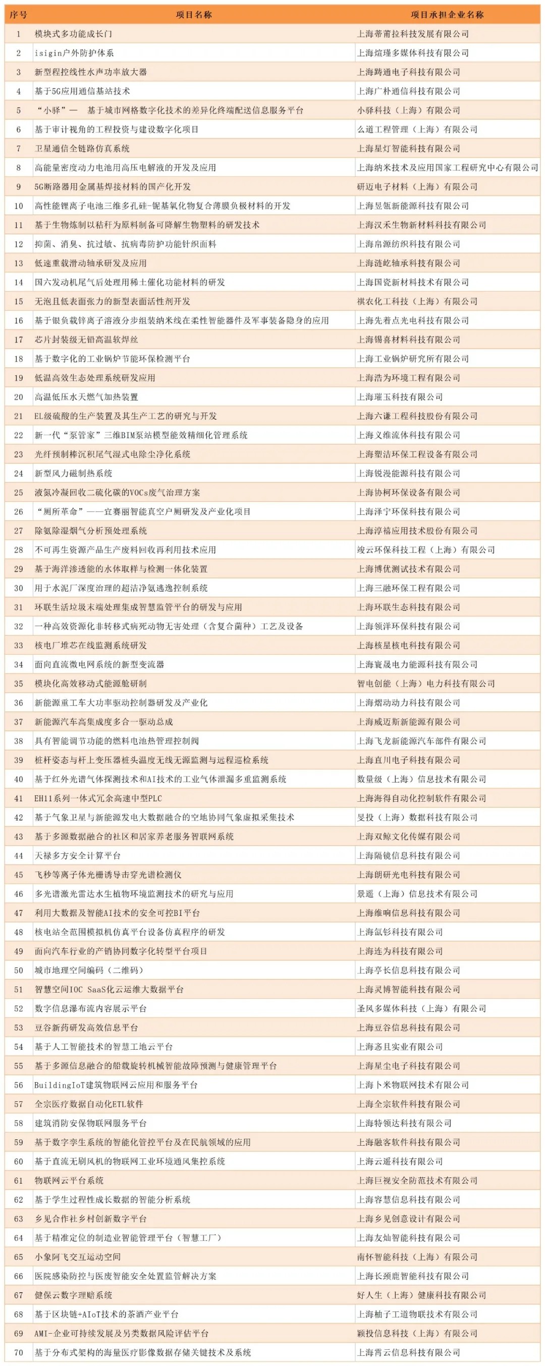 2021年度上海市創(chuàng)新資金立項項目閔行區(qū)清單