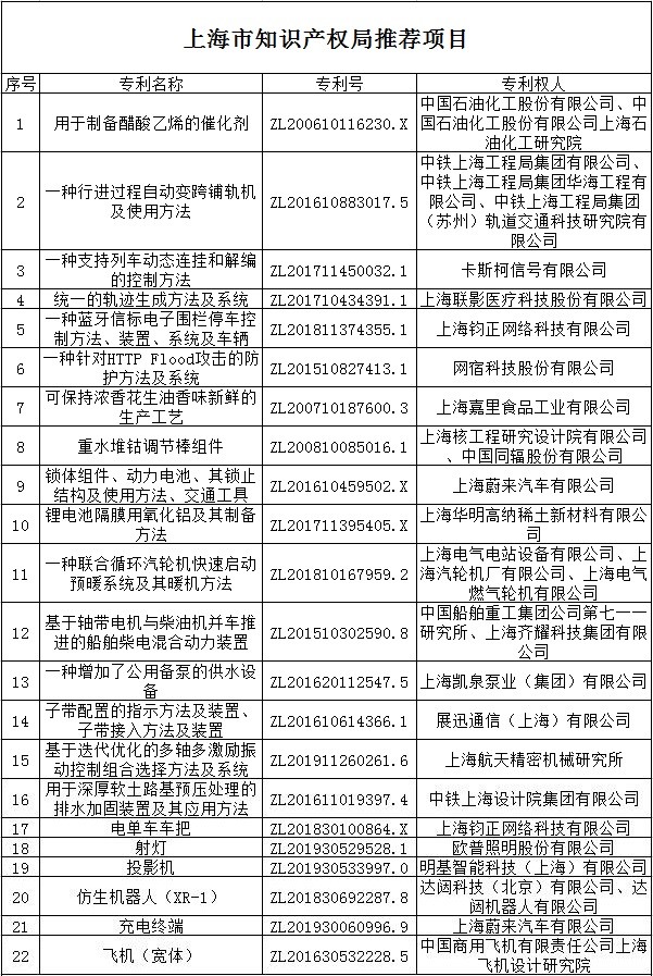 上海市知識產(chǎn)權(quán)局關(guān)于推薦第二十三屆中國專利獎(jiǎng)參評項(xiàng)目的公示