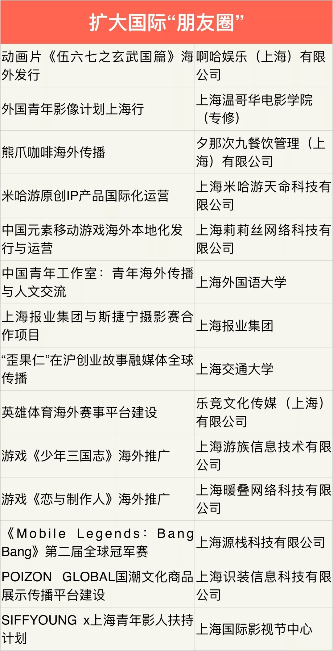 今年共有220個項目申報,申報主體涉及影視機構(gòu)、文藝院團、媒體、智庫、互聯(lián)網(wǎng)企業(yè)等,也包括旅游、餐飲、體育等多領(lǐng)域企業(yè),以及在國際文化傳播中發(fā)揮積極作用的個人。日前,項目評審工作已結(jié)束,經(jīng)專家評審,共有58個項目脫穎而出。