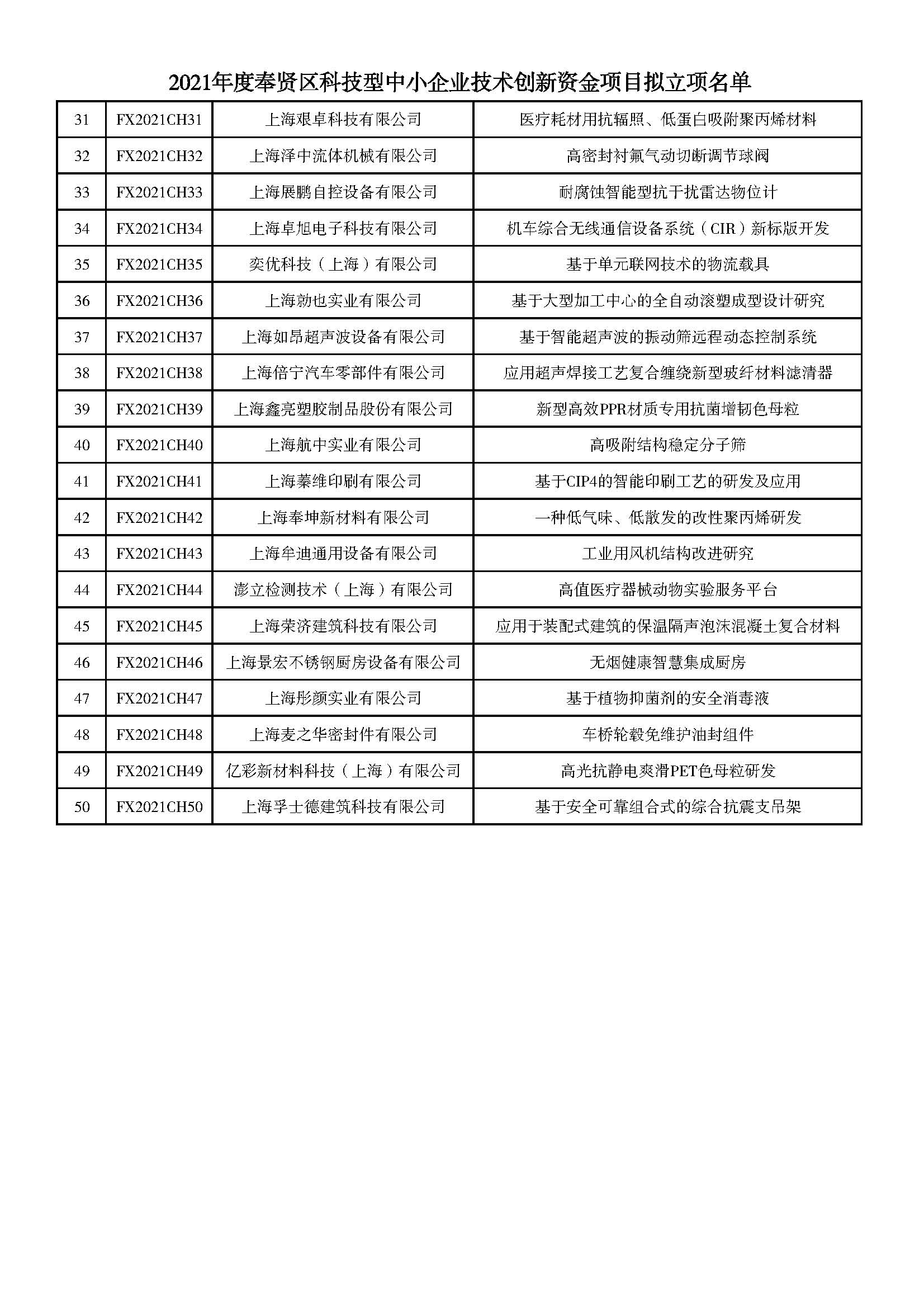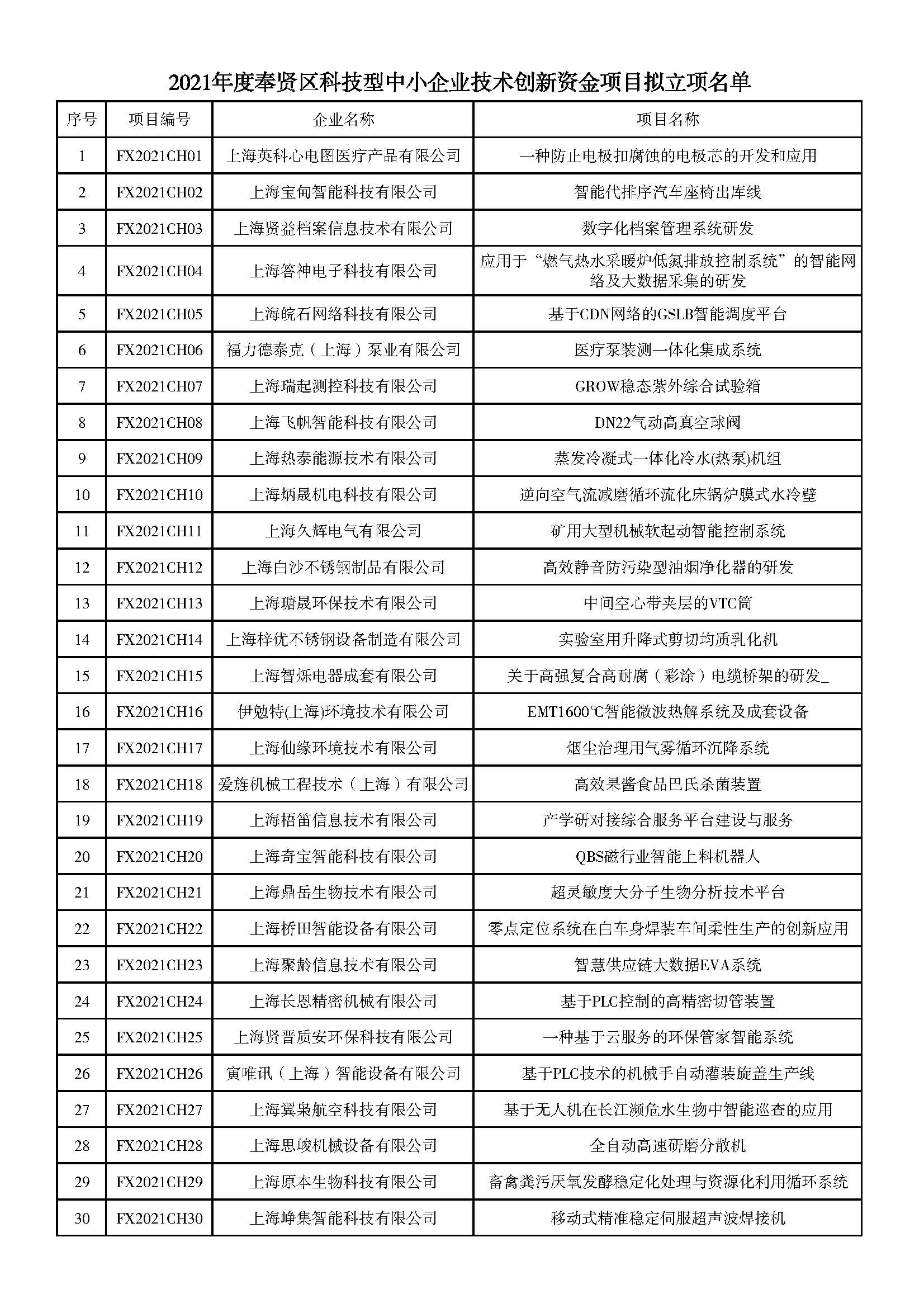 附件:2021年度奉賢區(qū)科技型中小企業(yè)技術(shù)創(chuàng)新資金項(xiàng)目擬立項(xiàng)名單
