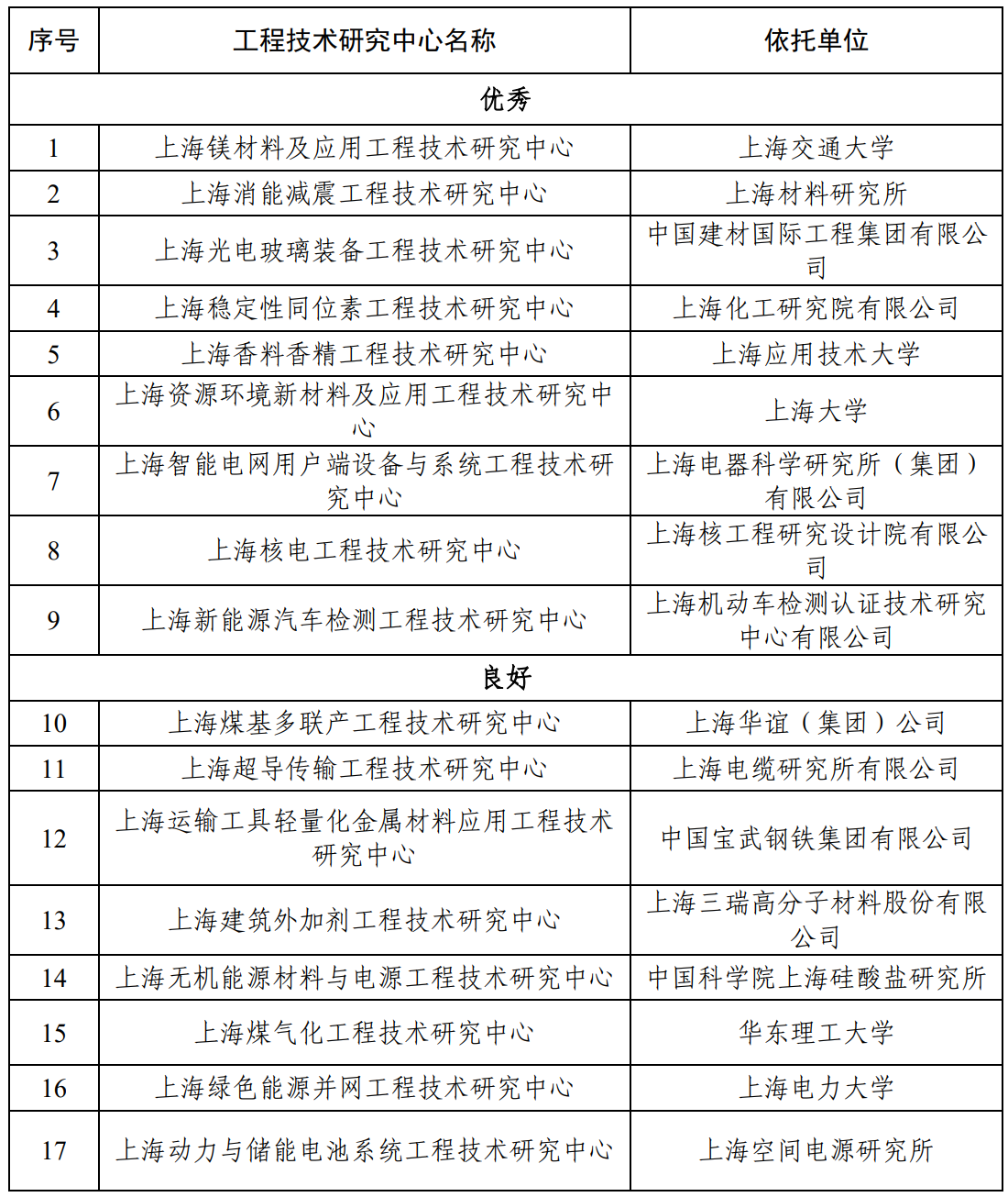 依據(jù)《上海工程技術(shù)研究中心建設(shè)與管理辦法》(滬科規(guī)〔2019〕6號(hào)),我委組織材料、能源及交通領(lǐng)域的61家上海工程技術(shù)研究中心(以下簡稱“工程中心”)開展進(jìn)行了評(píng)估,現(xiàn)將評(píng)估結(jié)果予以發(fā)布。