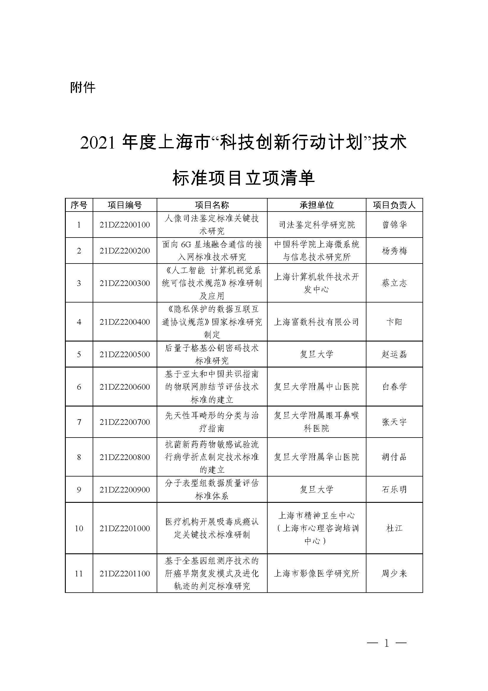 2021年度上海市“科技創(chuàng)新行動(dòng)計(jì)劃”技術(shù)標(biāo)準(zhǔn)項(xiàng)目立項(xiàng)結(jié)果的通知