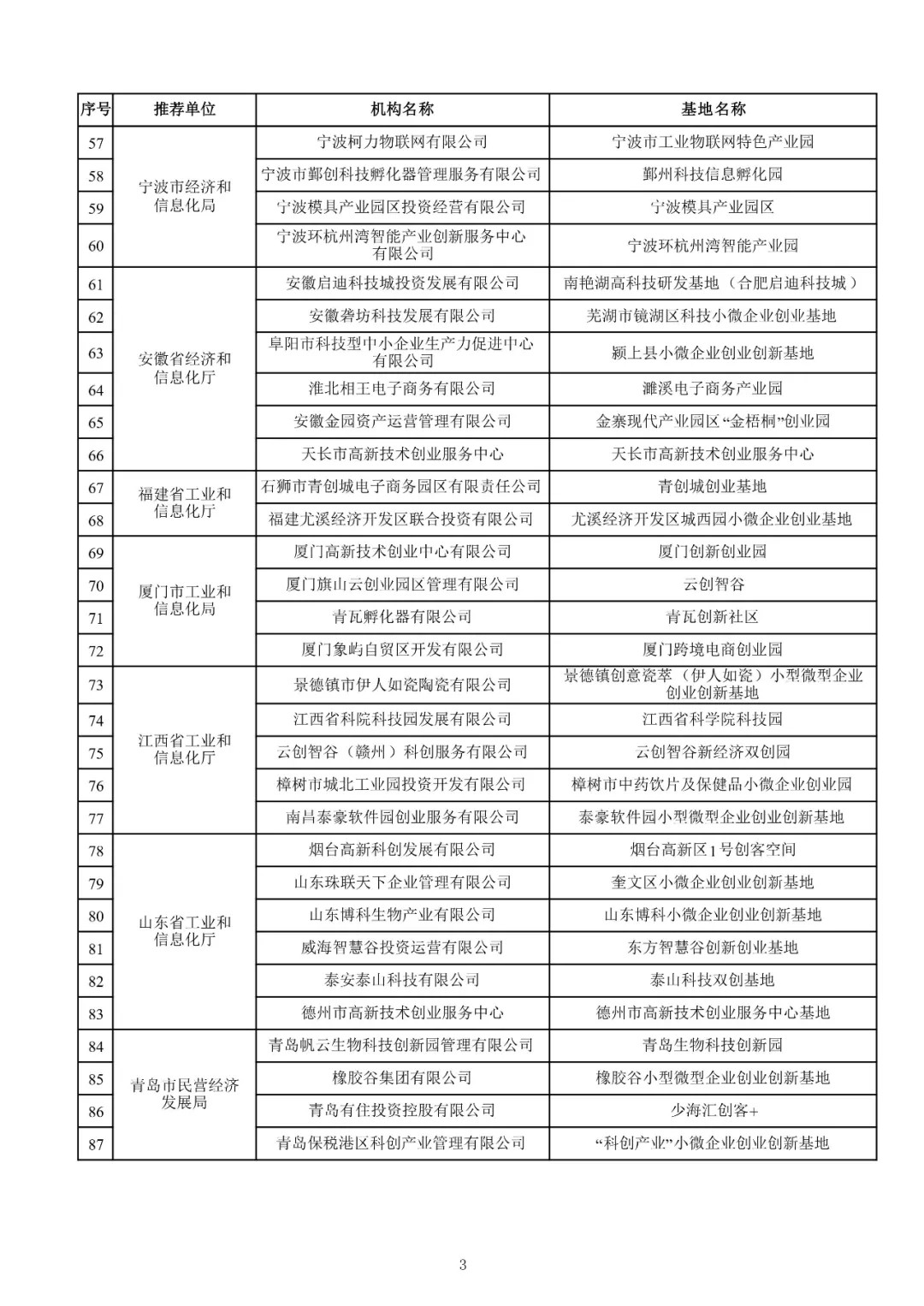 2021年度國家小型微型企業(yè)創(chuàng)業(yè)創(chuàng)新示范基地名單的通告