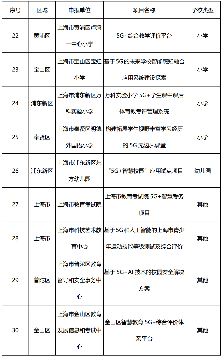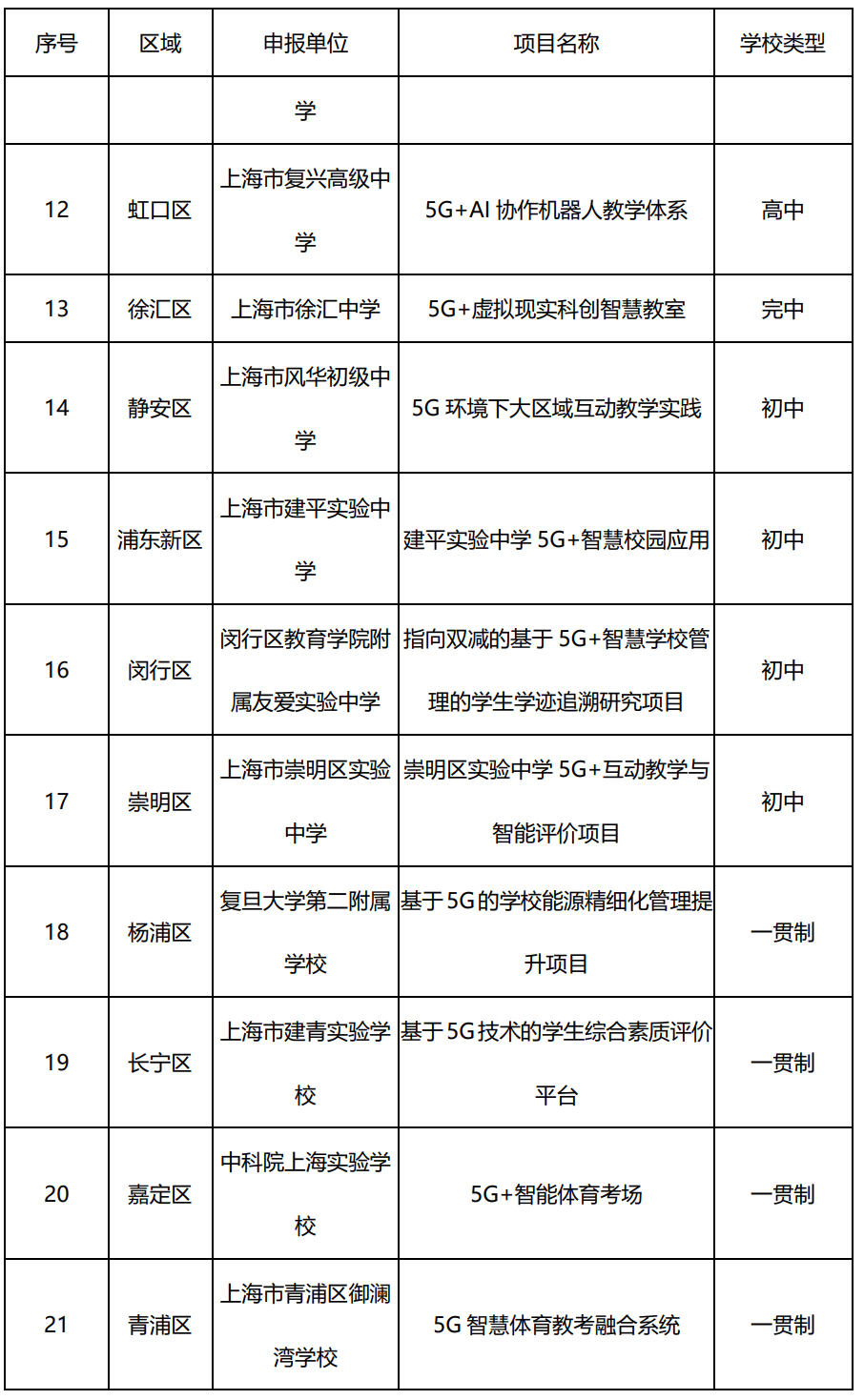 上海市“5G+智慧教育”應(yīng)用試點項目“優(yōu)秀項目方案”名單公示
