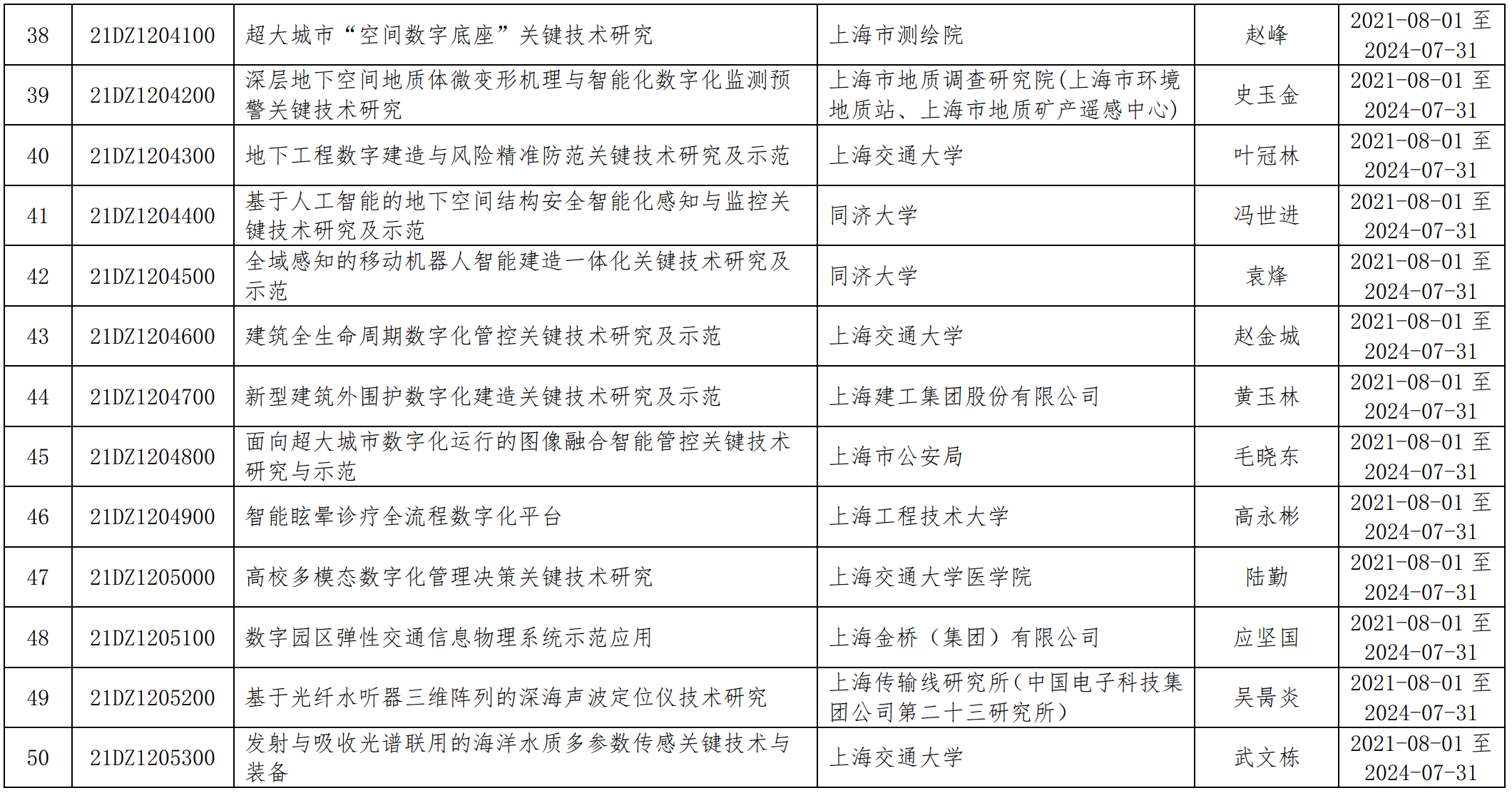 根據(jù)《關(guān)于發(fā)布上海市2021年度“科技創(chuàng)新行動計劃”社會發(fā)展科技攻關(guān)項目申報指南的通知》(滬科指南〔2021〕14號)要求,經(jīng)申報推薦、形式審查、專家評審、立項公示等程序,現(xiàn)對《高層建筑外墻脫落風(fēng)險感知與智能診斷管控關(guān)鍵技術(shù)研究與示范》等58個項目予以立項,市科委資助13870萬元,其中2021年撥款11096萬元。請各項目承擔(dān)單位做好項目組織實施和管理工作,確保按期完成項目研究任務(wù)目標。