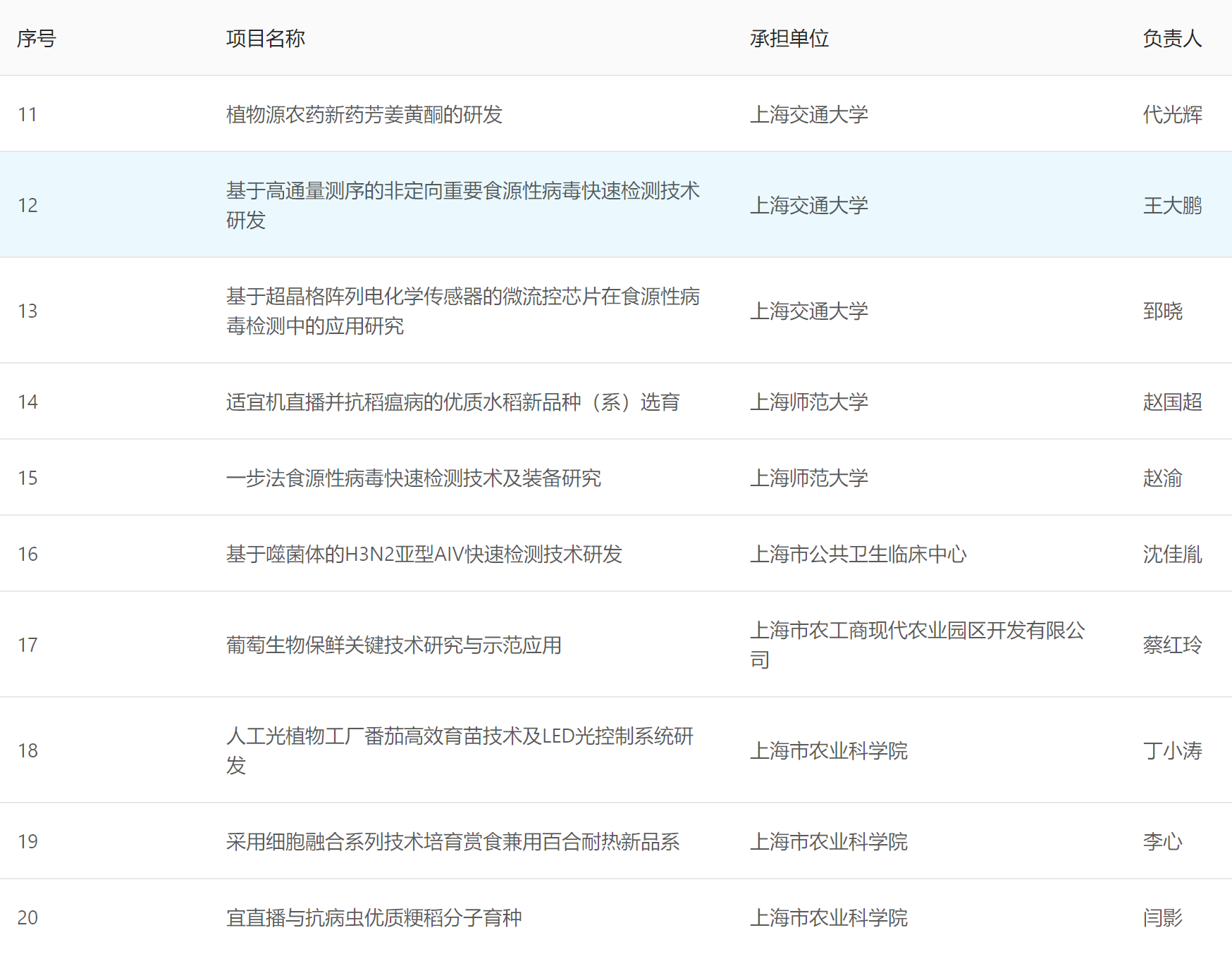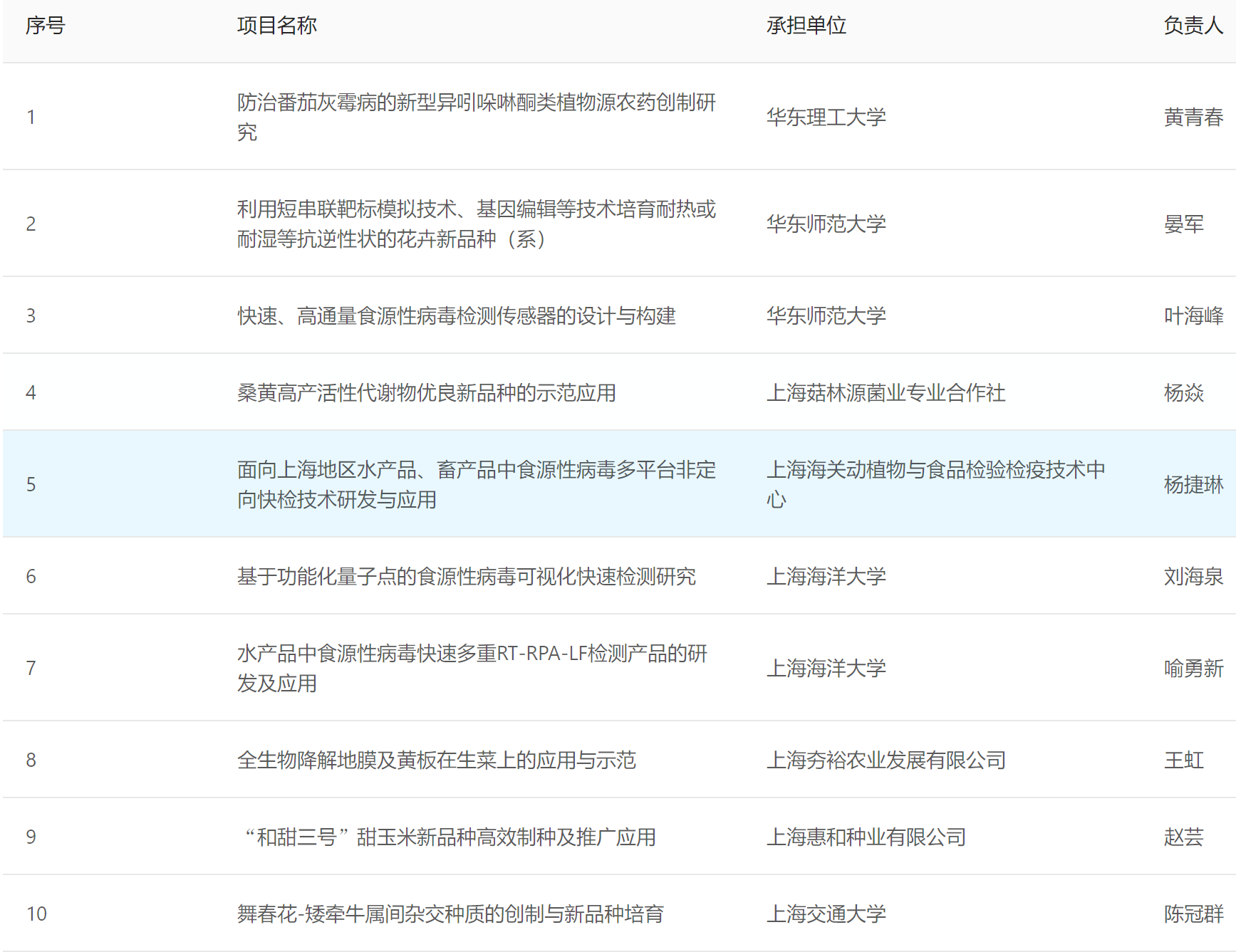 上海市2022年度農(nóng)業(yè)科技領(lǐng)域擬立項項目公示的通知