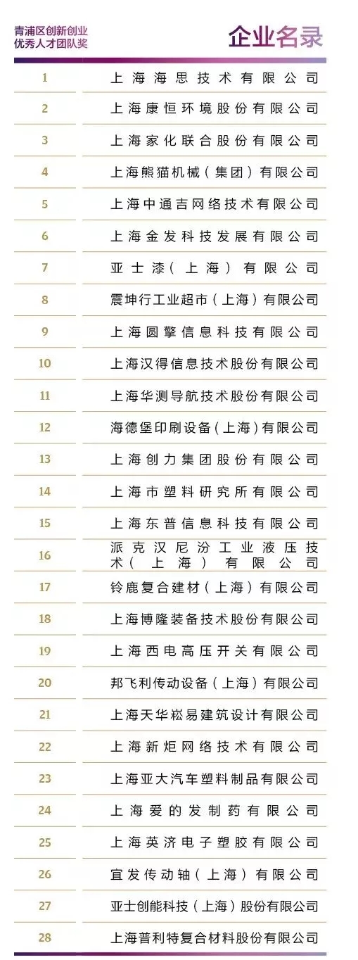2021年度青浦區(qū)創(chuàng)新創(chuàng)業(yè)優(yōu)秀人才團(tuán)隊(duì)獎獲獎企業(yè)名單出爐!