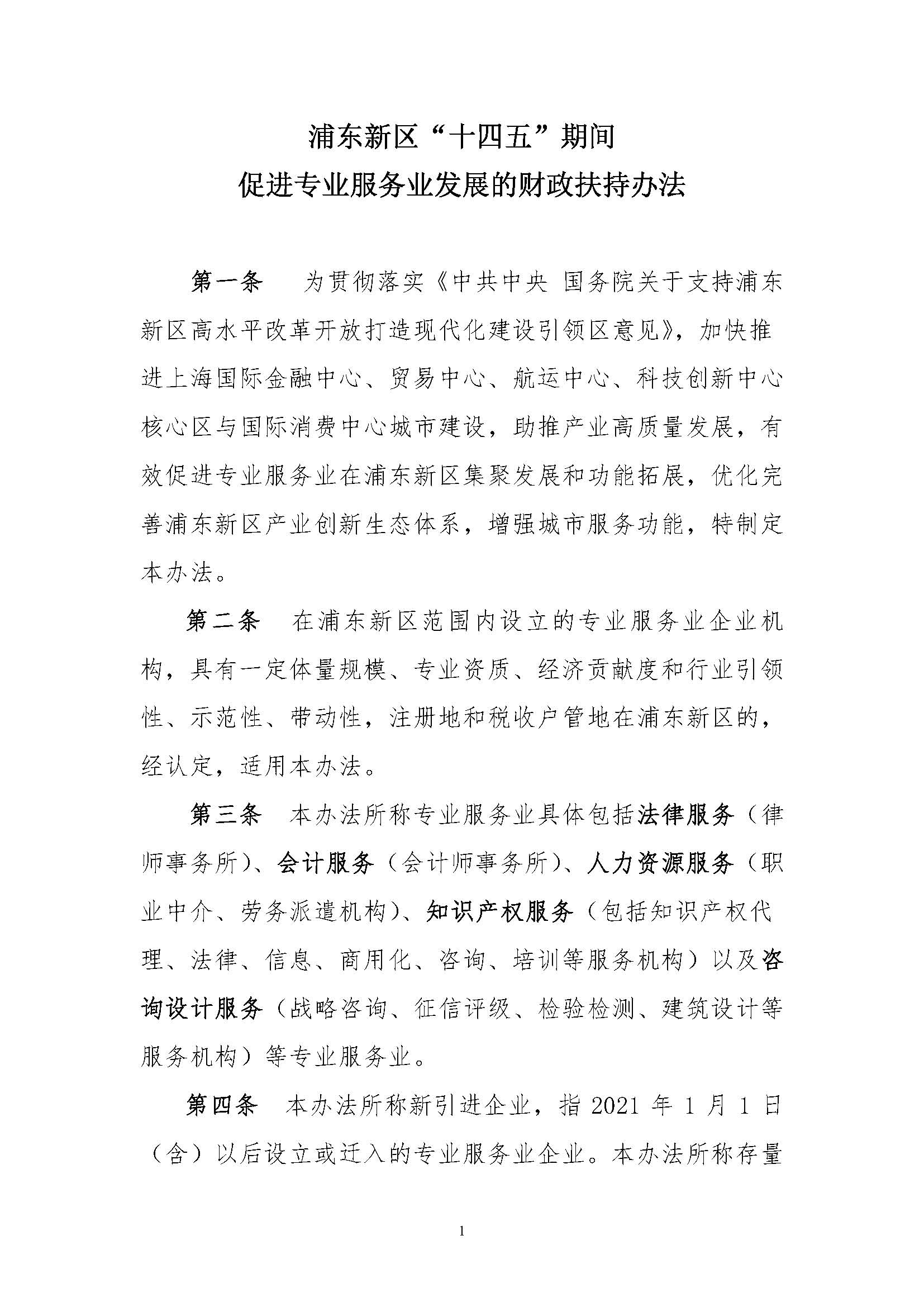 浦東新區(qū)“十四五”期間促進專業(yè)服務(wù)業(yè)發(fā)展的財政扶持辦法.pdf