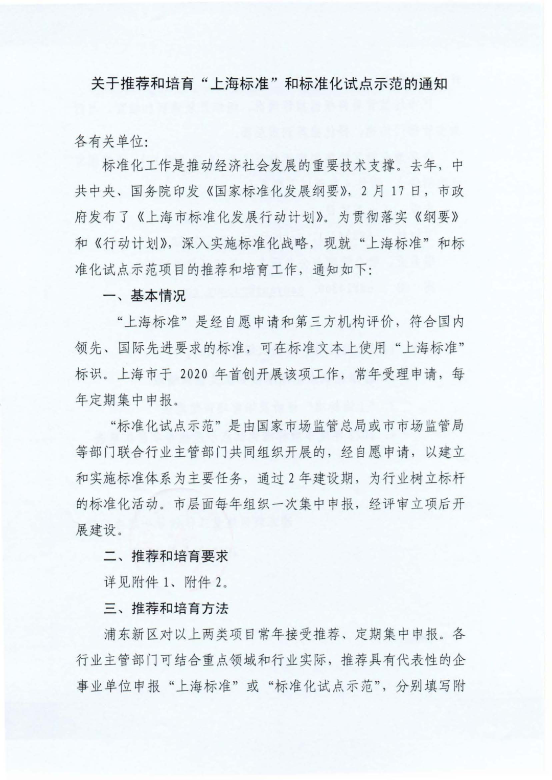 關(guān)于推薦和培育“上海標(biāo)準(zhǔn)” 和標(biāo)準(zhǔn)化試點(diǎn)示范的通知