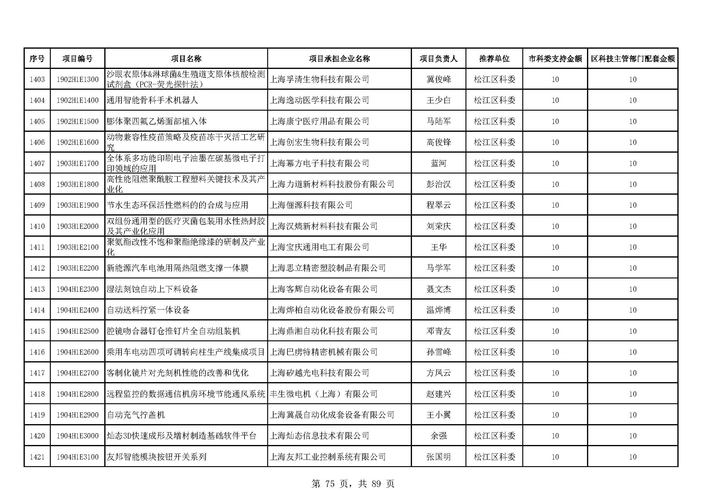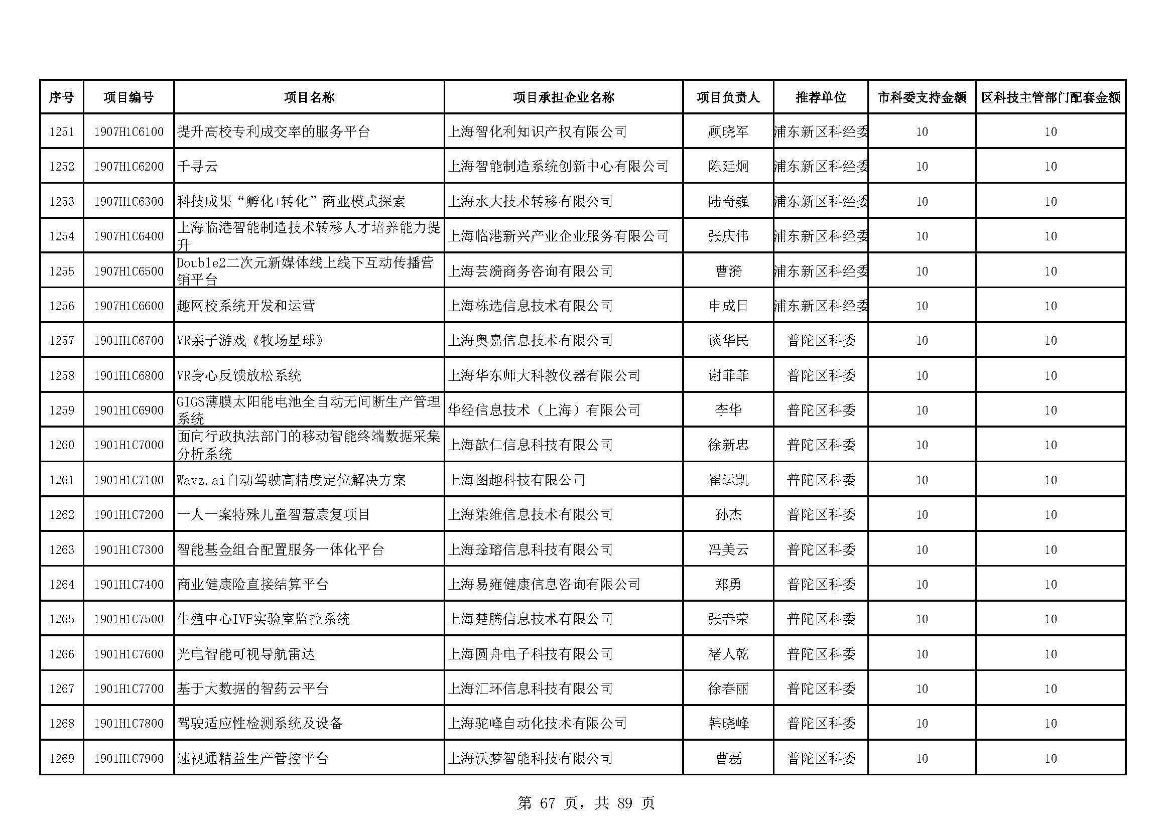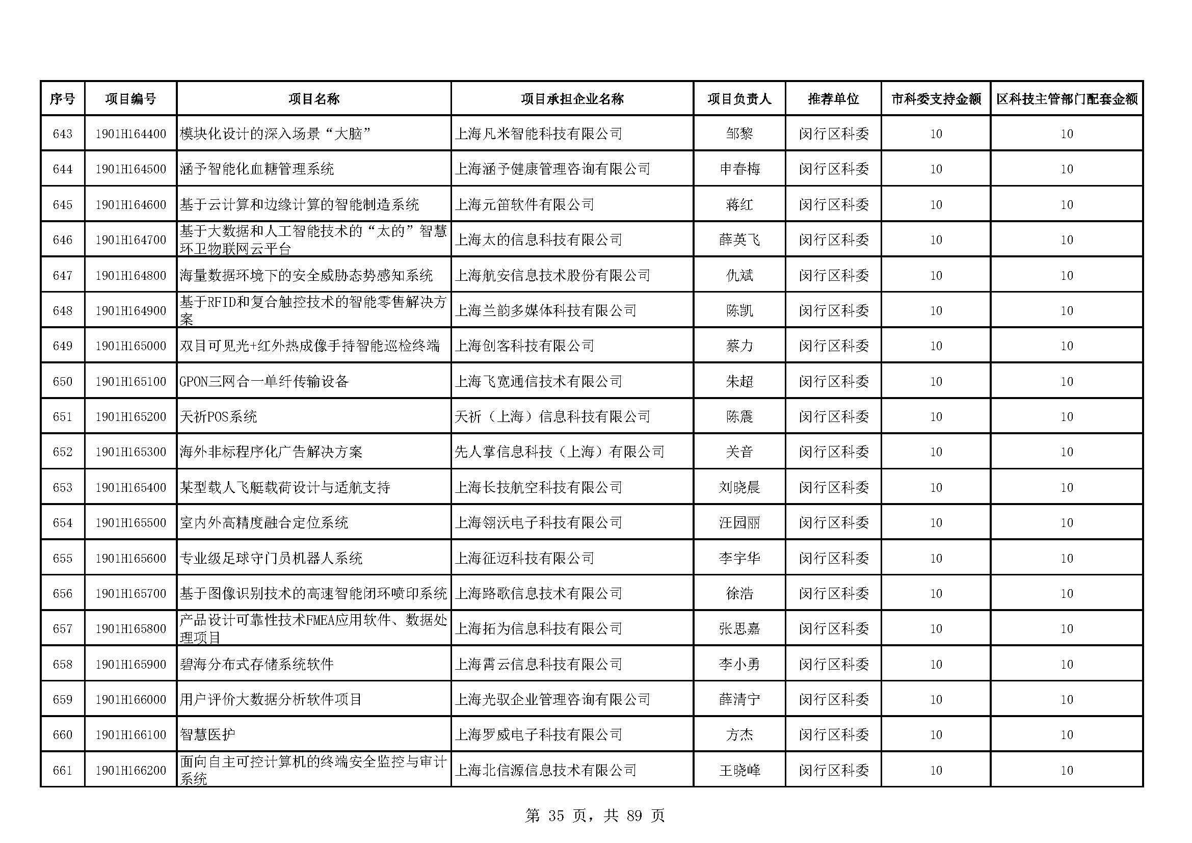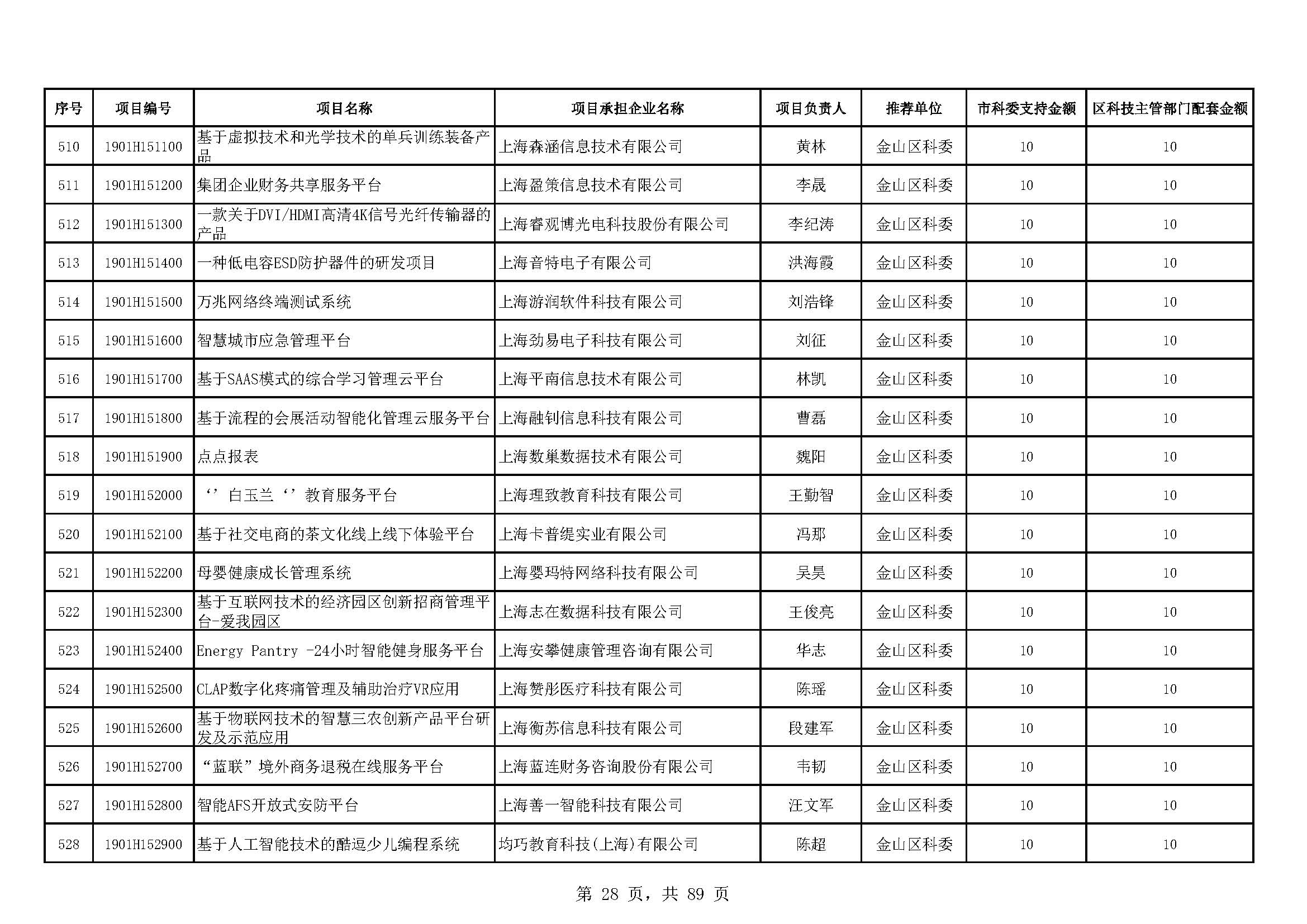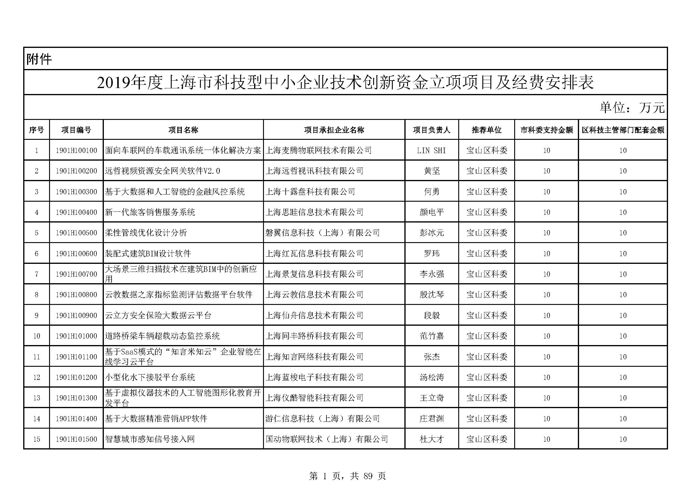 - 2019年度上海市科技型中小企業(yè)技術創(chuàng)新資金立項項目及經費安排表(第一批)