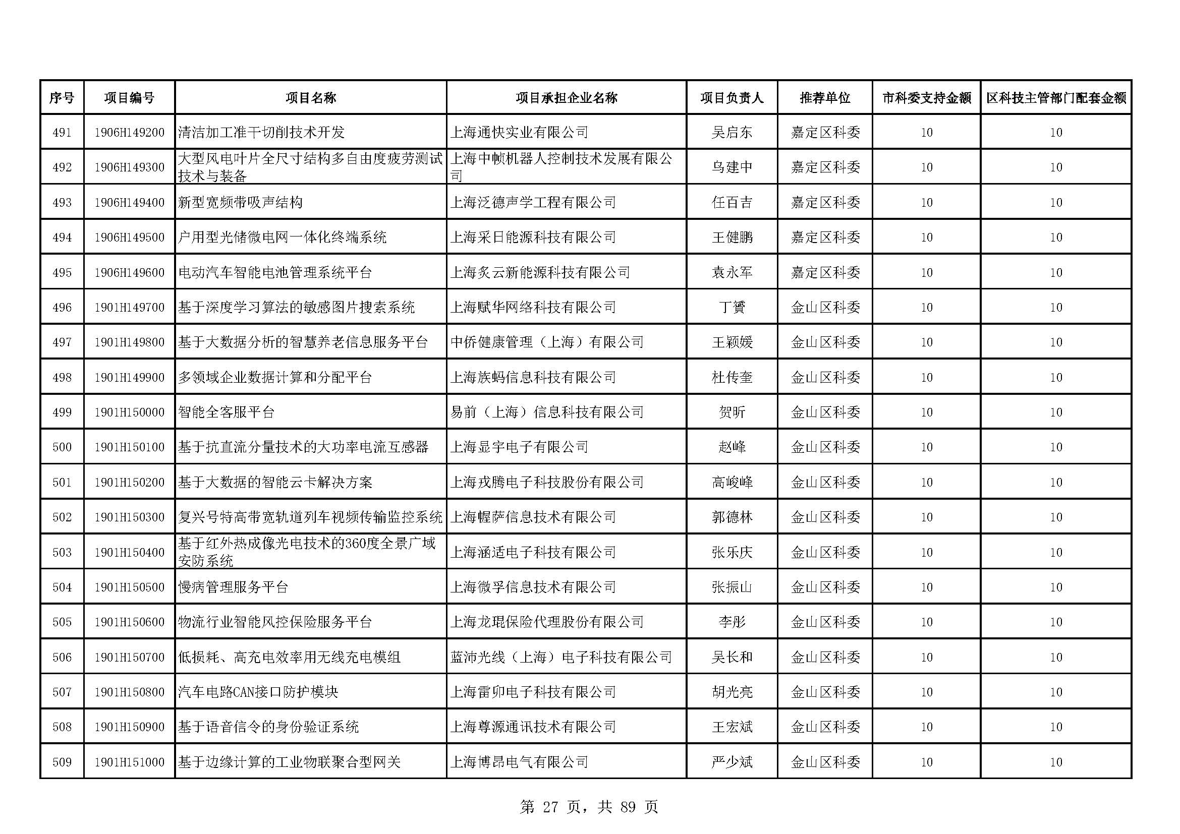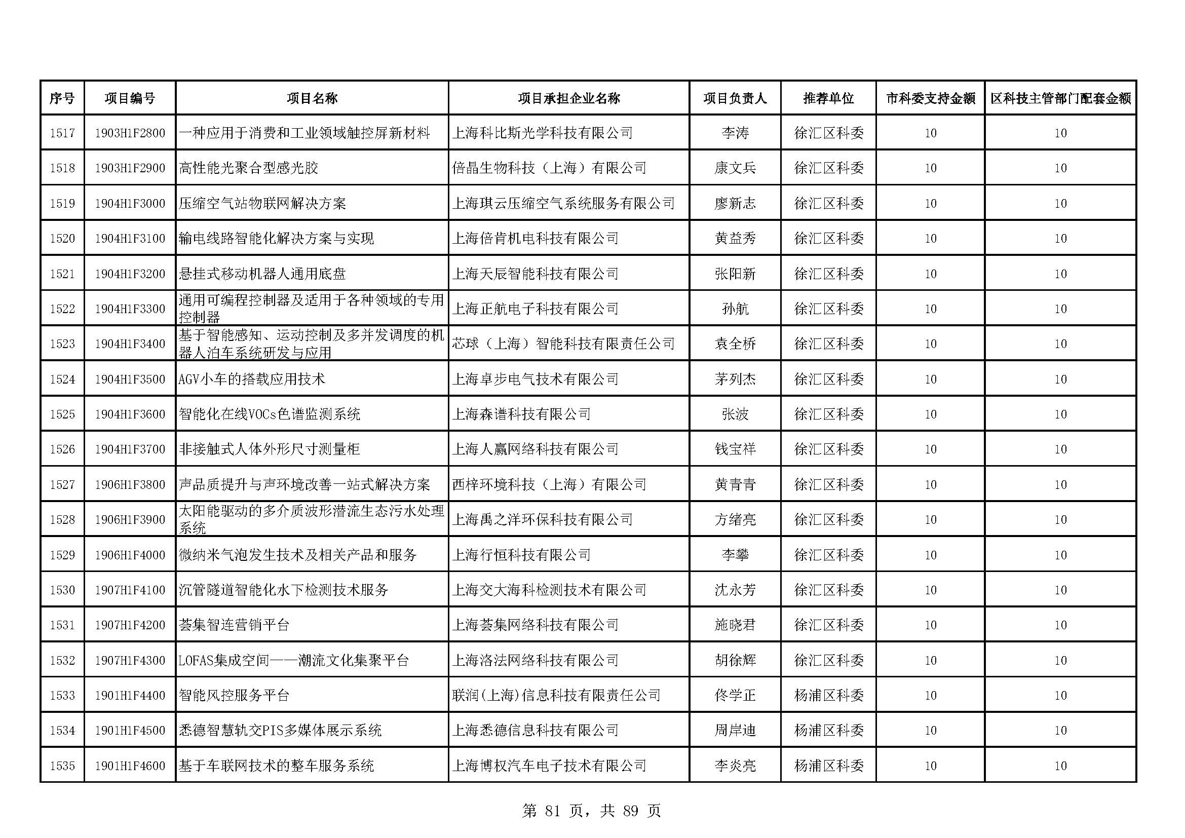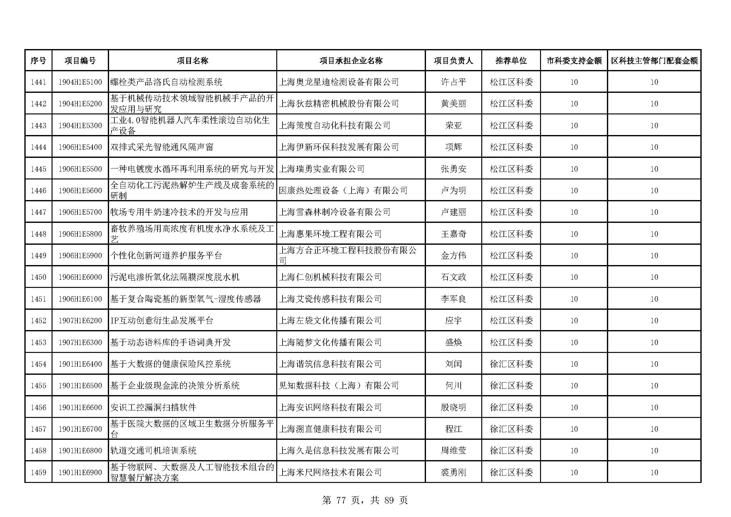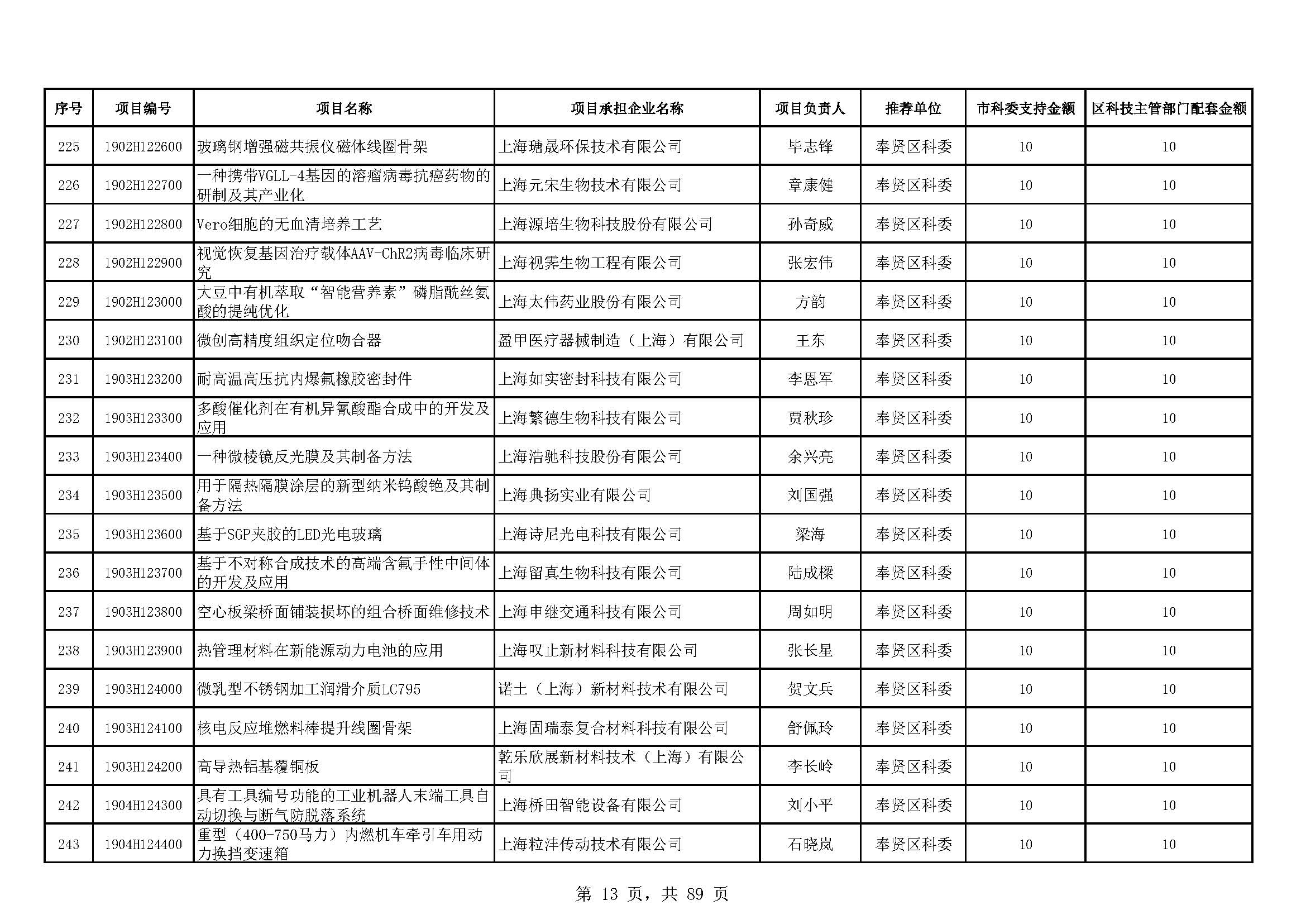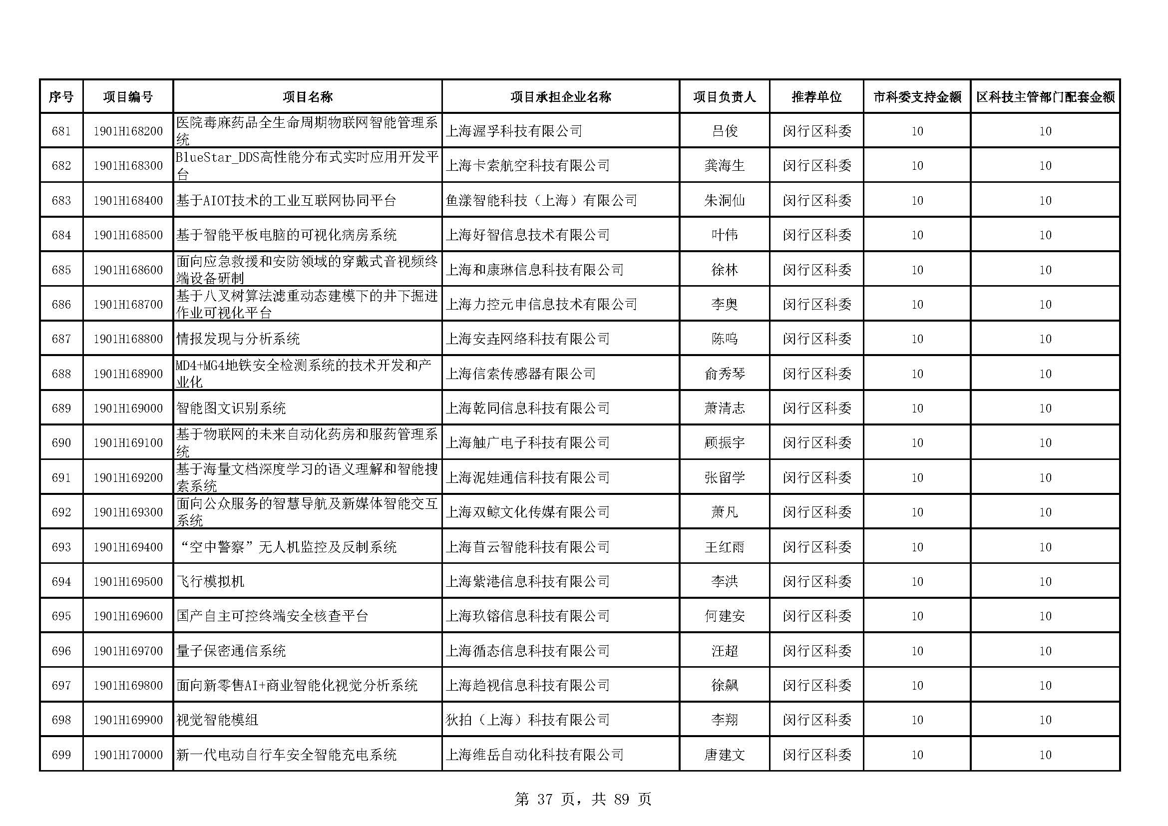 - 2019年度上海市科技型中小企業(yè)技術創(chuàng)新資金立項項目及經費安排表(第一批)