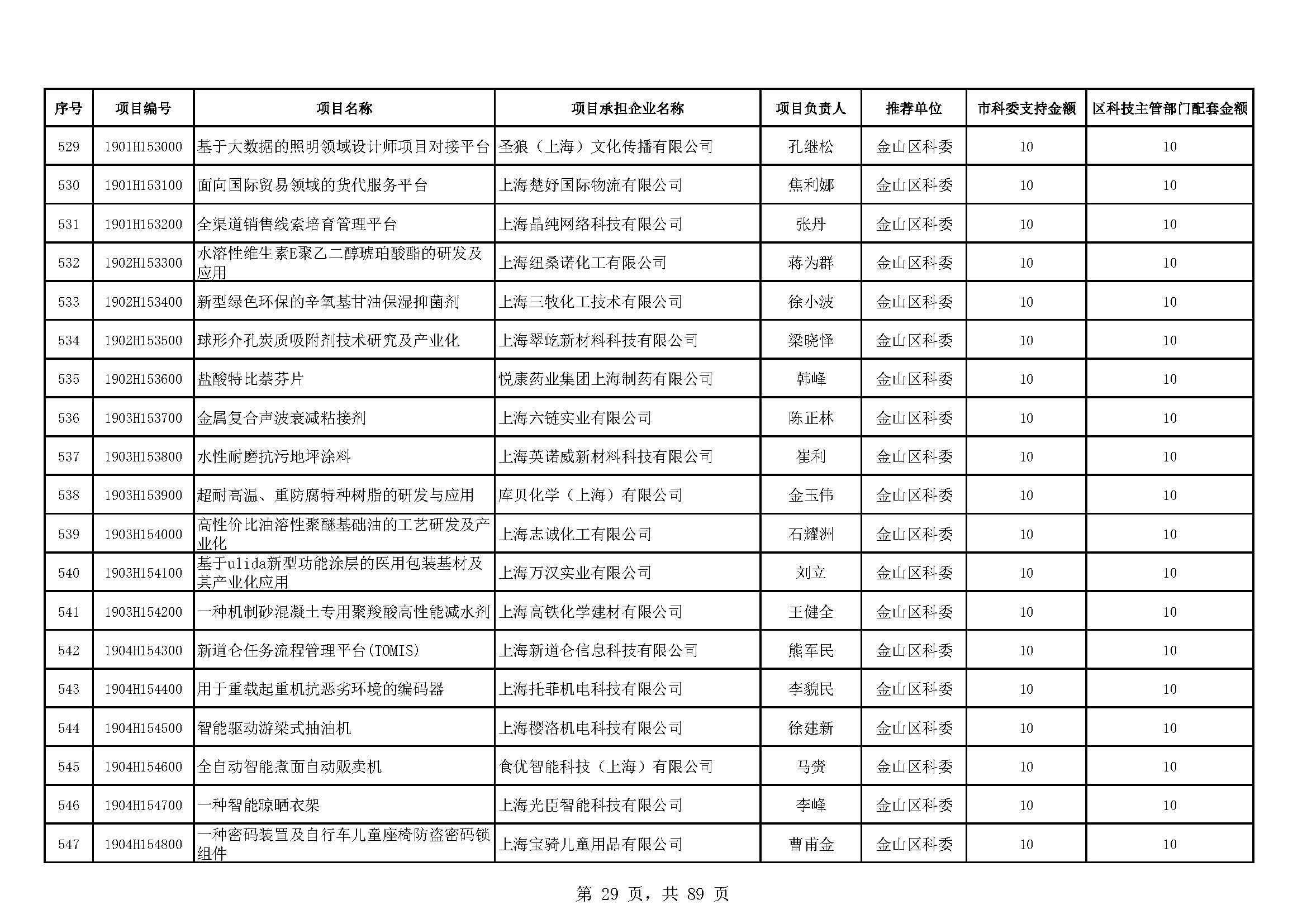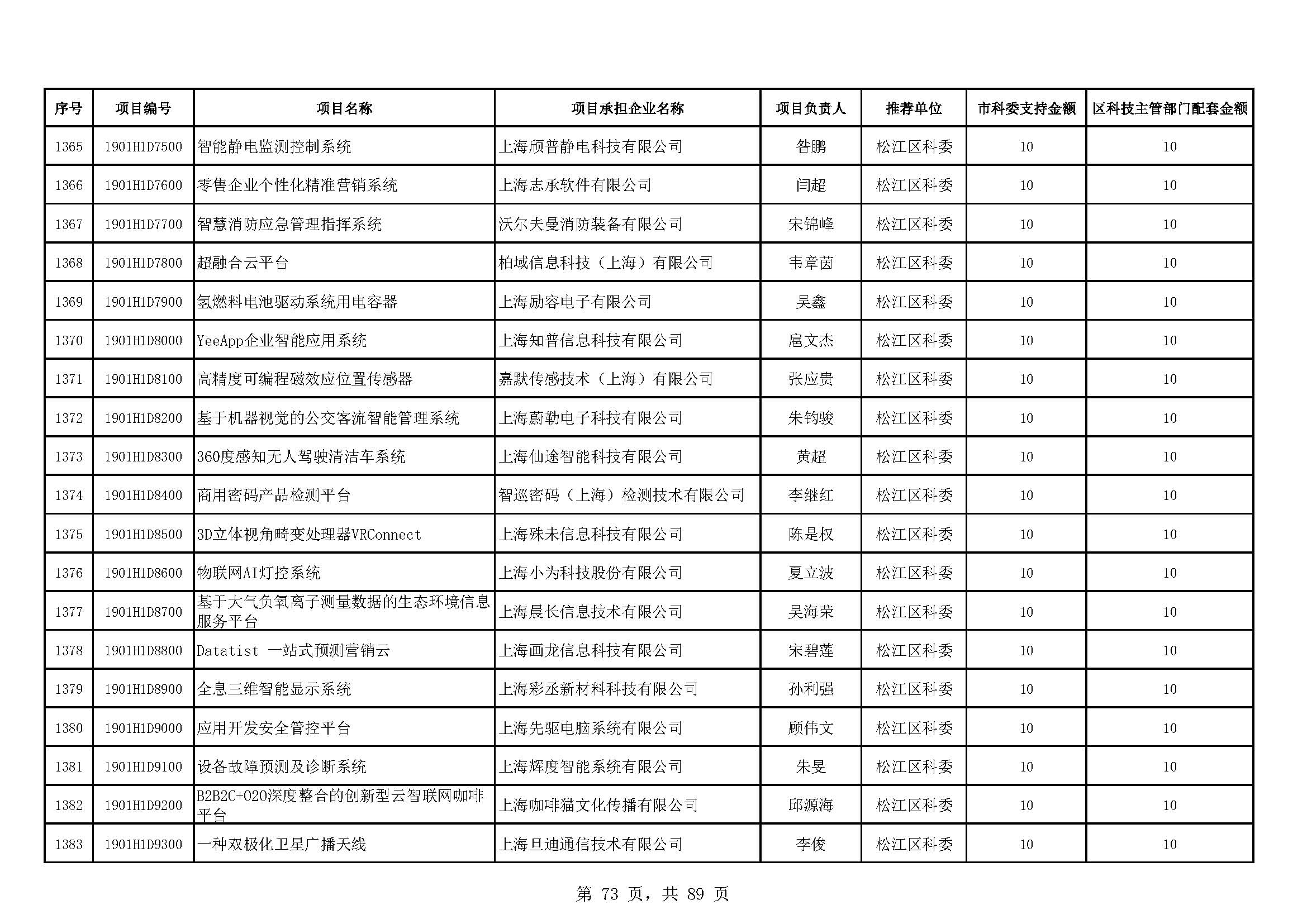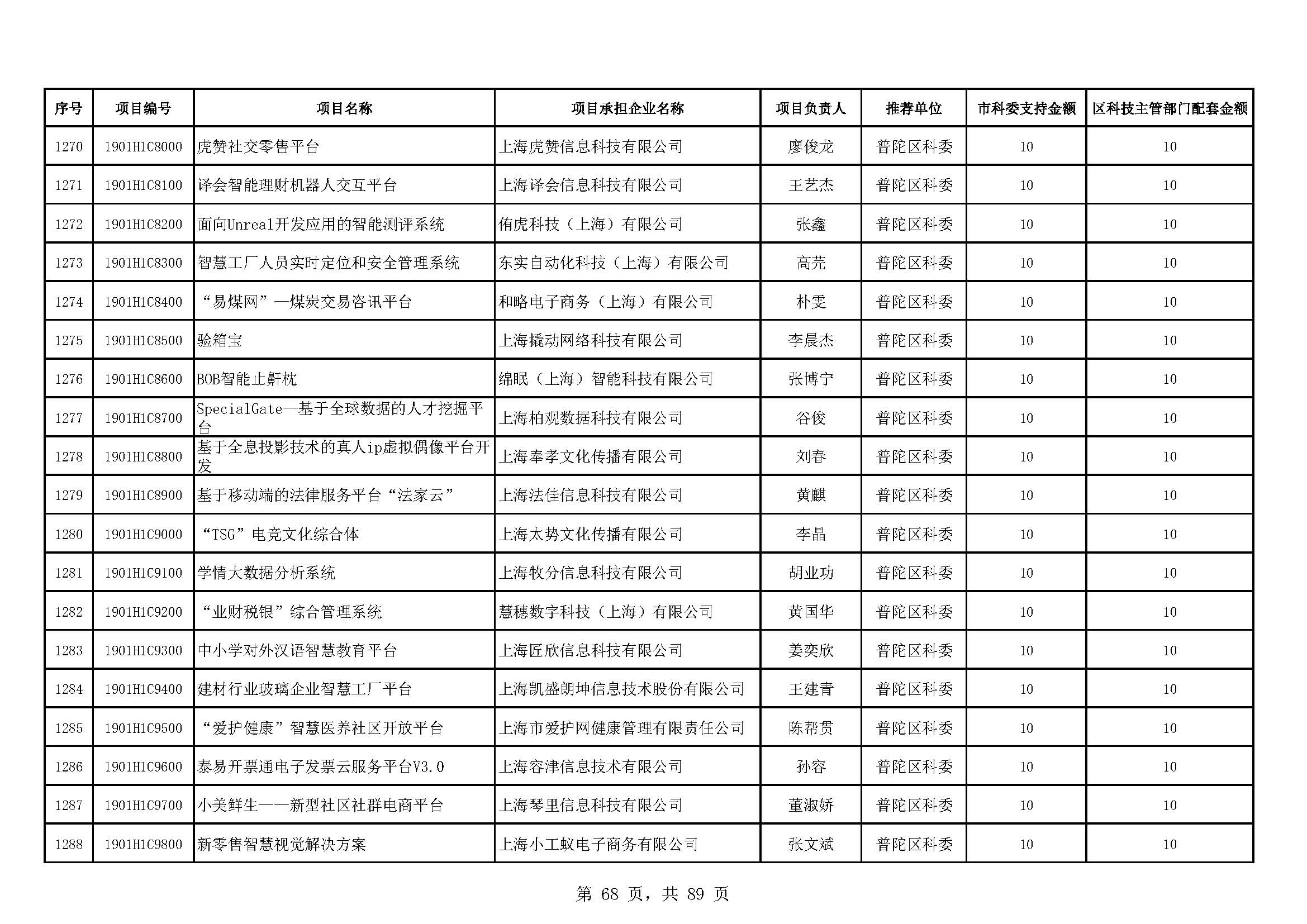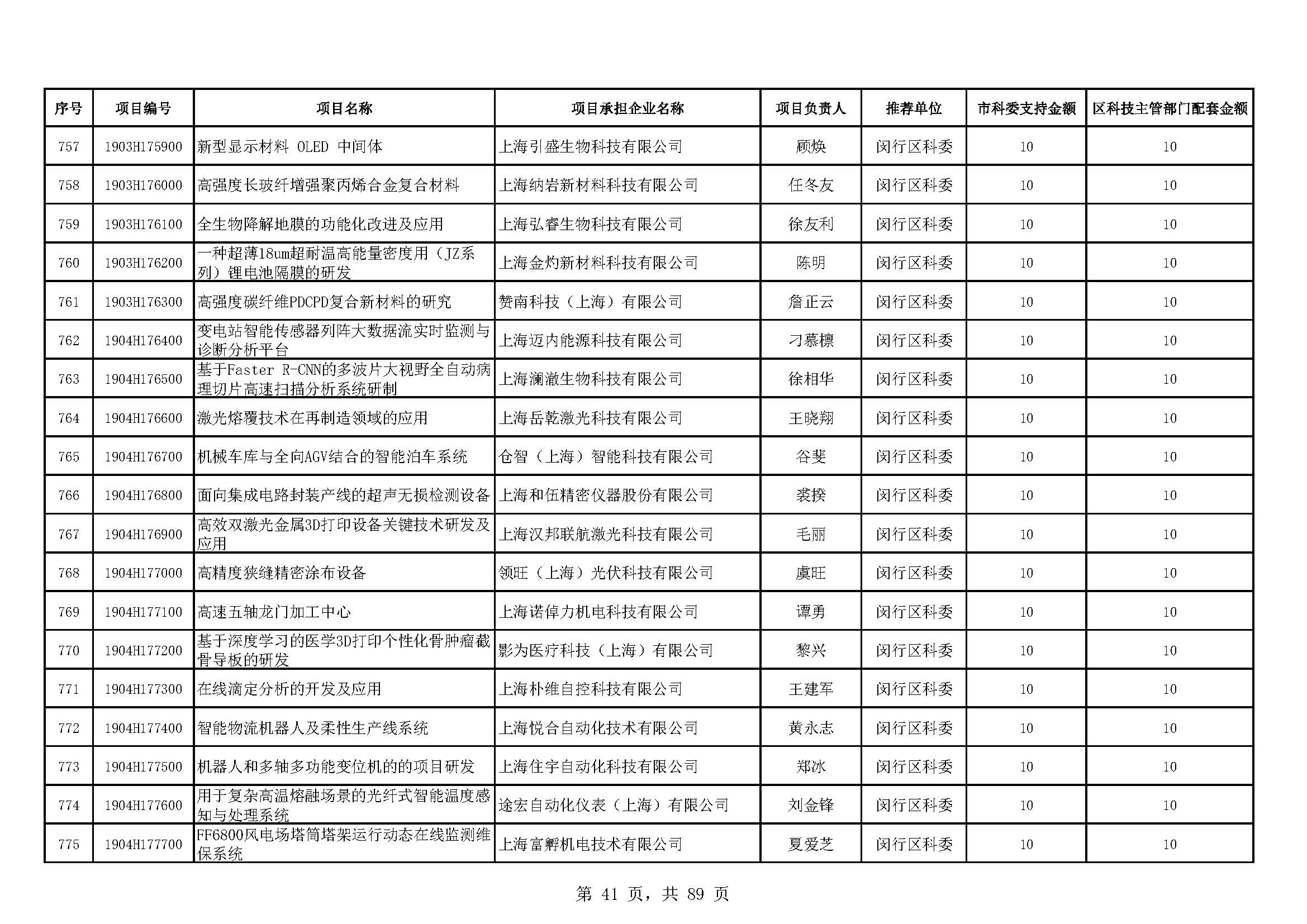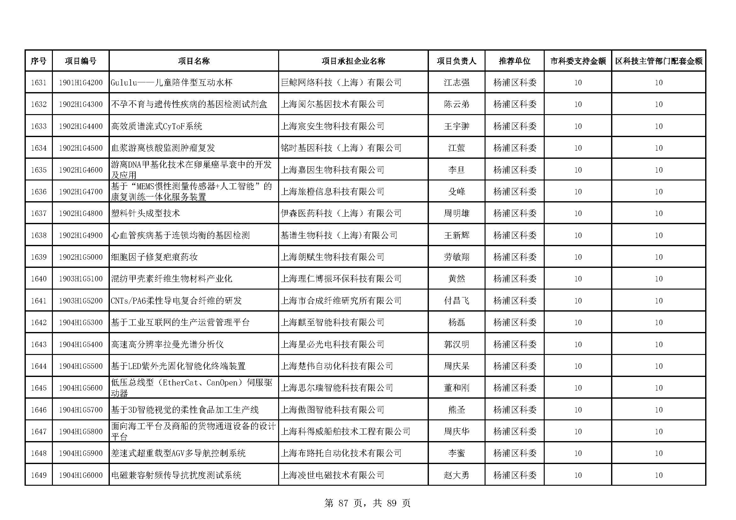 - 2019年度上海市科技型中小企業(yè)技術創(chuàng)新資金立項項目及經費安排表(第一批)