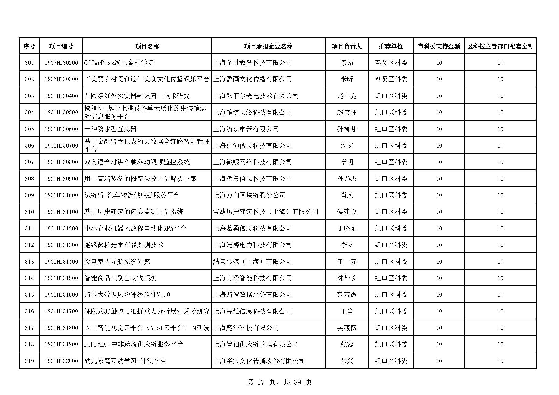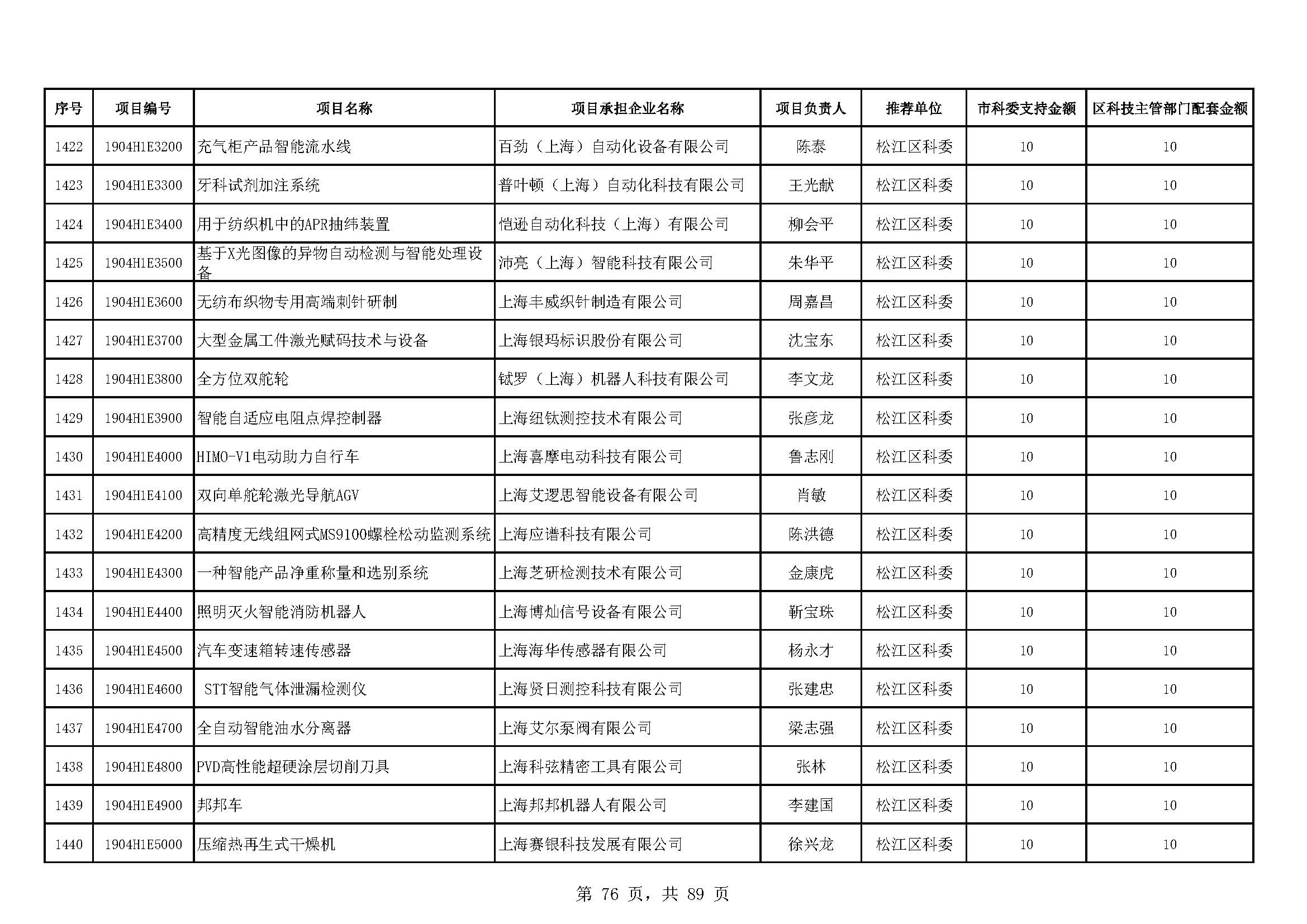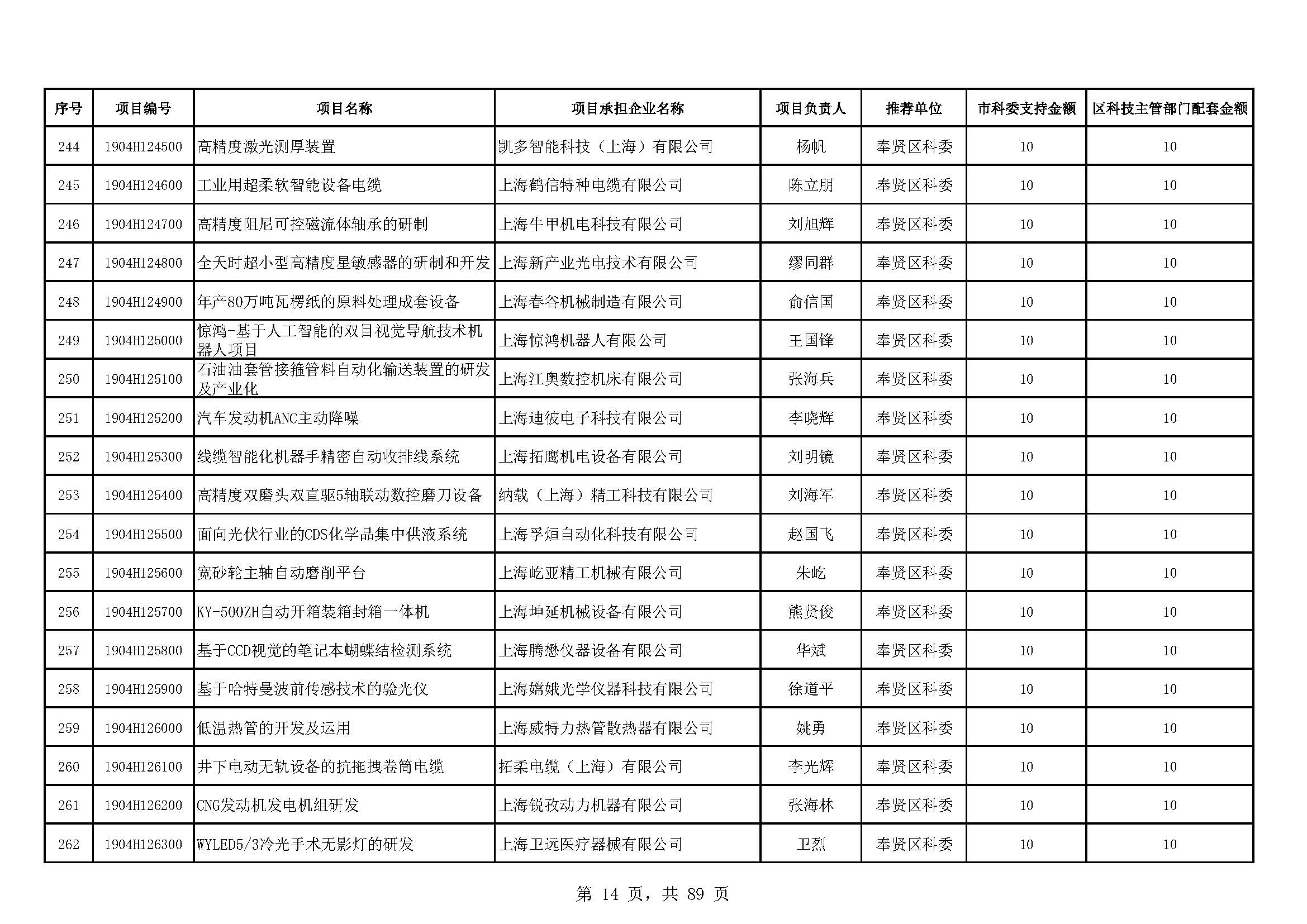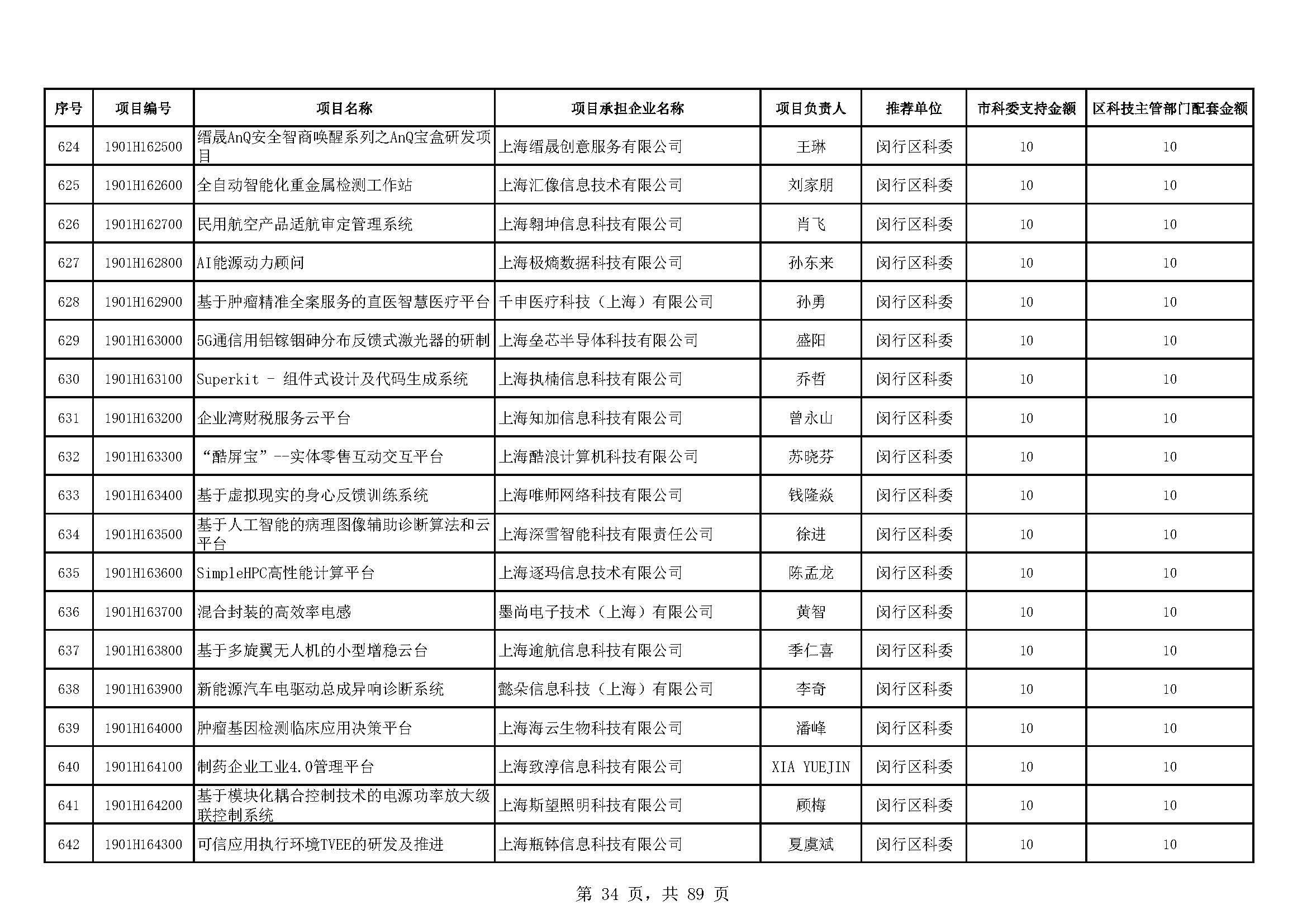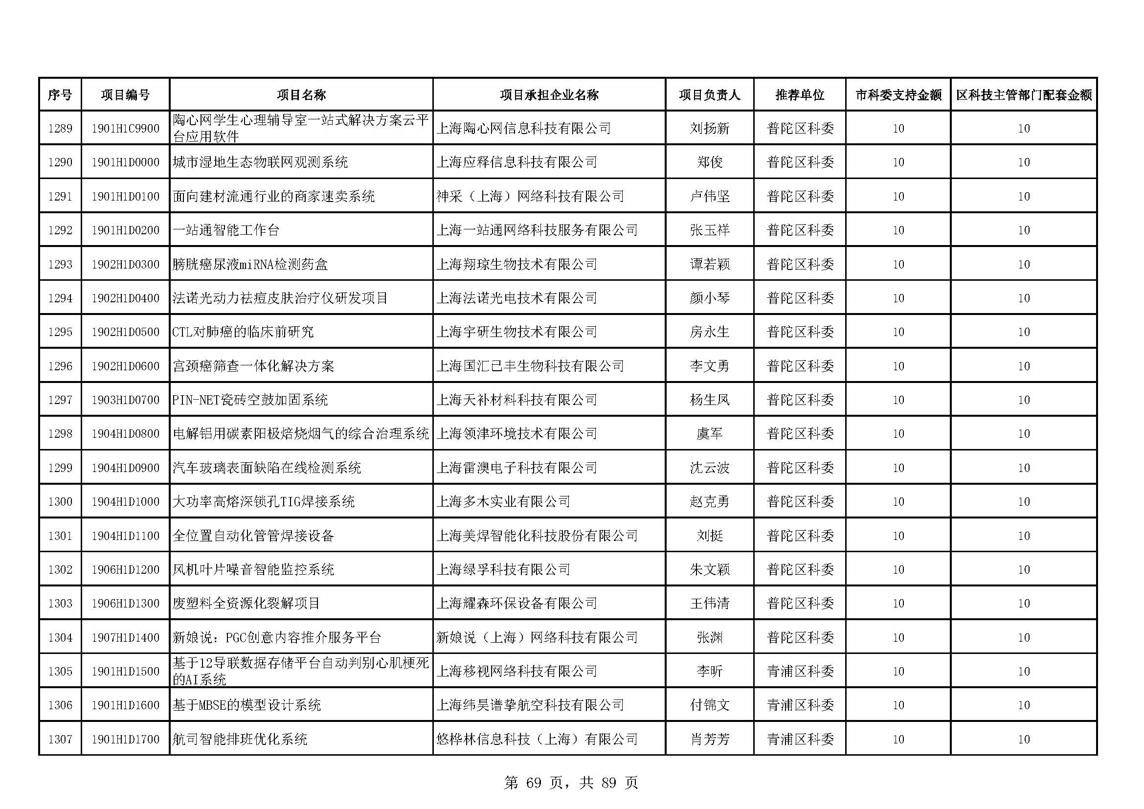 - 2019年度上海市科技型中小企業(yè)技術創(chuàng)新資金立項項目及經費安排表(第一批)