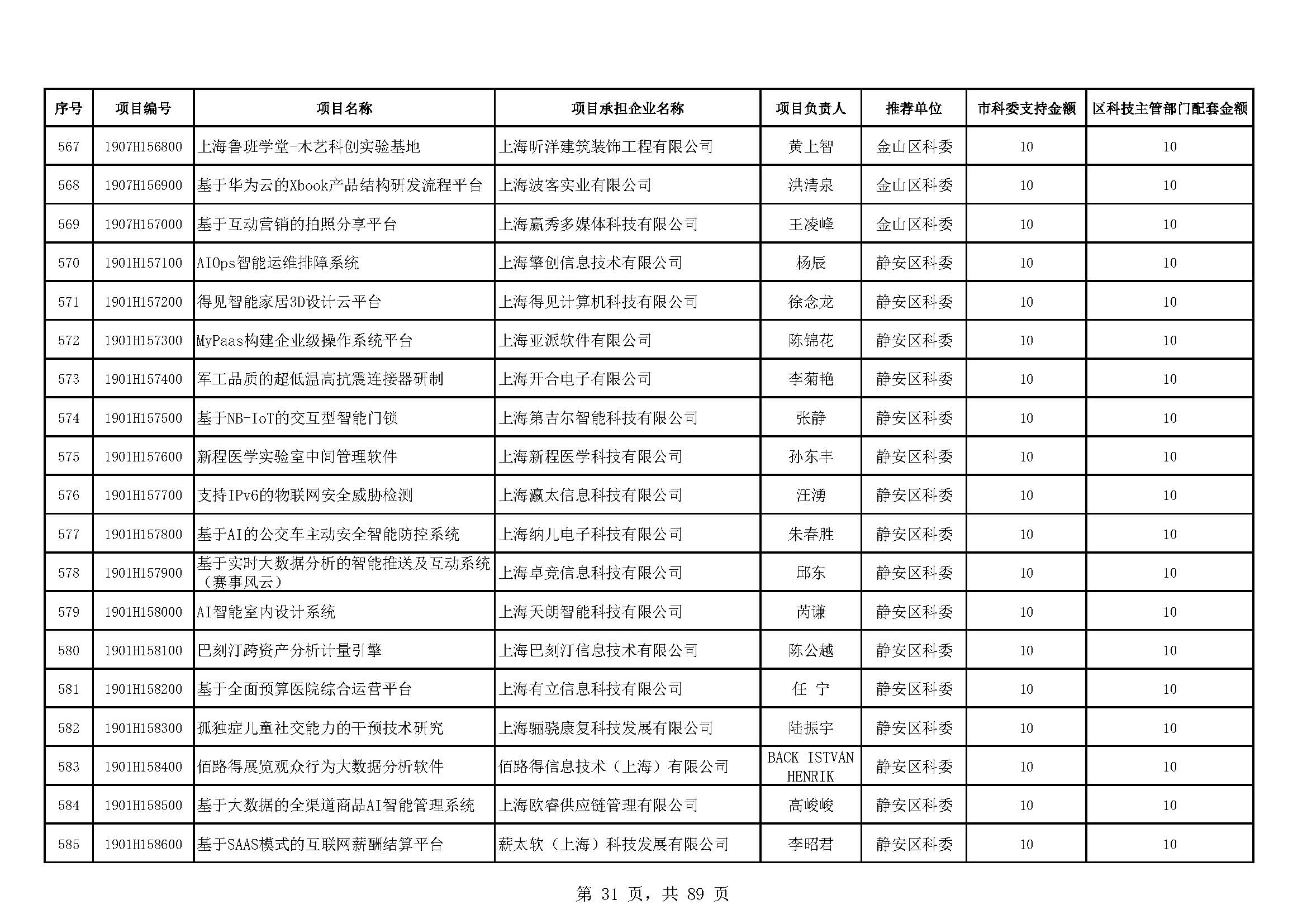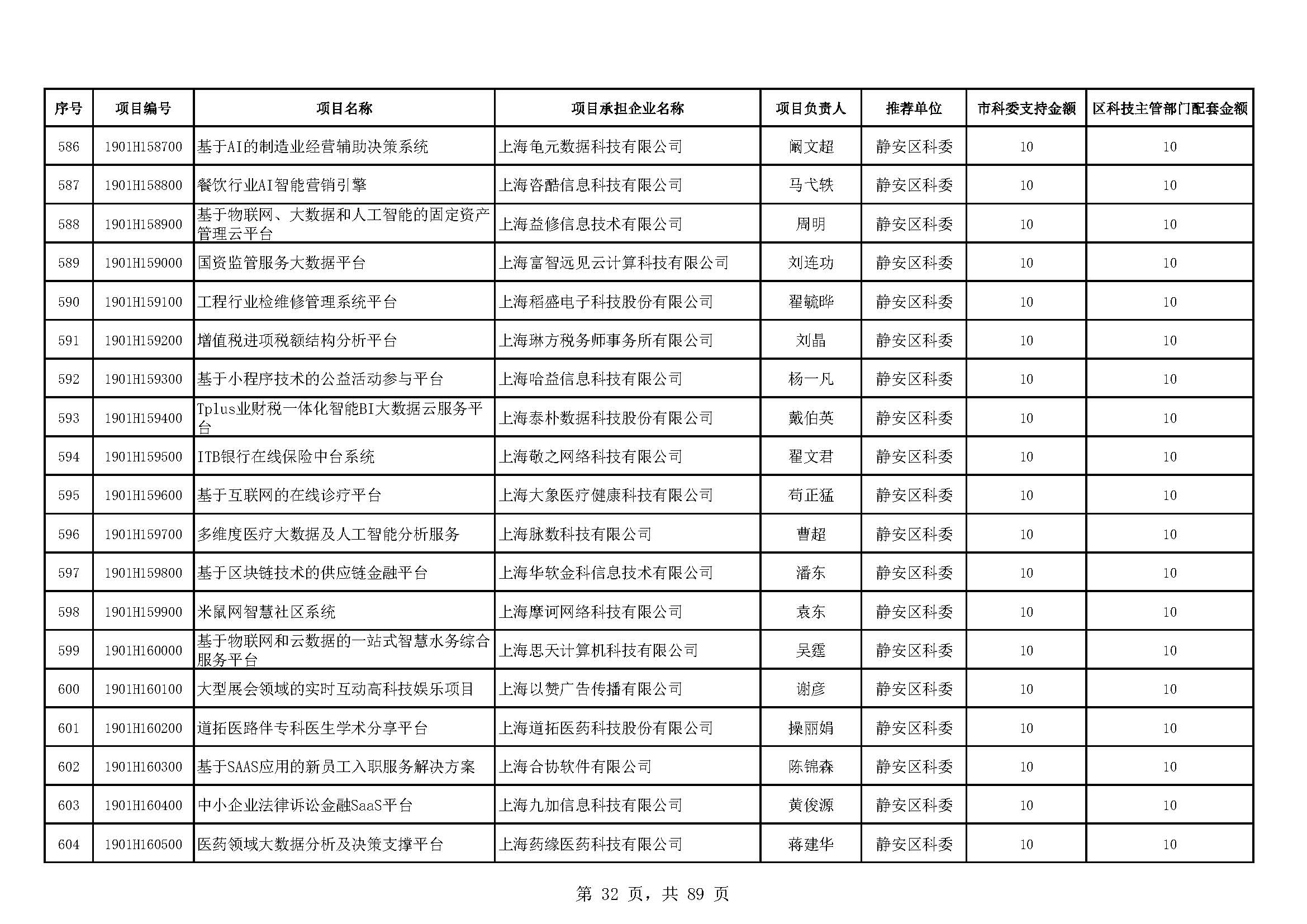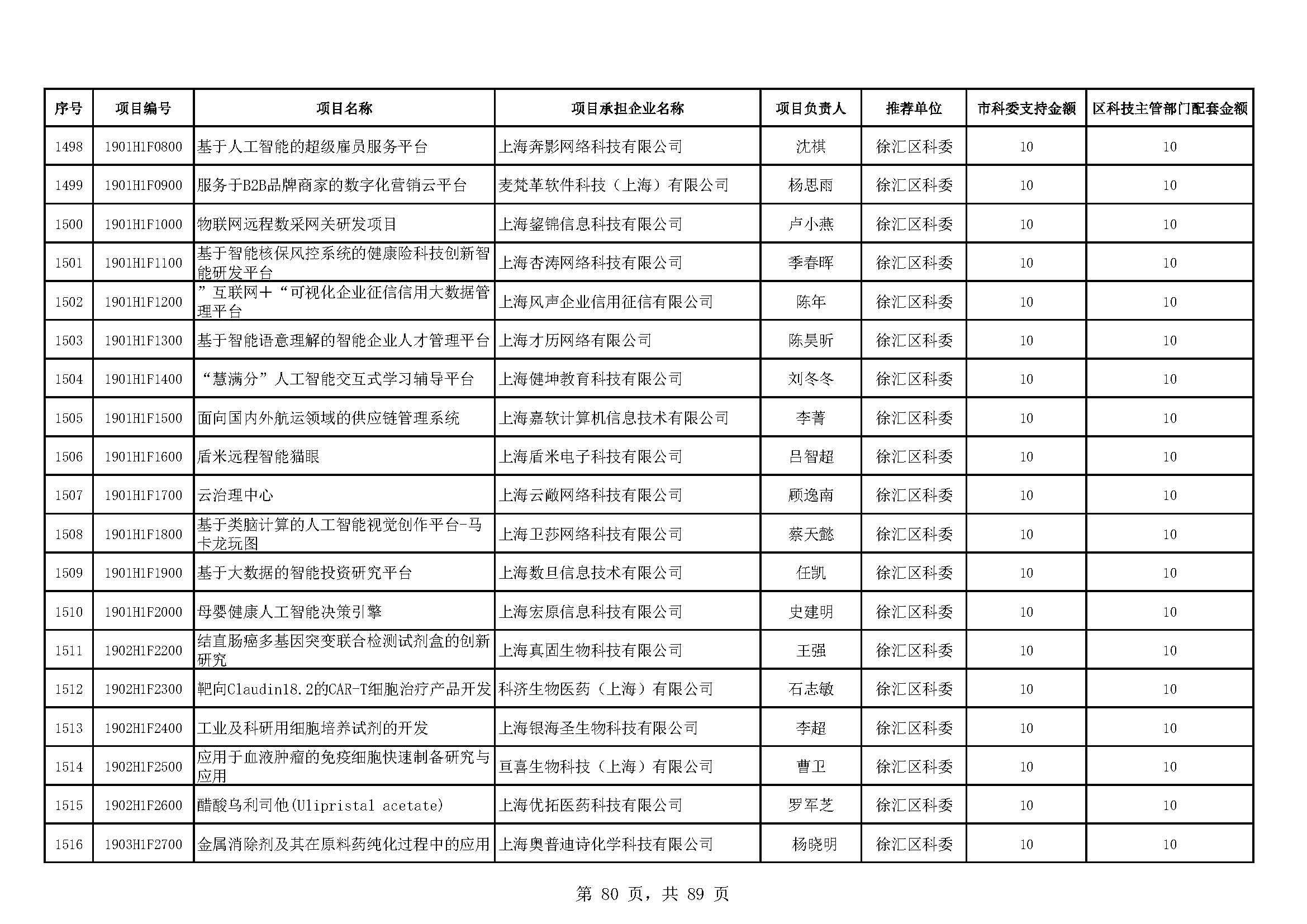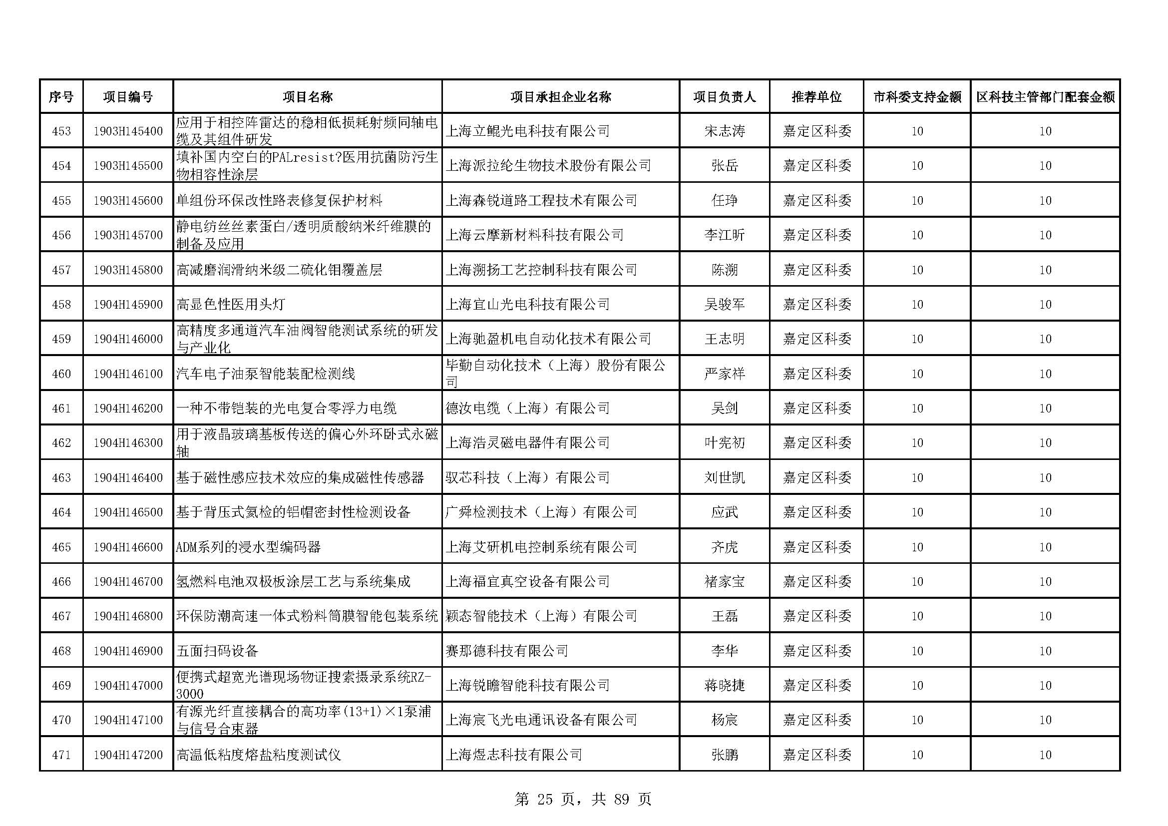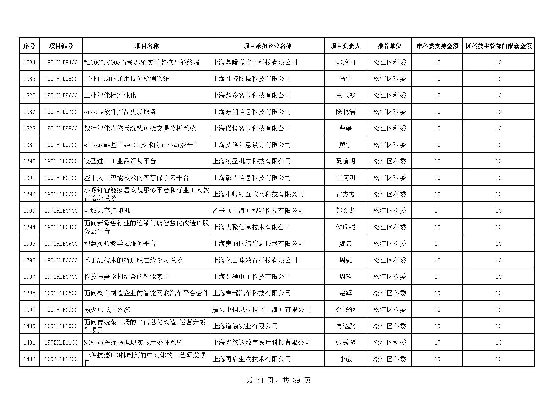 - 2019年度上海市科技型中小企業(yè)技術創(chuàng)新資金立項項目及經費安排表(第一批)