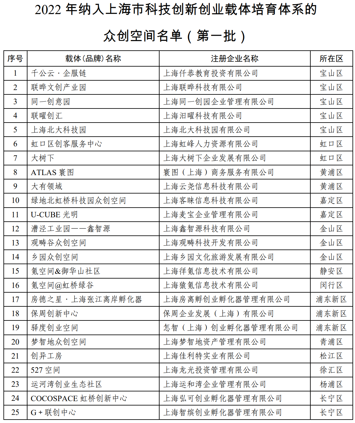 為深入實施創(chuàng)新驅(qū)動發(fā)展戰(zhàn)略,促進(jìn)本市創(chuàng)新創(chuàng)業(yè)載體升級發(fā)展,根據(jù)《上海市科技創(chuàng)新創(chuàng)業(yè)載體管理辦法(試行)》(滬科規(guī)〔2020〕7號,以下簡稱《管理辦法》)的相關(guān)精神和要求,經(jīng)自主申報、形式審查、專家評審和對外公示,形成2022年納入本市創(chuàng)新創(chuàng)業(yè)載體培育體系的科技企業(yè)孵化器、眾創(chuàng)空間等各類載體名單(第一批)。