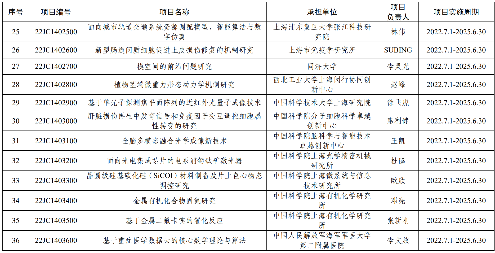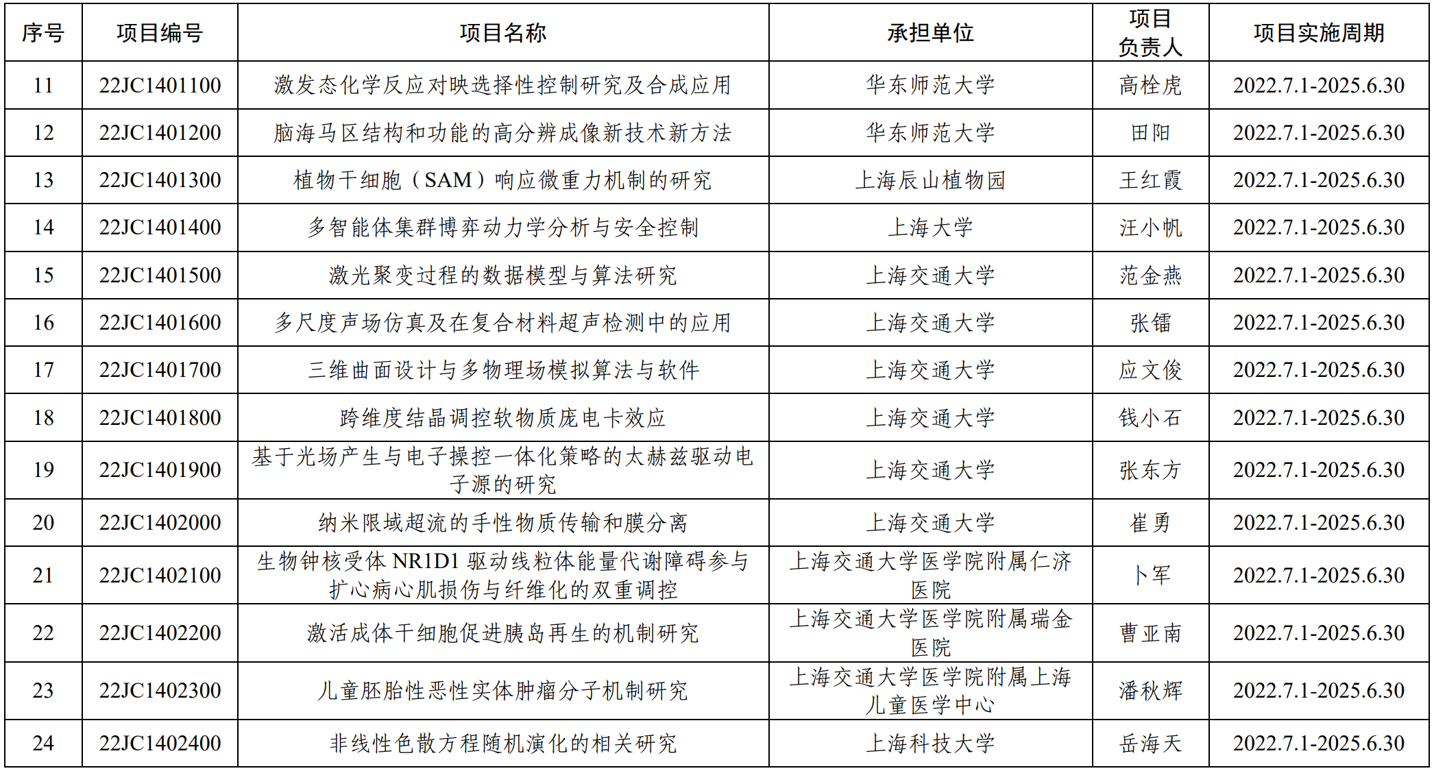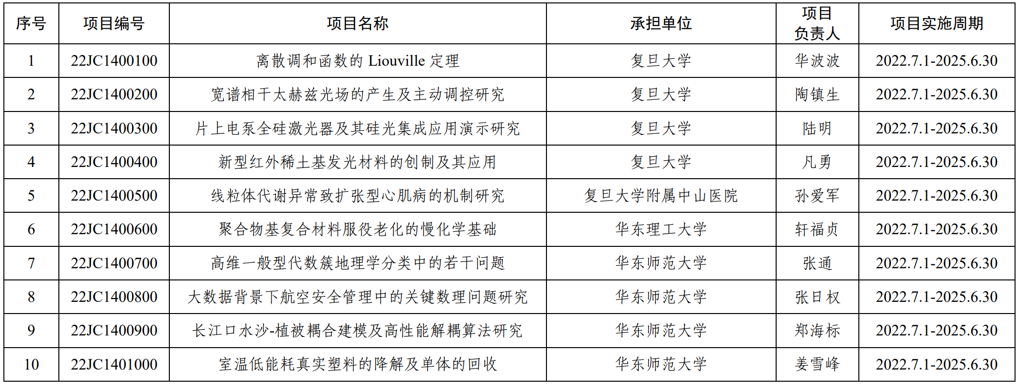 上海市2022年度“科技創(chuàng)新行動(dòng)計(jì)劃”基礎(chǔ)研究領(lǐng)域項(xiàng)目(第一批)立項(xiàng)的通知