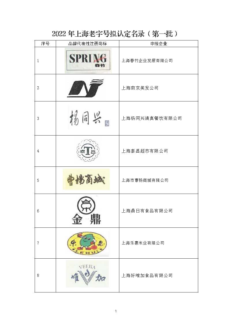 2022年上海老字號擬認定名錄(第一批)公示