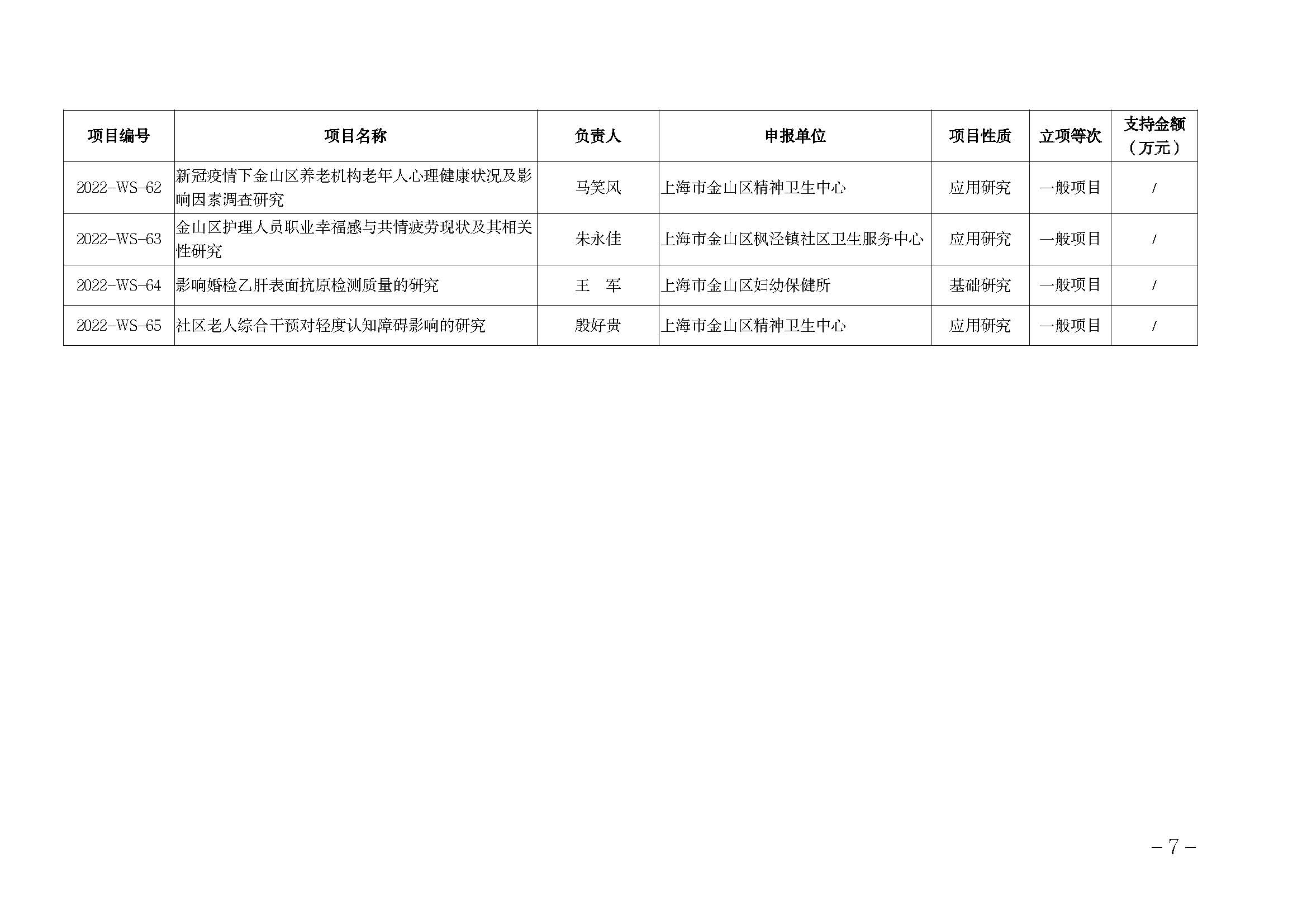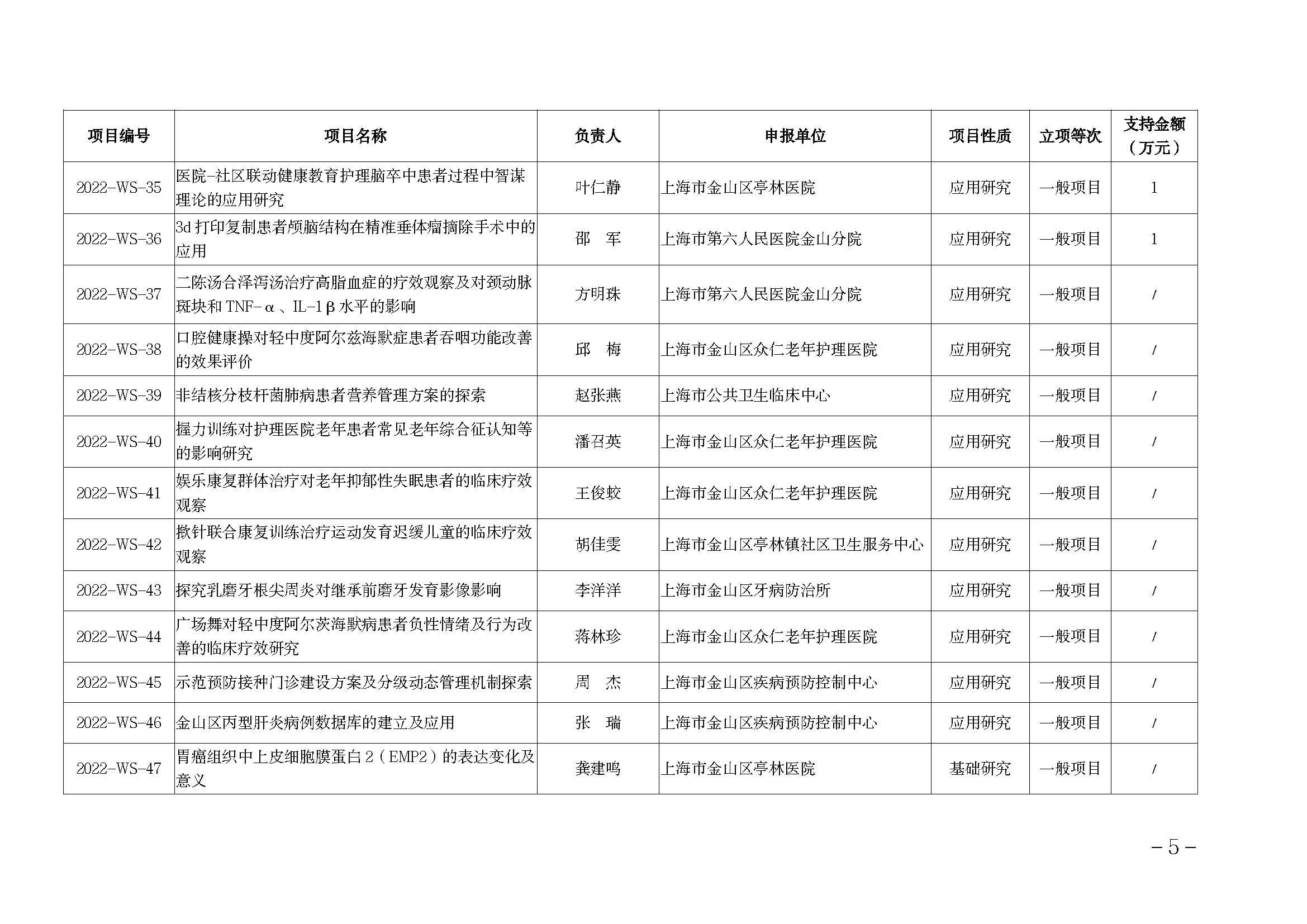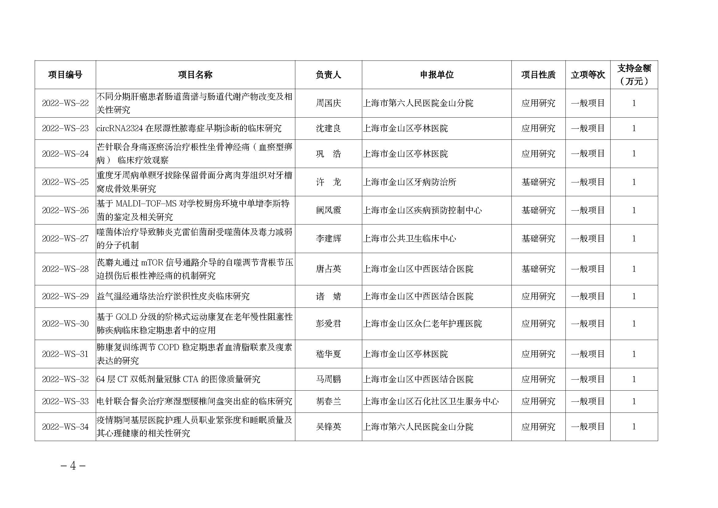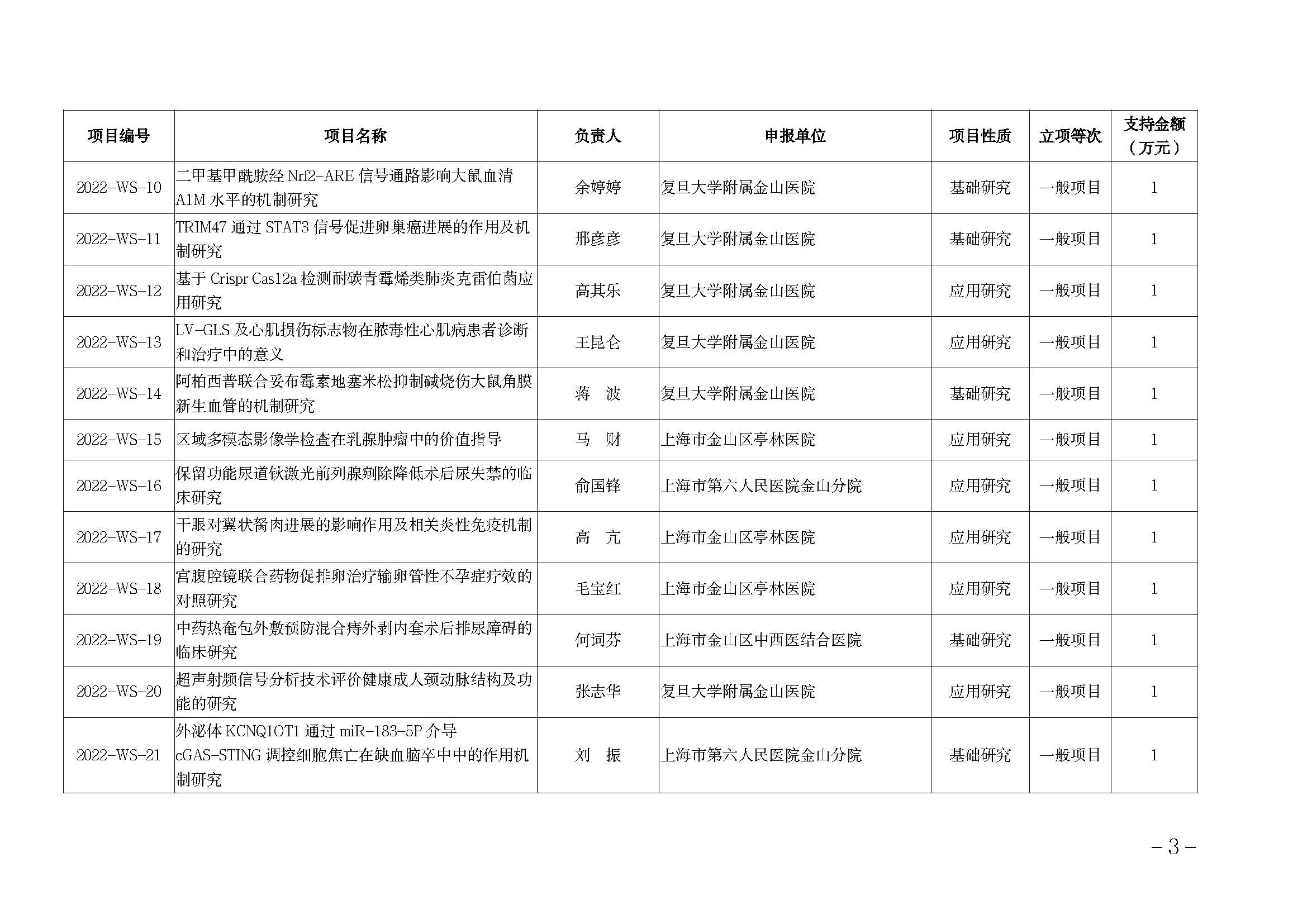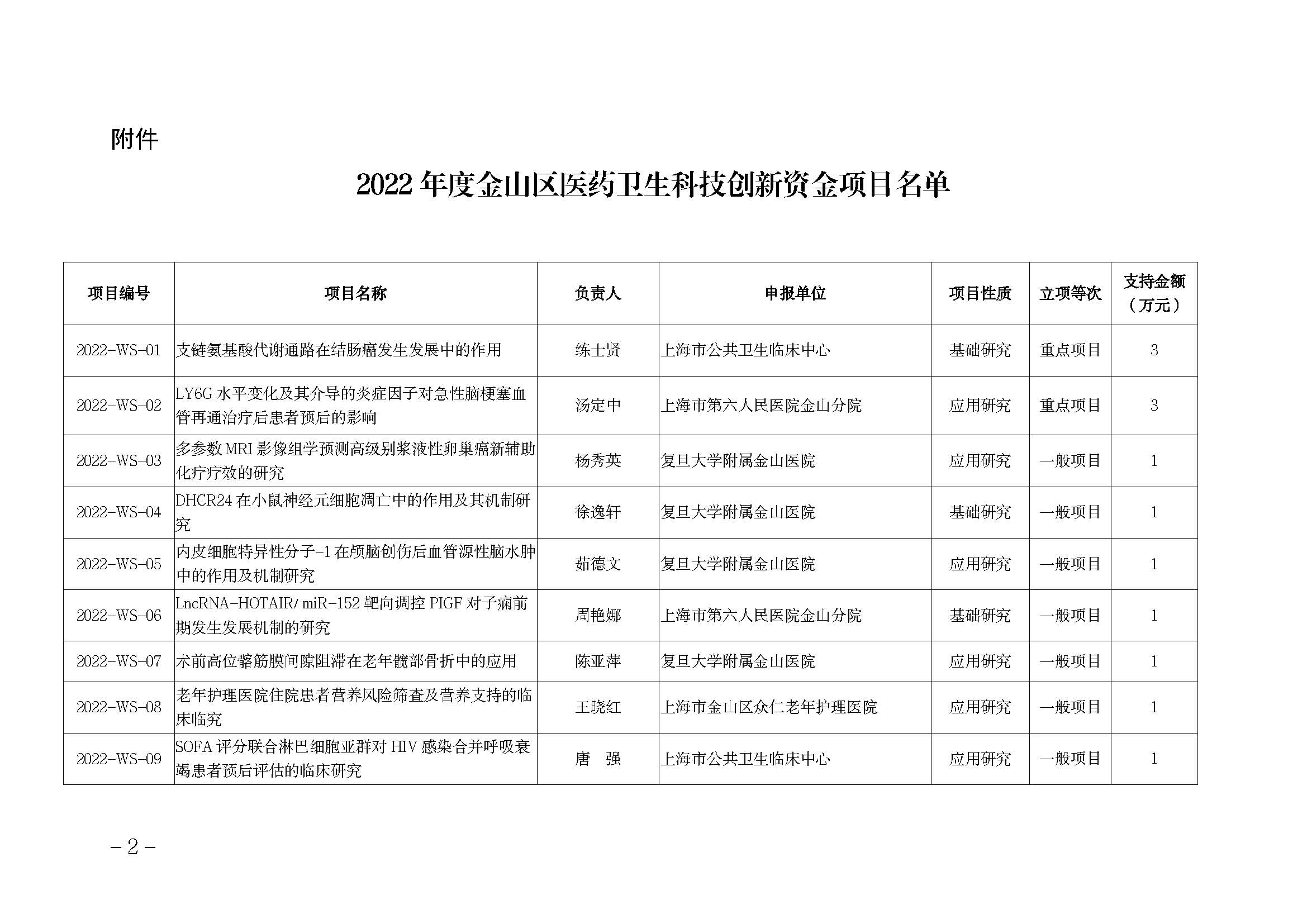 附件:2022年度金山區(qū)醫(yī)藥衛(wèi)生科技創(chuàng)新資金項(xiàng)目名單