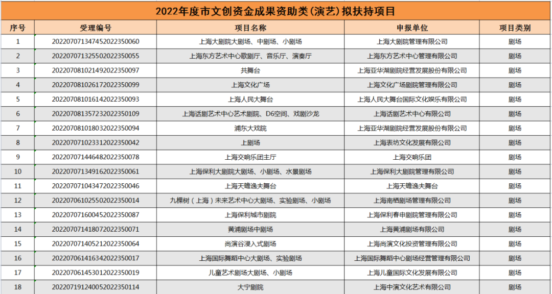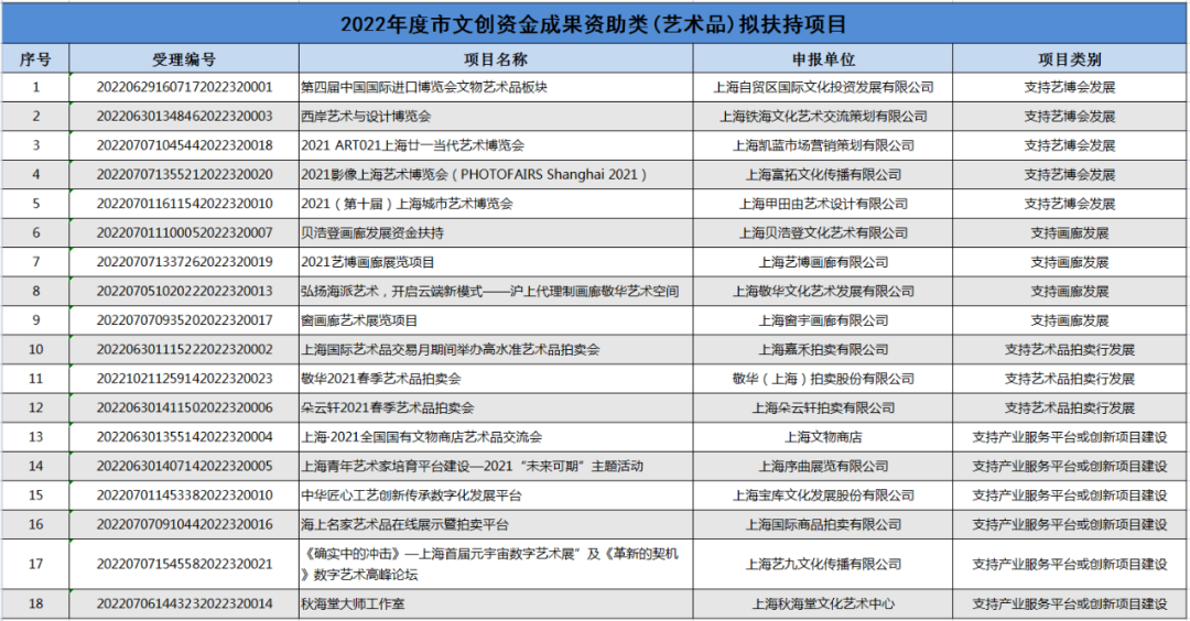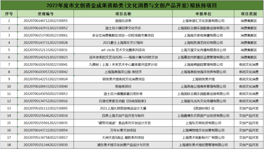 2022年上海市促進文化創(chuàng)意產(chǎn)業(yè)發(fā)展財政扶持資金擬支持項目(第二批)公示