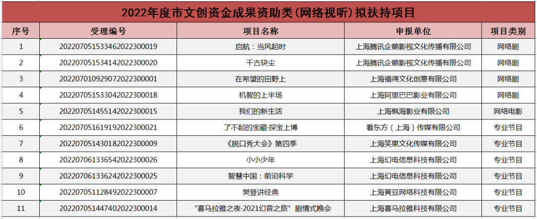附件2. 2022年度市文創(chuàng)資金成果資助類(網(wǎng)絡(luò)視聽)擬扶持項目;