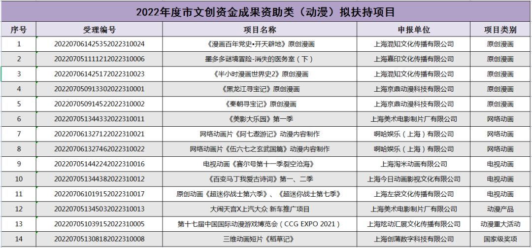 附件5. 2022年度市文創(chuàng)資金成果資助類(動漫)擬扶持項目;