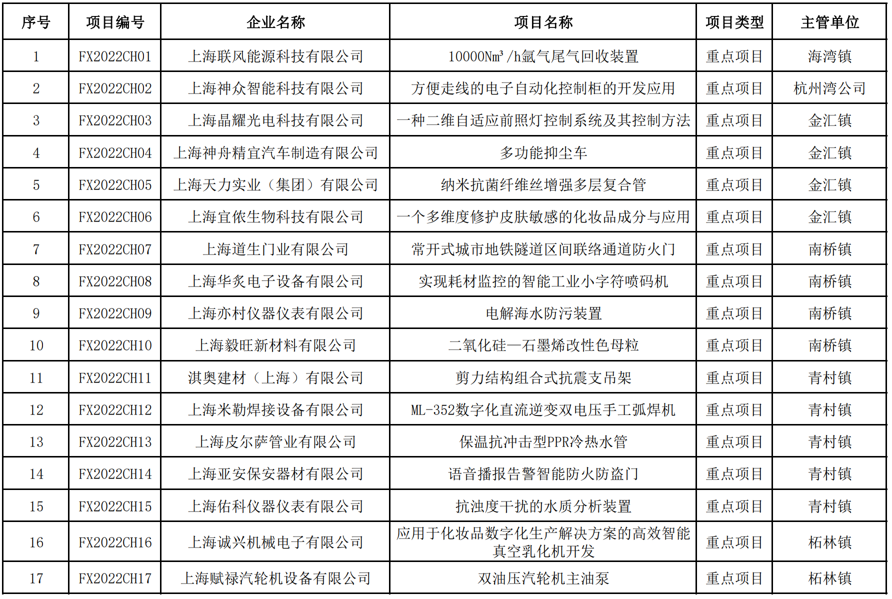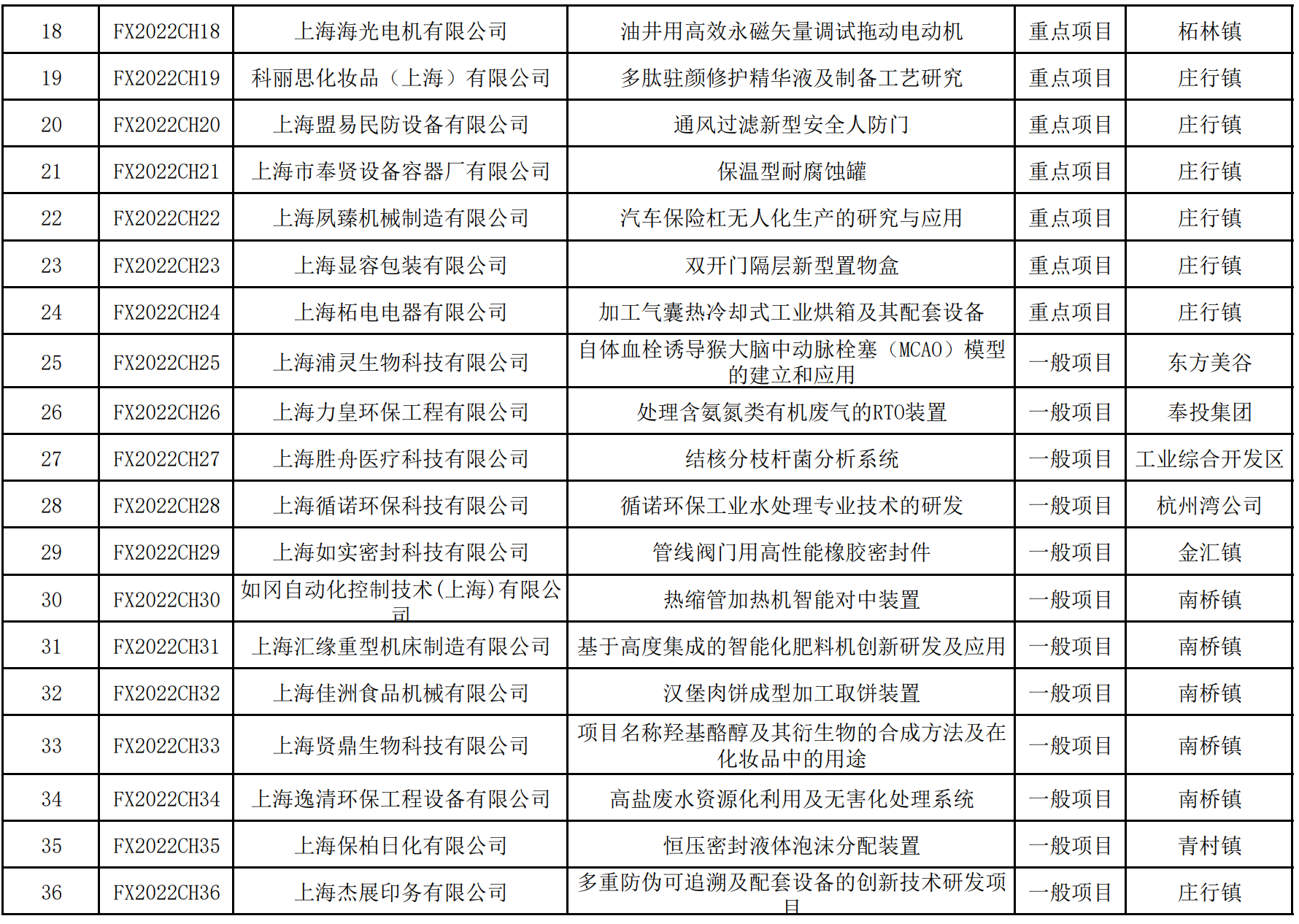 附件:2022年度奉賢區(qū)科技型中小企業(yè)技術(shù)創(chuàng)新資金項(xiàng)目擬立項(xiàng)名單
