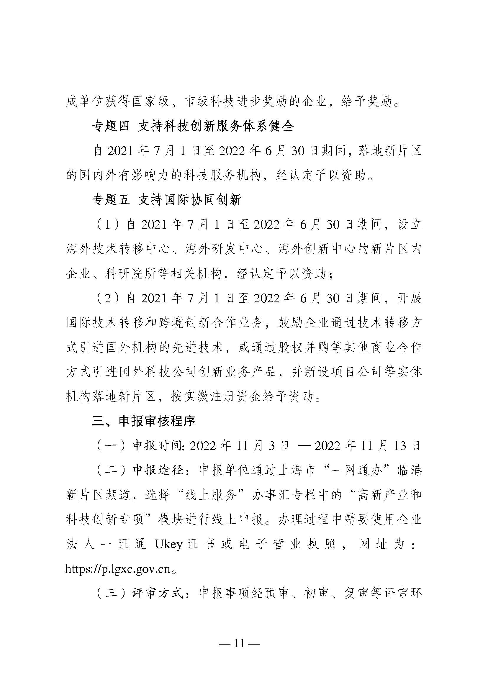 2022年上海臨港新片區(qū)高新產(chǎn)業(yè)和科技創(chuàng)新若干支持事項的通知
