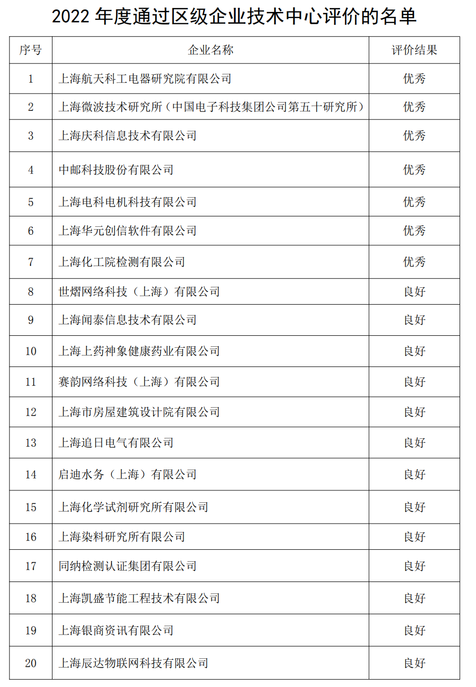 普陀區(qū)區(qū)級(jí)企業(yè)技術(shù)中心2022年度評(píng)價(jià)結(jié)果以及區(qū)級(jí)企業(yè)技術(shù)中心更名的通知