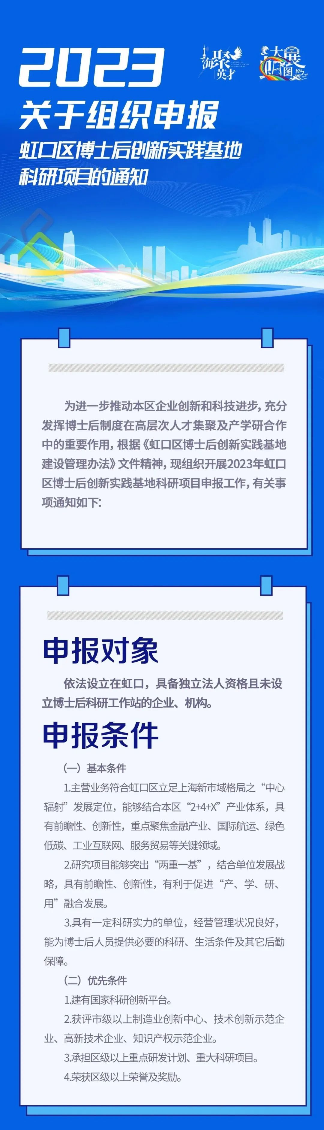 2023關于組織申報虹口區(qū)博士后創(chuàng)新實踐基地科研項目的通知