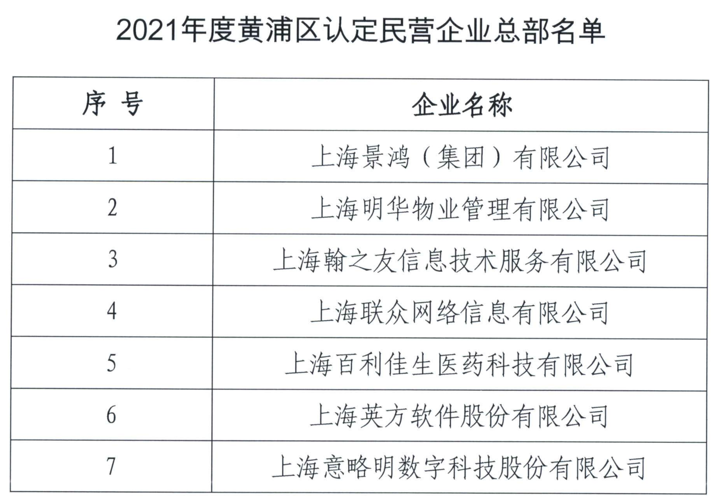 關(guān)于發(fā)布2021-2022年度黃浦區(qū)區(qū)級民營企業(yè)總部名單的通知