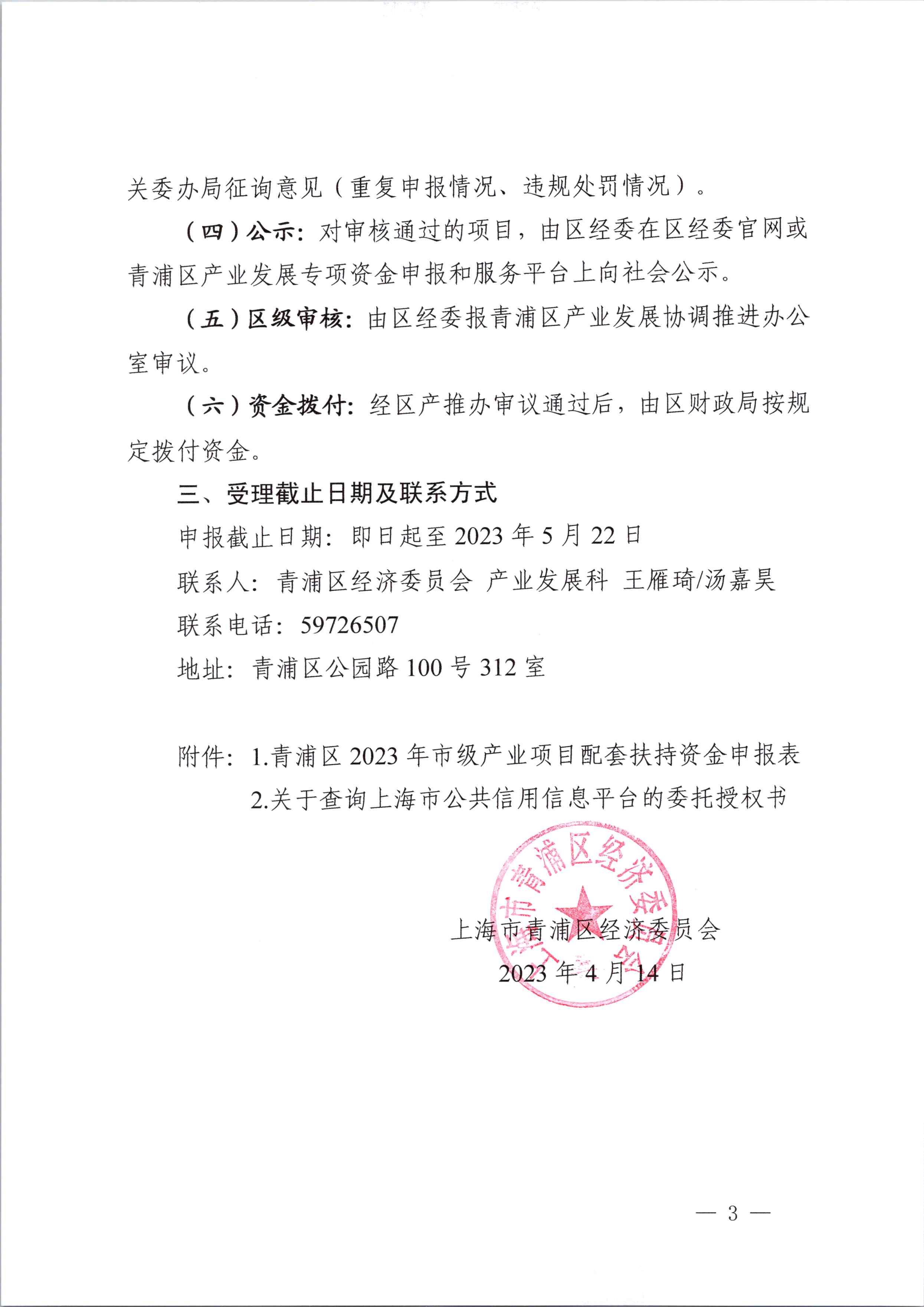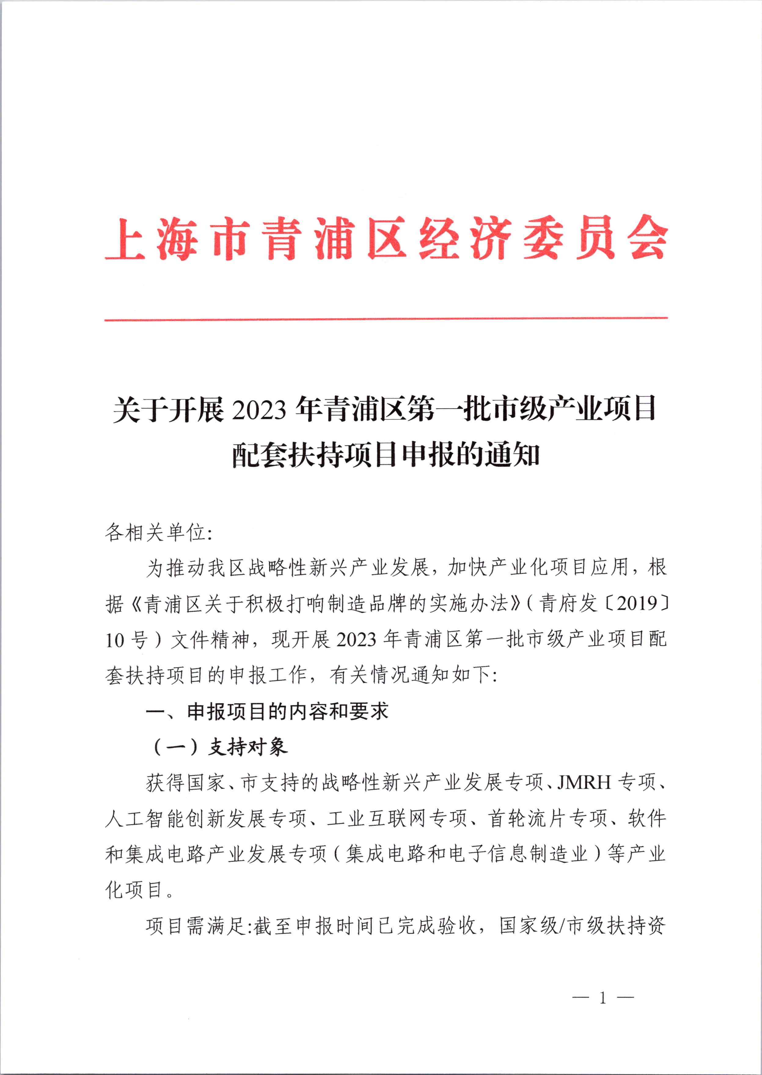 關(guān)于開(kāi)展2023年青浦區(qū)第一批市級(jí)產(chǎn)業(yè)項(xiàng)目配套扶持項(xiàng)目申報(bào)的通知