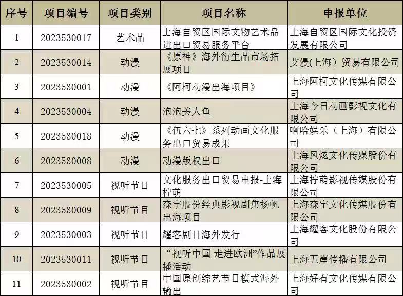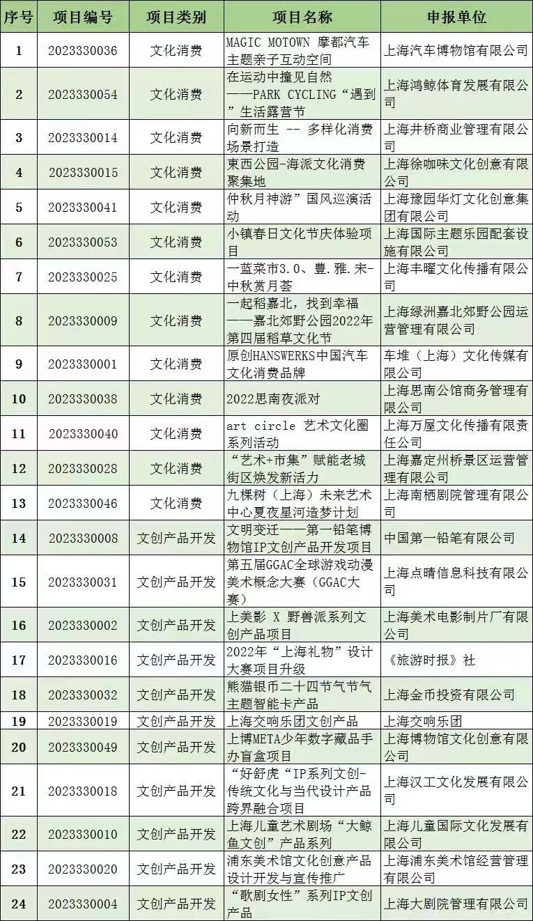 2023年上海市促進(jìn)文化創(chuàng)意產(chǎn)業(yè)發(fā)展財(cái)政扶持資金擬支持項(xiàng)目(第二批)公示