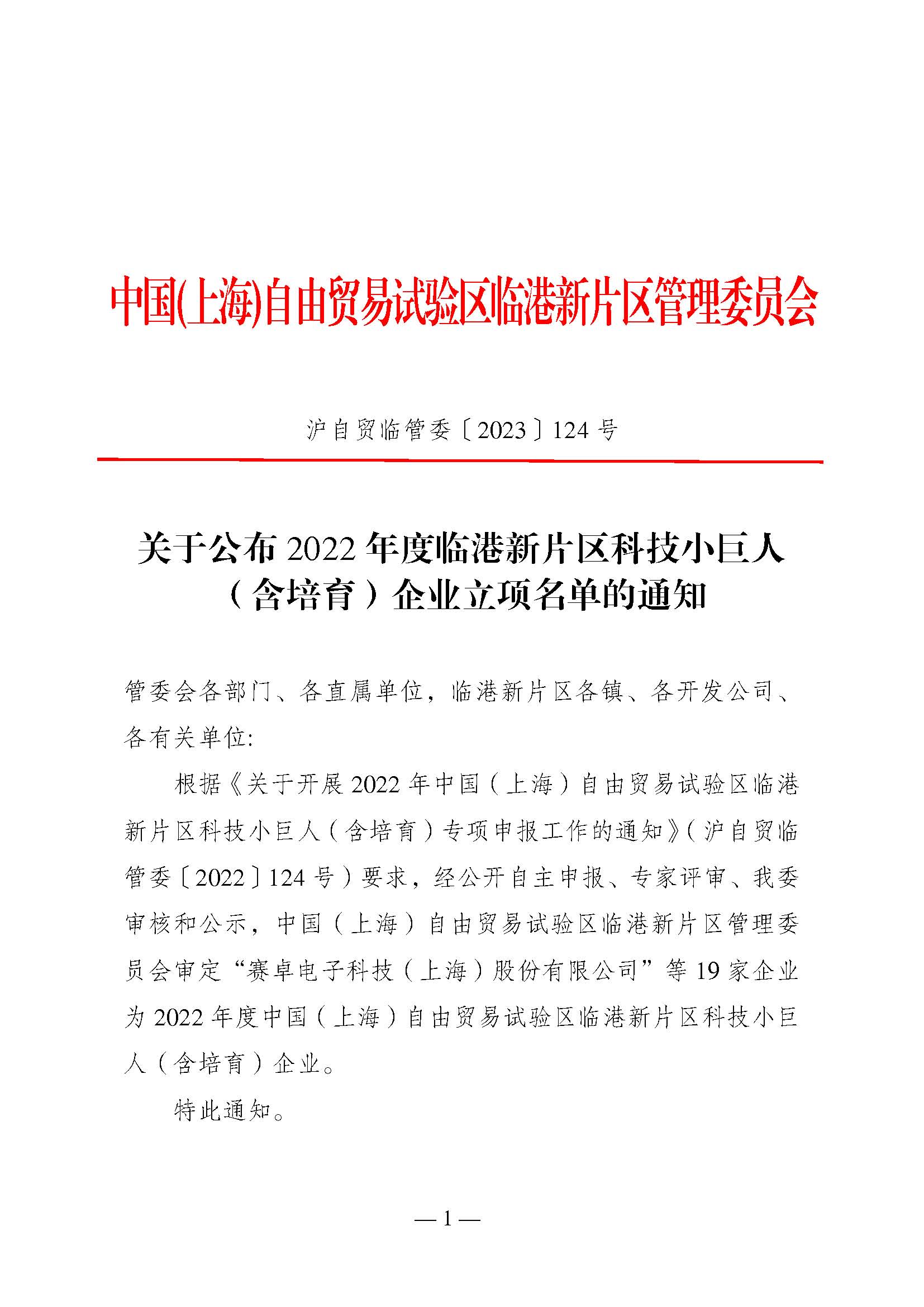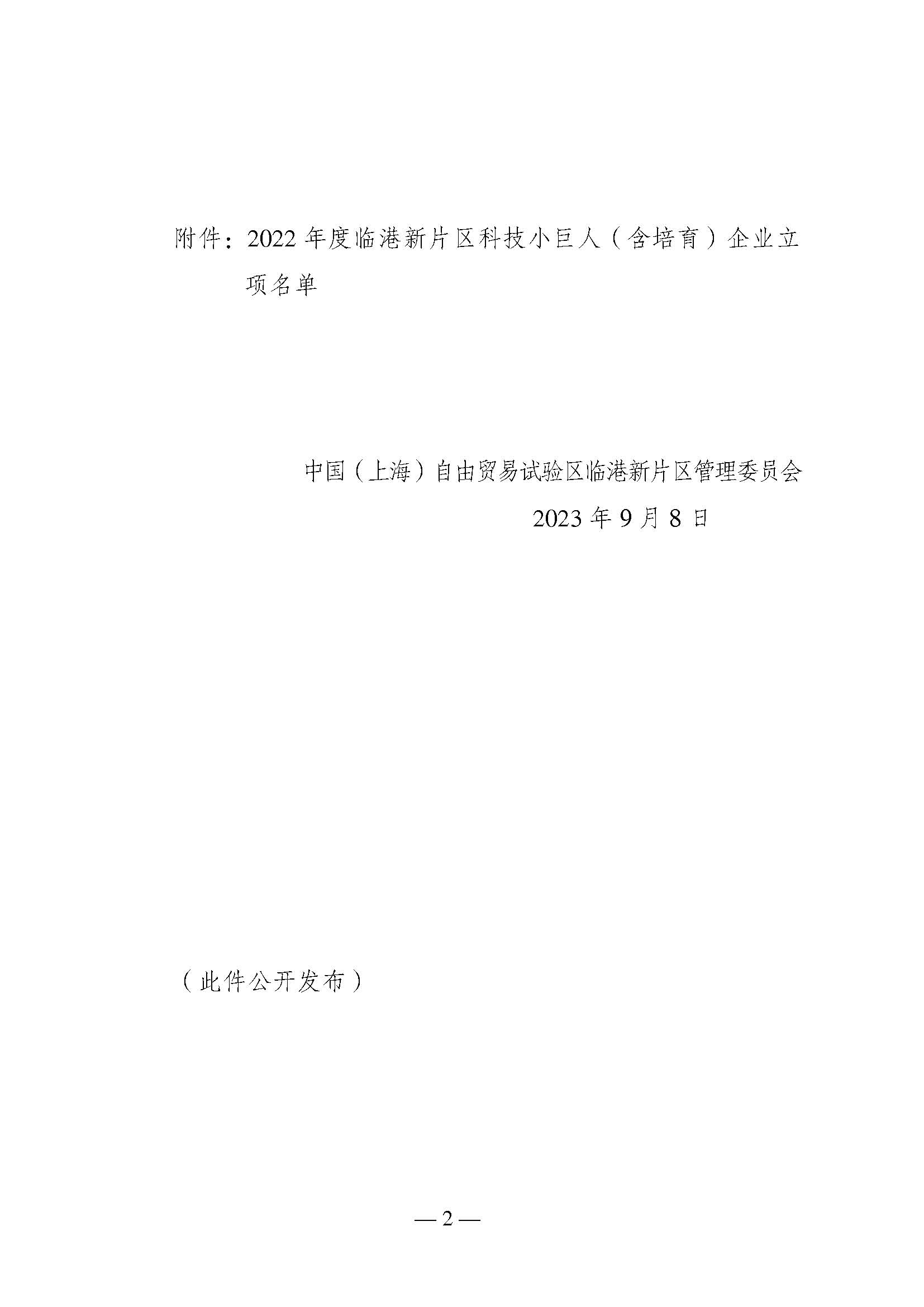 2022年度臨港新片區(qū)科技小巨人(含培育)企業(yè)立項(xiàng)名單的通知